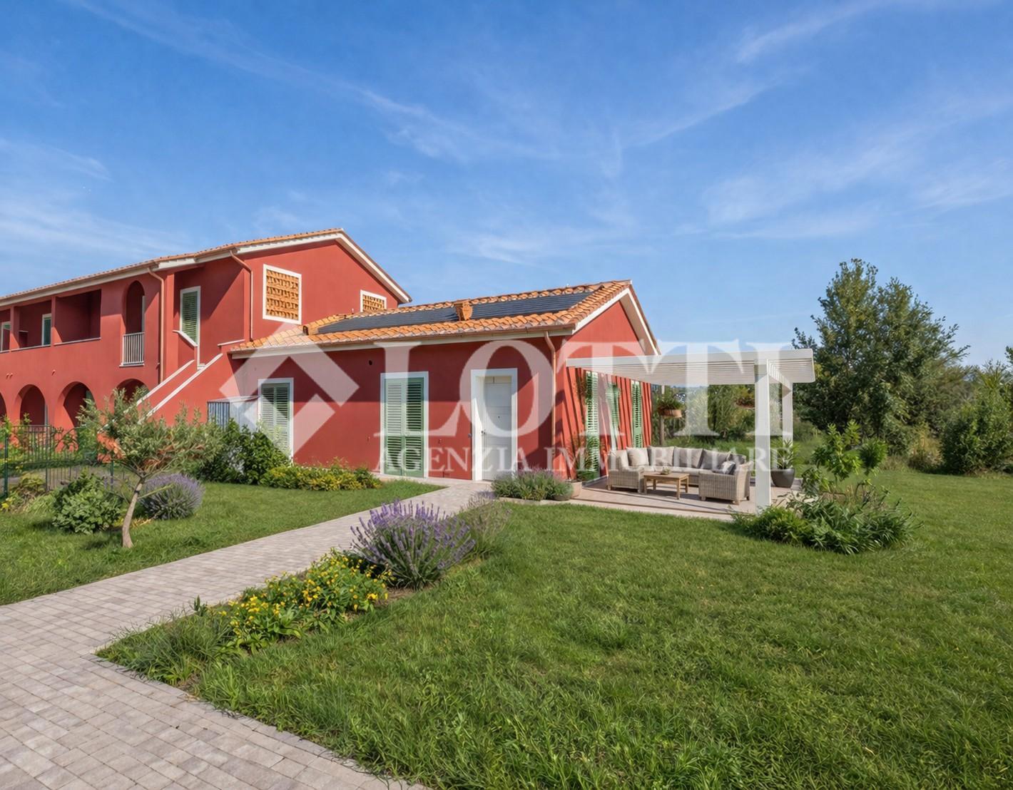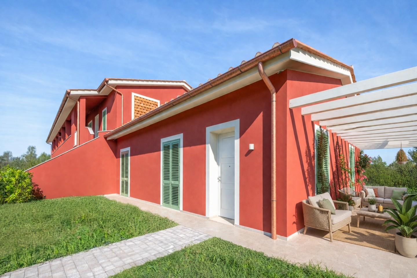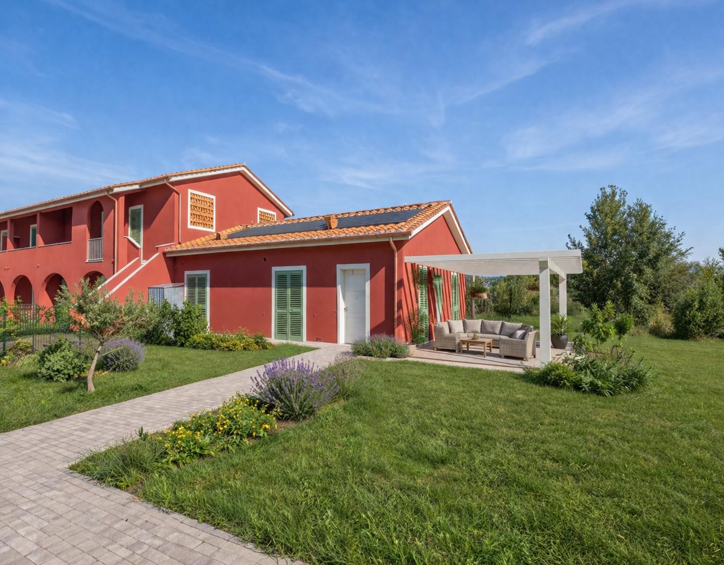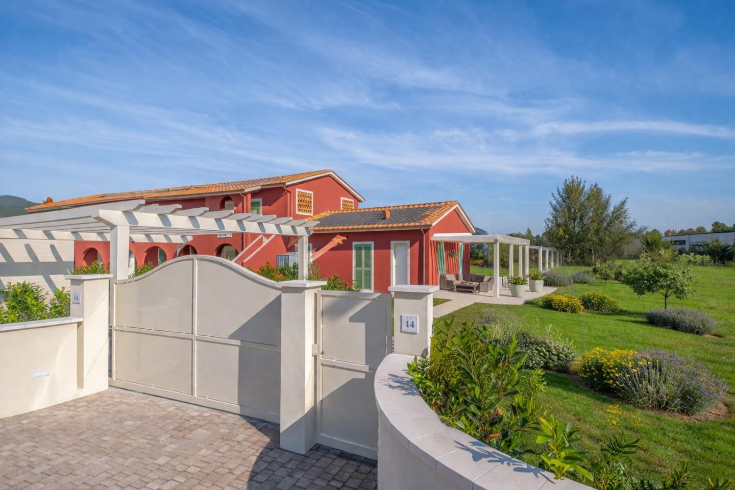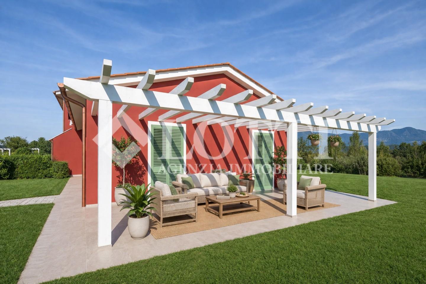 La VILLETTA VIAREGGINA, disposta interamente su un unico livello più soppalco, si estende su 110 m² di spazi moderni e ben studiati. Completano la proprietà un Pergolato ideale per una pergola bioclimatica e uno splendido Giardino su tre lati di ben 1155 m², arricchito da posti auto esclusivi.