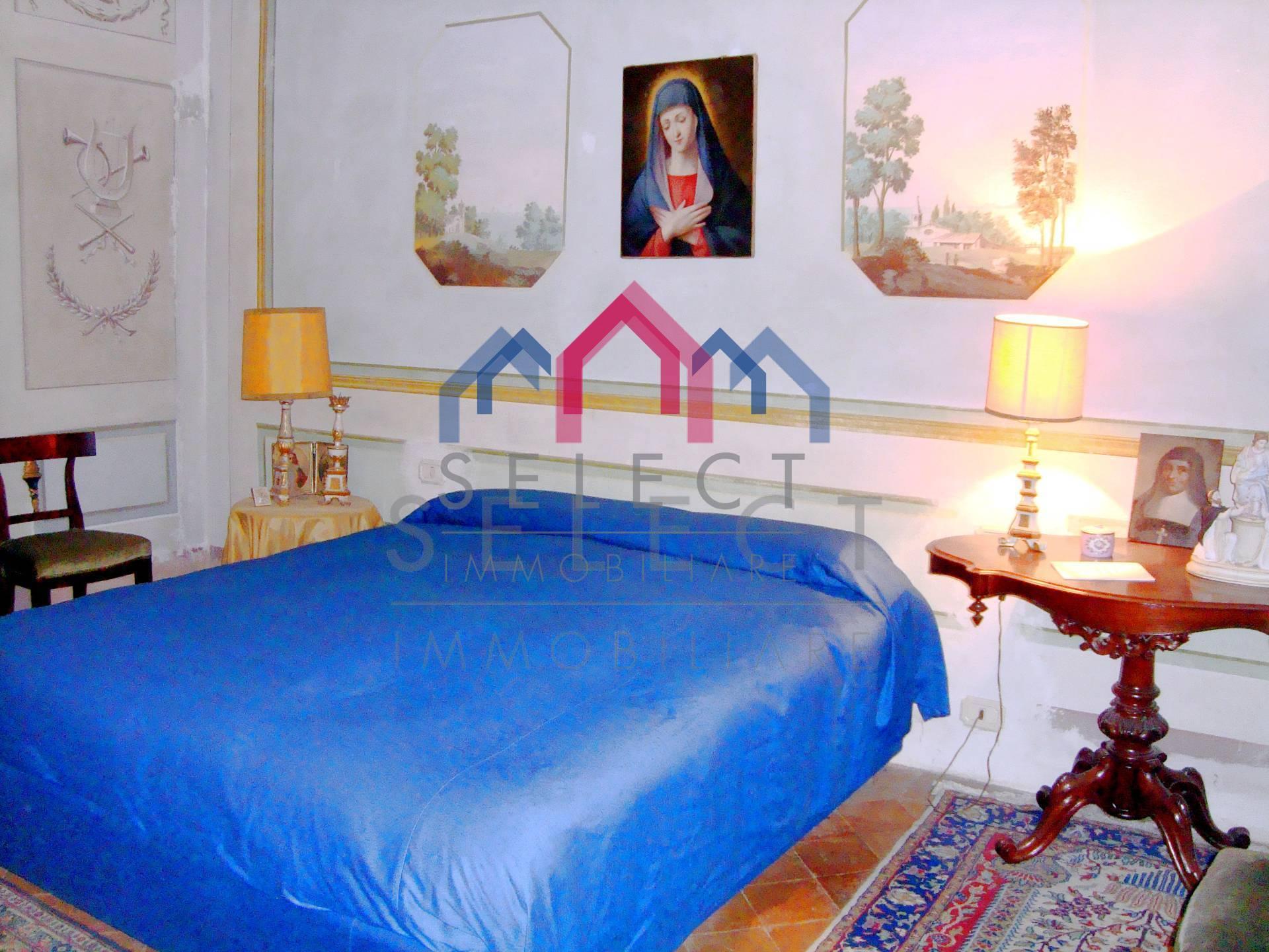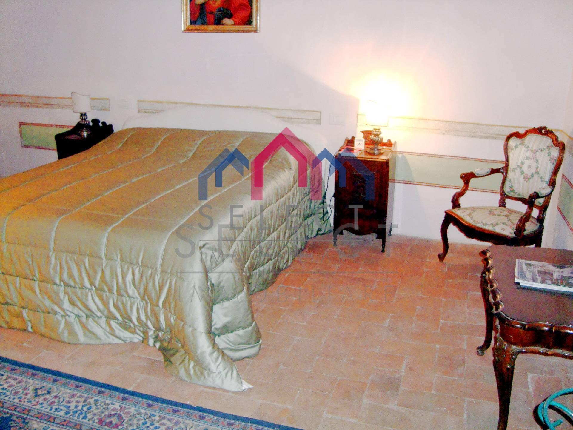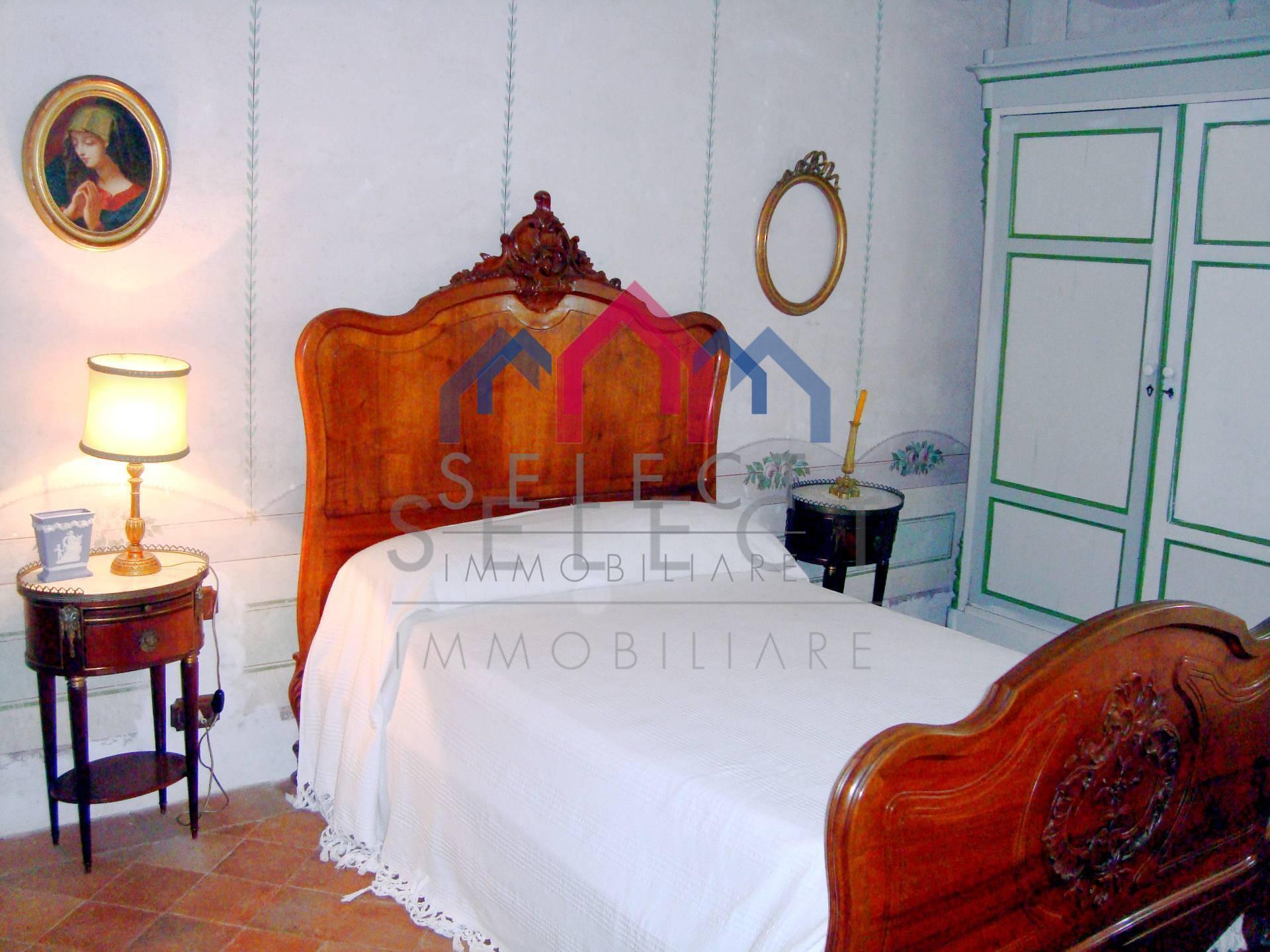 La villa è di pianta rettangolare, si sviluppa prevalentemente a est-ovest, arricchita da una bella terrazza panoramica rivolta ed est verso la valle sottostante. In ottime condizioni manutentive interne ed esterne, la villa si sviluppa su 3 livelli, sottotetto abitabile compreso, oltre alle cantine e ai locali accessori al piano seminterrato. L’ingresso principale sul fronte ovest avviene da un importante portale, cui si accede da una scalinata esterna in pietra; al piano terra entriamo nell’ampio soggiorno con camino pregevolmente affrescato, cucina abitabile con camino, “acquaio” in pietra ed i vecchi fornelli in muratura sapientemente recuperati, disimpegno, bagno rivestito in marmo bianco di Carrara con doccia e due camere matrimoniali completamente affrescate, oltre alla grande terrazza esterna con gazebo molto piacevole per passare delle serate estive all’aperto; da un disimpegno e dall’ampia scalinata in pietra con corrimano in ferro battuto arriviamo al piano primo composto da salone, quattro camere matrimoniali ed un bagno anch’esso con doccia; al piano secondo sottotetto o soffitta troviamo un ampio vano corrispondente al salone sottostante, altri quattro vani ed un ripostiglio, se necessario tutti trasformabili in vani uso camera o altro. Al piano seminterrato, a cui si accede sia con accesso esterno che dalla cucina, abbiamo tre ampi vani uso cantine con bellissimo arco in pietra e mezzane, ed altro piccolo vano uso “caciaia” per la stagionatura di formaggi e salumi. La villa viene venduta non arredata, se interessati è possibile effettuare una trattativa separata. Superficie lorda Villa mq. 640,00. Superficie lorda Cantine mq. 115,00.