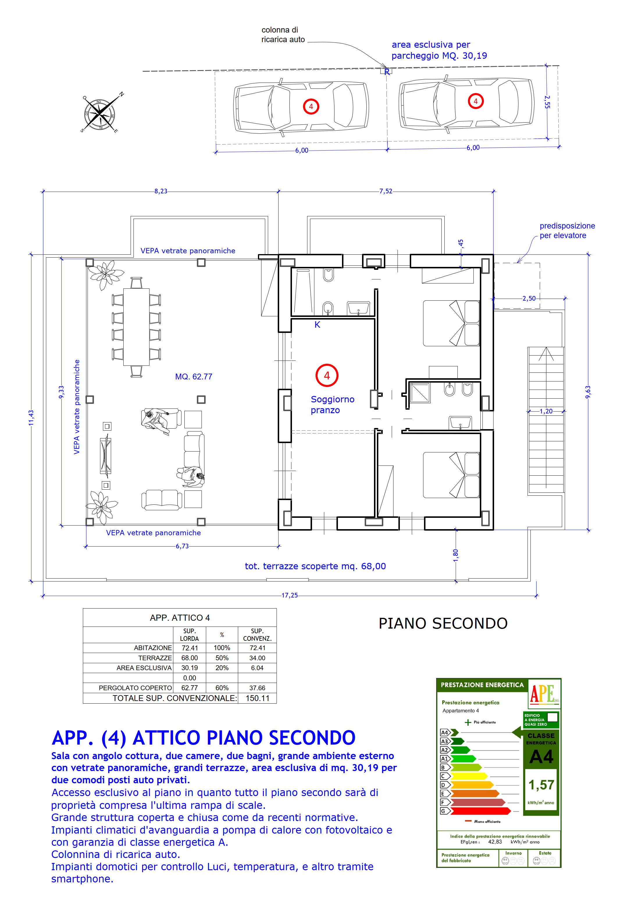 • Classe energetica A4 conforme alla direttiva "case green" **Energia quasi Zero**;