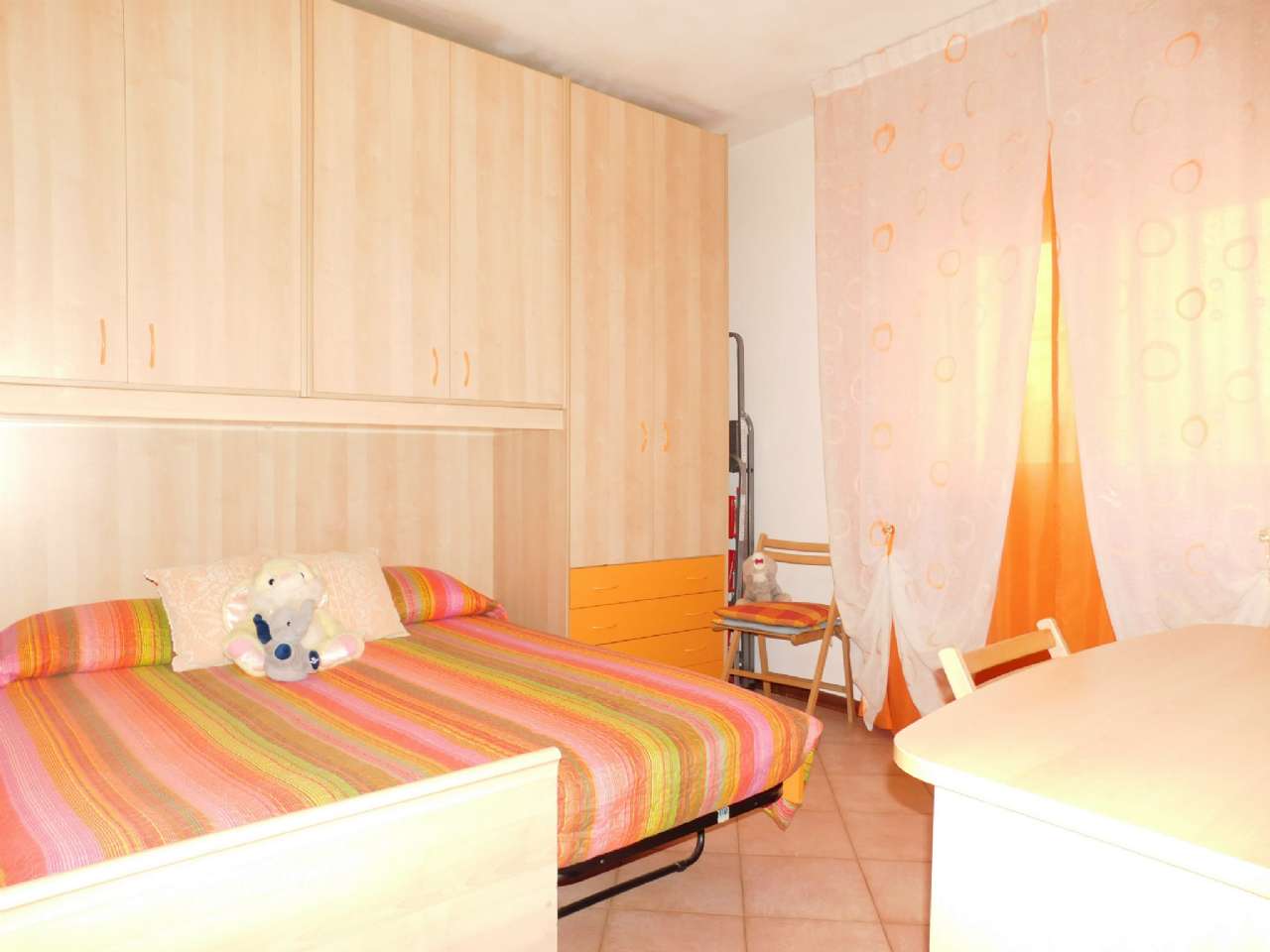 L'alloggio si compone da ingresso, ripostiglio, soggiorno con angolo cottura con accesso al giardino, disimpegno notte, camera matrimoniale, camera singola e bagno con finestra.