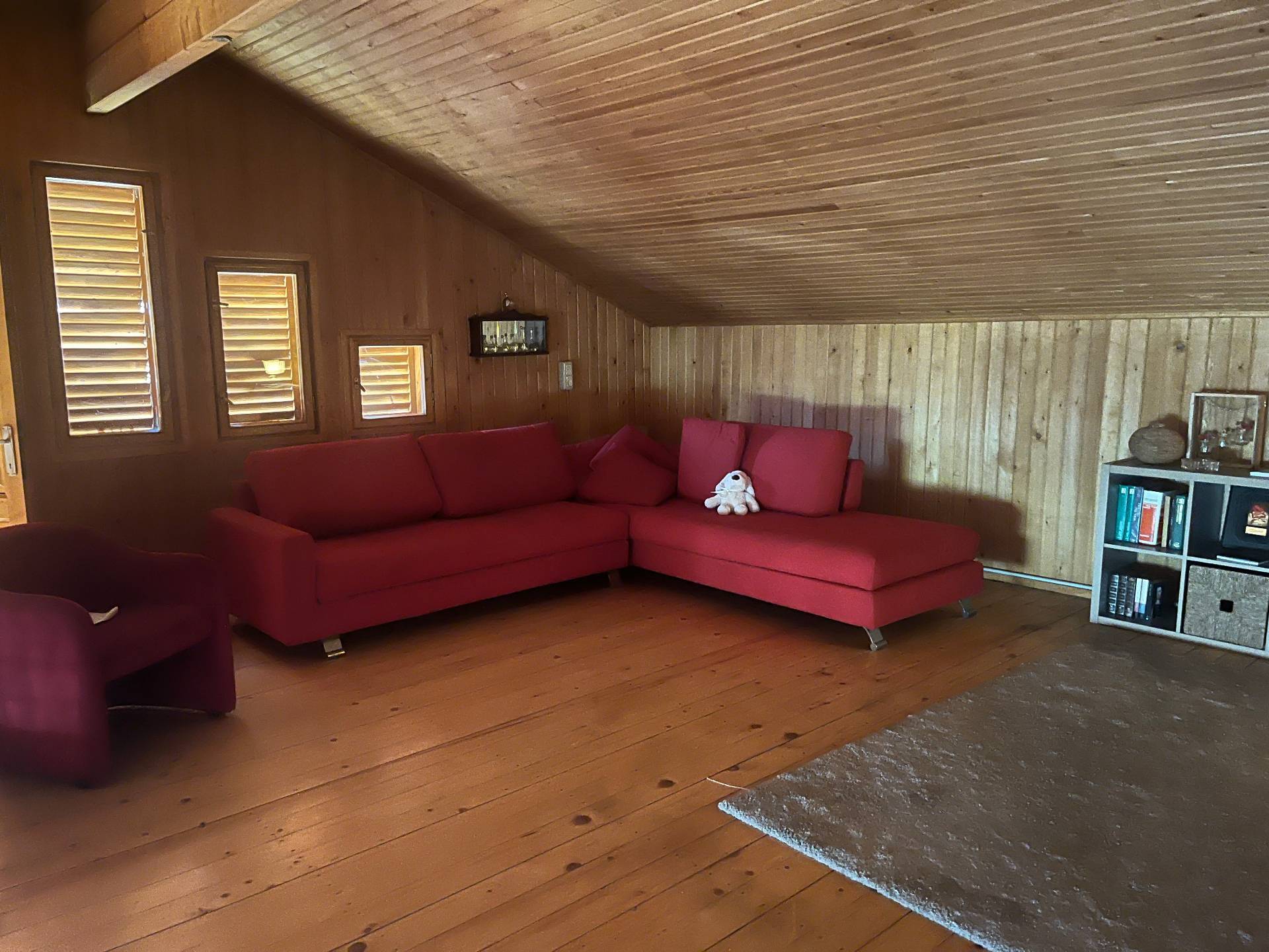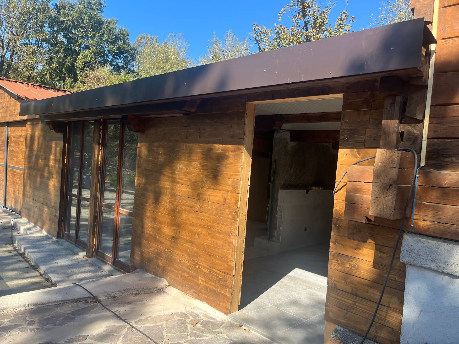 Rif.2025Lu046 la villetta costruita in legno e con materiali ecocompatibili su due livelli è composta ingresso dal porticato esterno in sala con angolo cottura e caminetto, la zona notte ha 2 camere una attualmente adibita a studio e bagno con finestra e doccia, al piano superiore grande zona relax sfruttabile anche in altro modo e terrazzo.