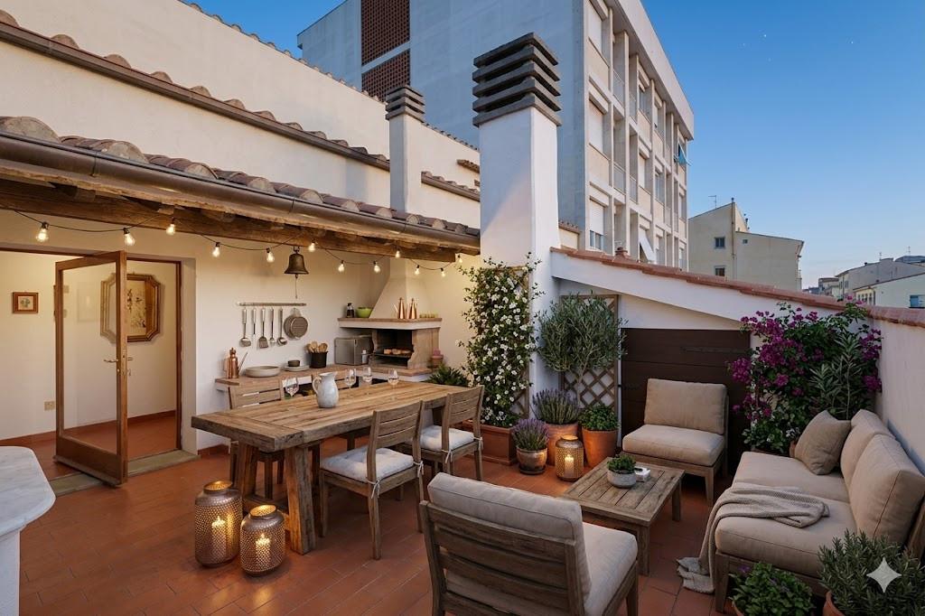L'appartamento è già libero e disponibile; dall'ampio ingresso si accede al salone triplo con camino funzionante affacciato su giardini interni e alla cucina abitabile in muratura che fa parte integrante della sala ma è separabile tramite una bellissima vetrata,terrazza abitabile con forno in muratura in cui poter godere del relax e delle cene estive, zona notte con due camere, ripostiglio e grande bagno con altra ampia terrazza abitabile perfetta per zona lavanderia; al piano superiore mansardato ci accolgono altre tre stanze utilizzabili come camere , stanza biblioteca o studio ed un altro bagno.