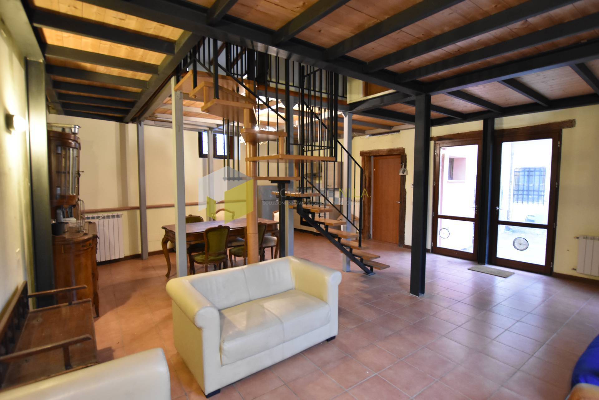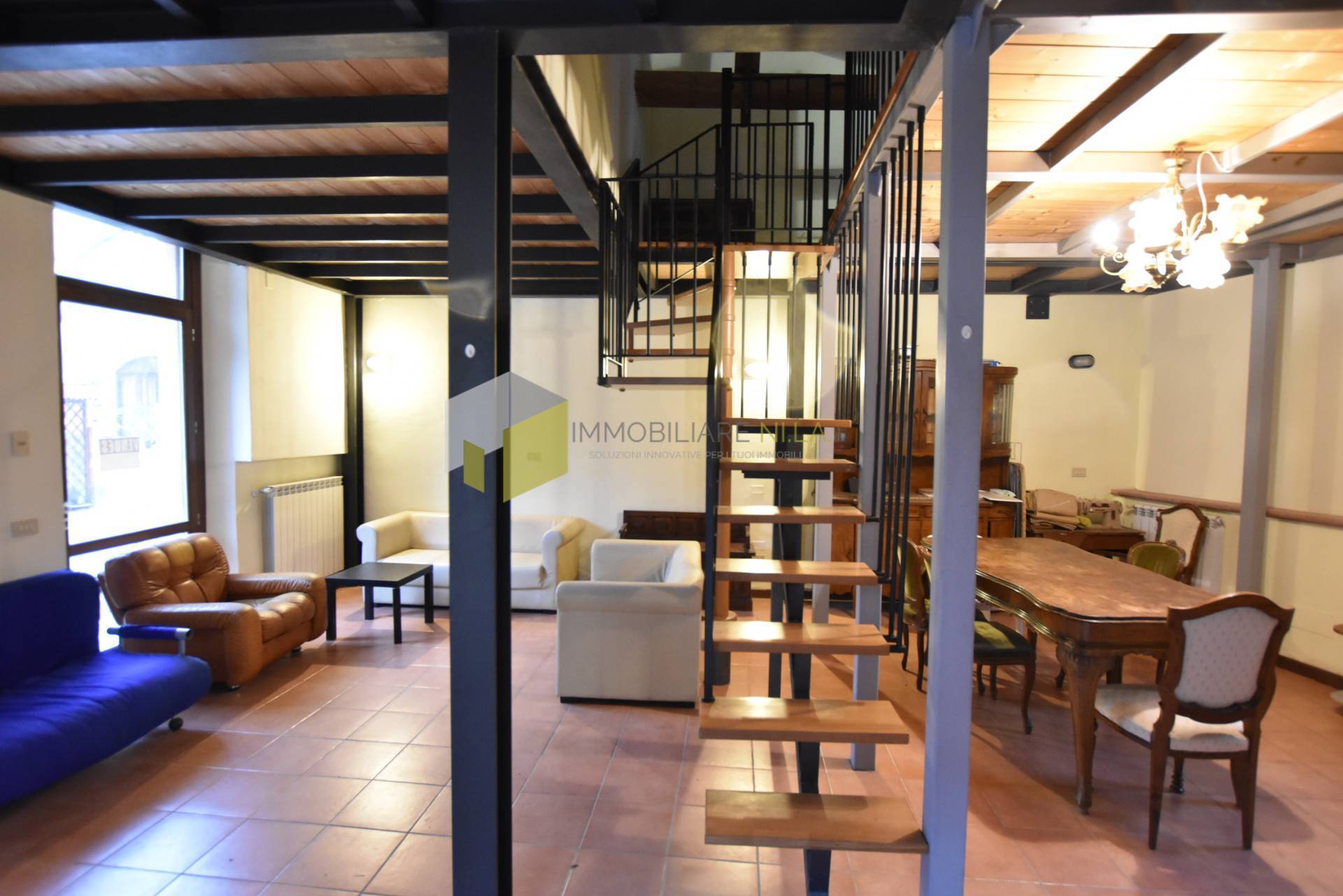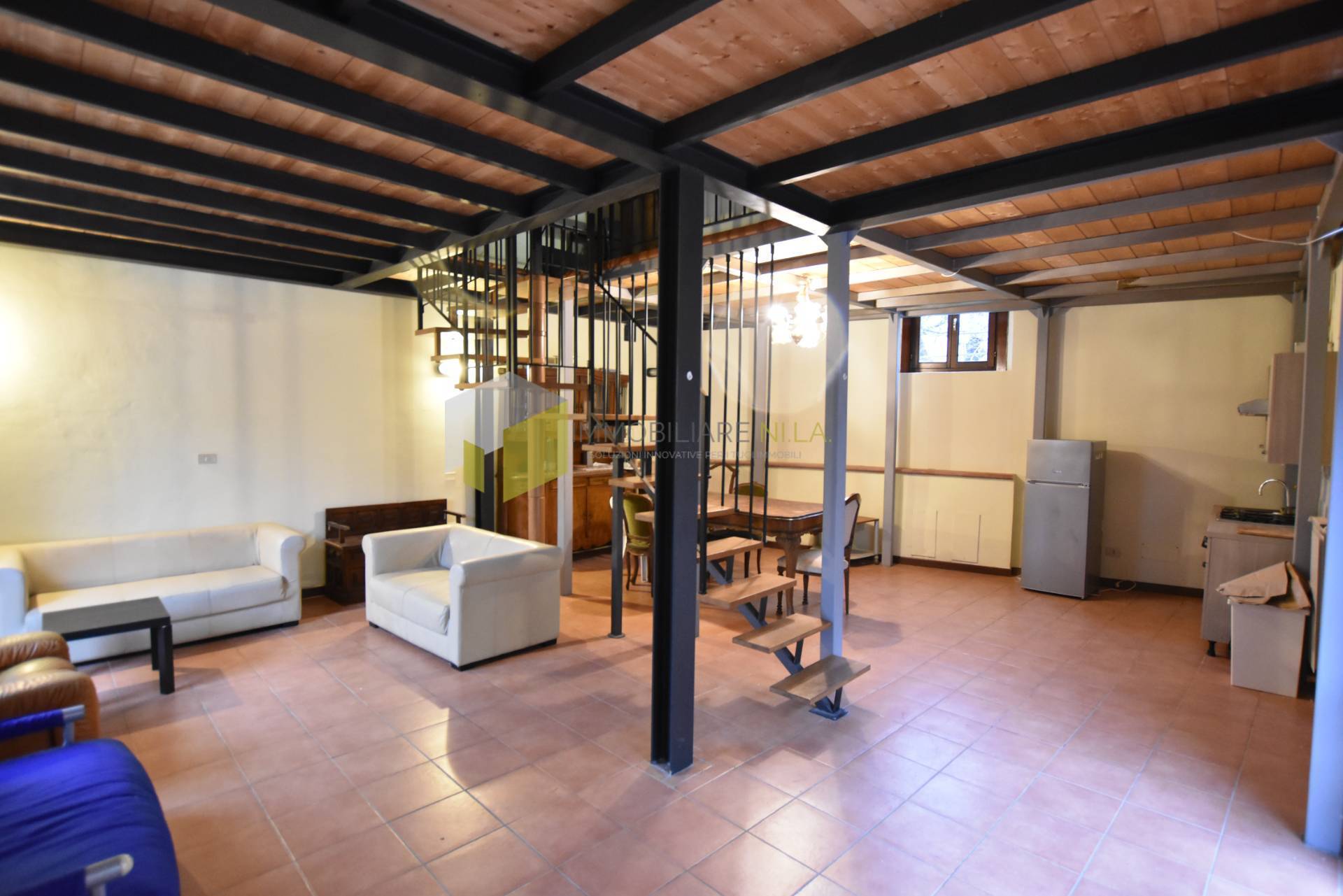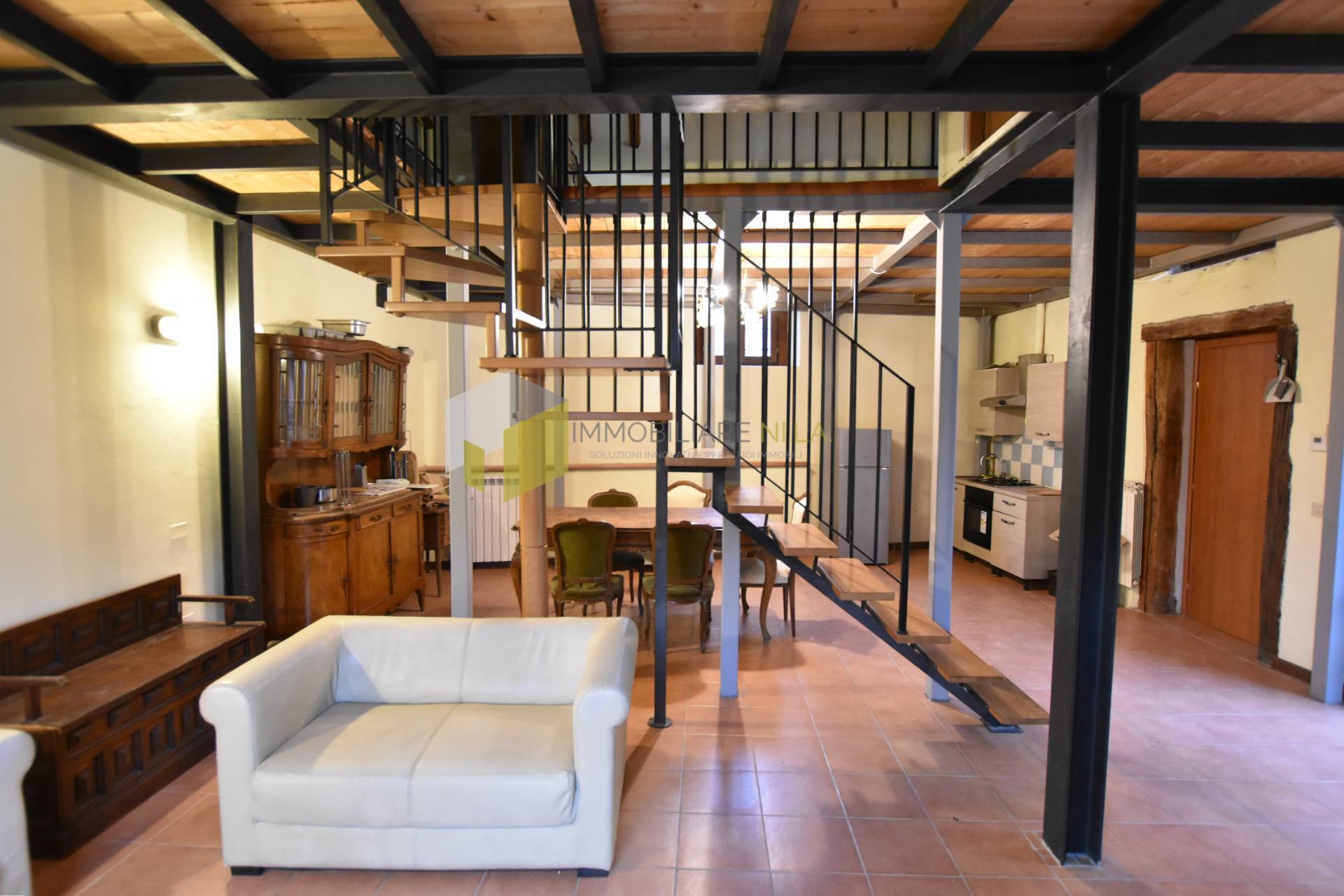 Al piano terra grandissima zona giorno di oltre 50 mq con angolo cottura. Ambiente da poter suddividere anche in due locali a seconda delle proprie esigenze. Completa il piano terra l'antibagno e il bagno con finestra.