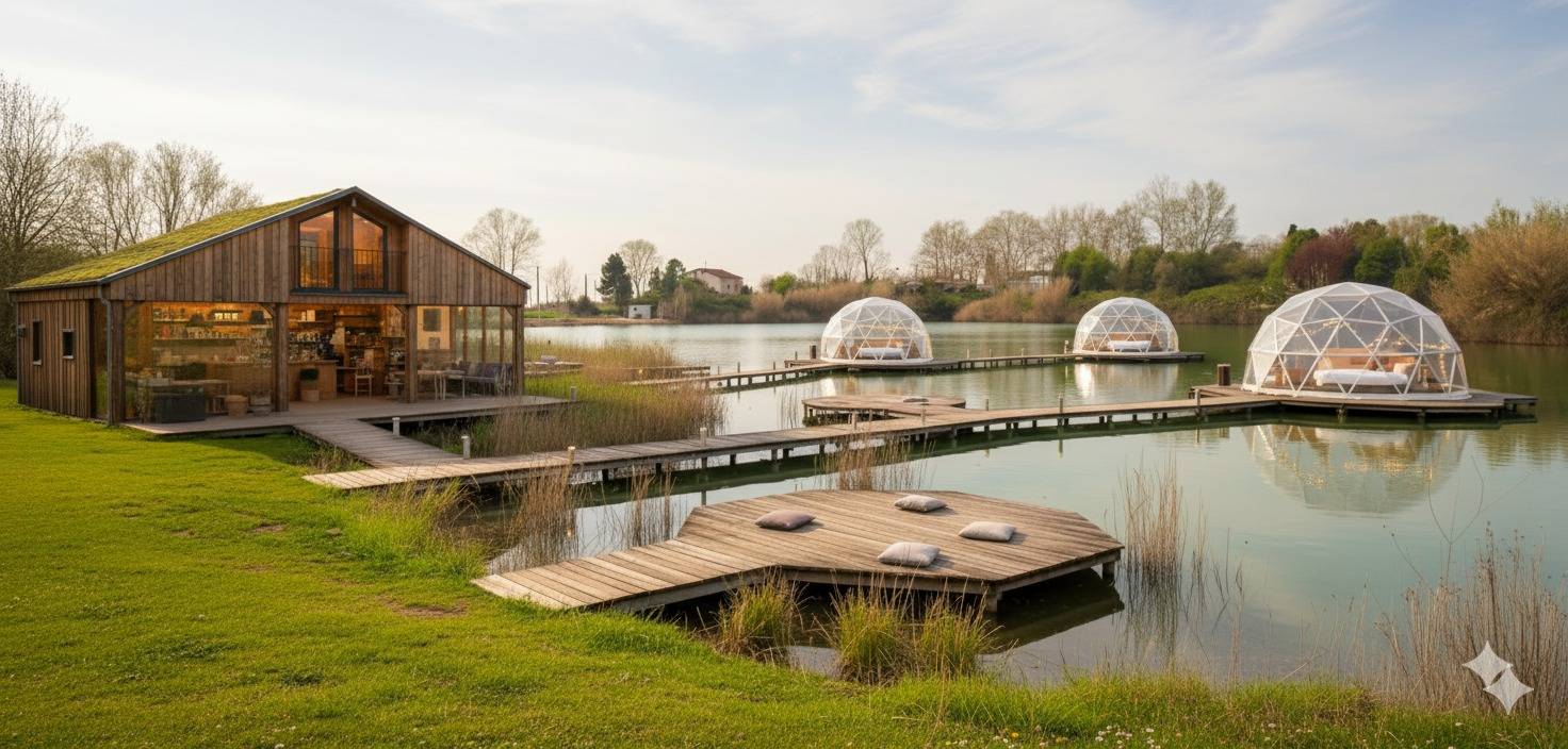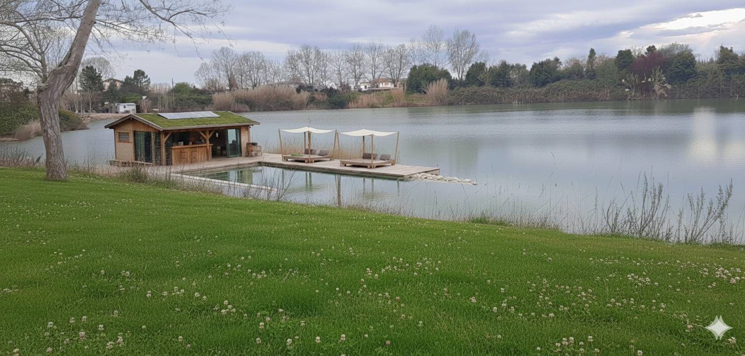 Rif 2026020 vicino a Pisa in coampagna con lago artificiale terreno con progetto approvato dal comune per la realizzazione di un campeggio area di sosta ristorante bar.
