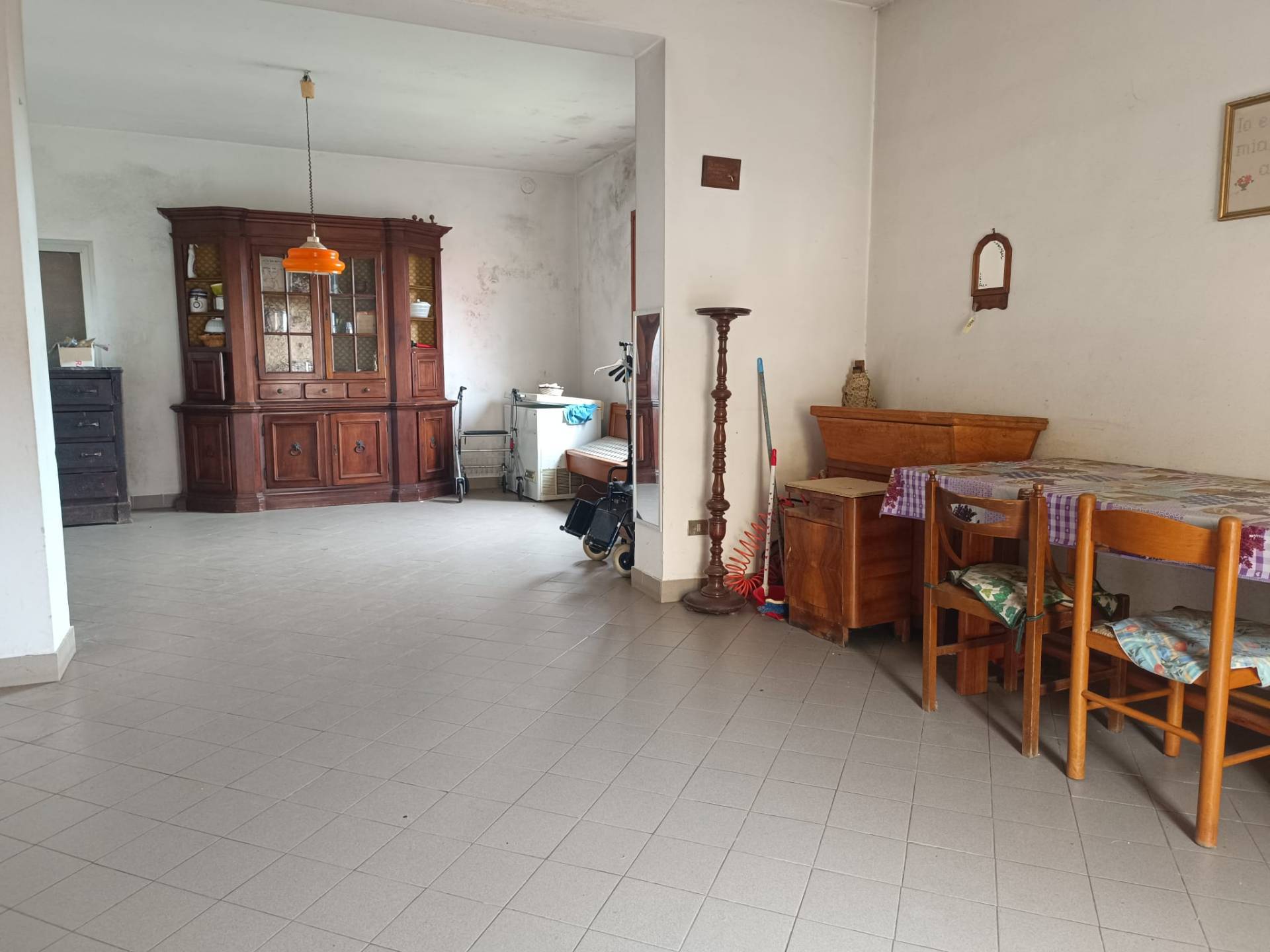Ampio ingresso indipendente, dove a destra troviamo una bella e grande cucina di servizio che si affaccia sul giardino. Sullo stesso piano troviamo il bagno e un ampia autorimessa ben tenuta, da cui si potrebbero sviluppare altre camere. Nell'ingresso vi è anche un ripostiglio e salendo le scale ,si sviluppa l'abitazione, Vi è un corridoio, con a destra la bella cucina con balcone, ove vi è anche il ripostiglio esterno, ampia sala - soggiorno con doppie vetrate, un bel bagno con vasca. Sulla sinistra troviamo l'accesso al reparto notte , con disimpegno , due ampie camere da letto e un altro bagno. Inoltre vi sono due posti auto, e ampia cantina. L'immobile si presenta in buono stato di conservazione, necessita solo ammodernamento, ma pronta per essere abitata. Una soluzione ideale per famiglie con genitori, oppure da dividere in due appartamenti da eventualmente mettere a reddito per affitti turistici.
