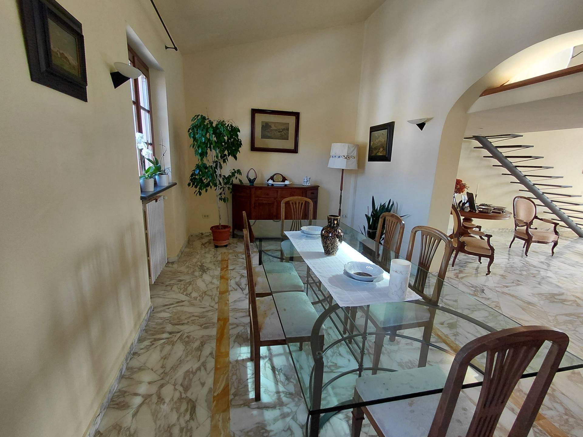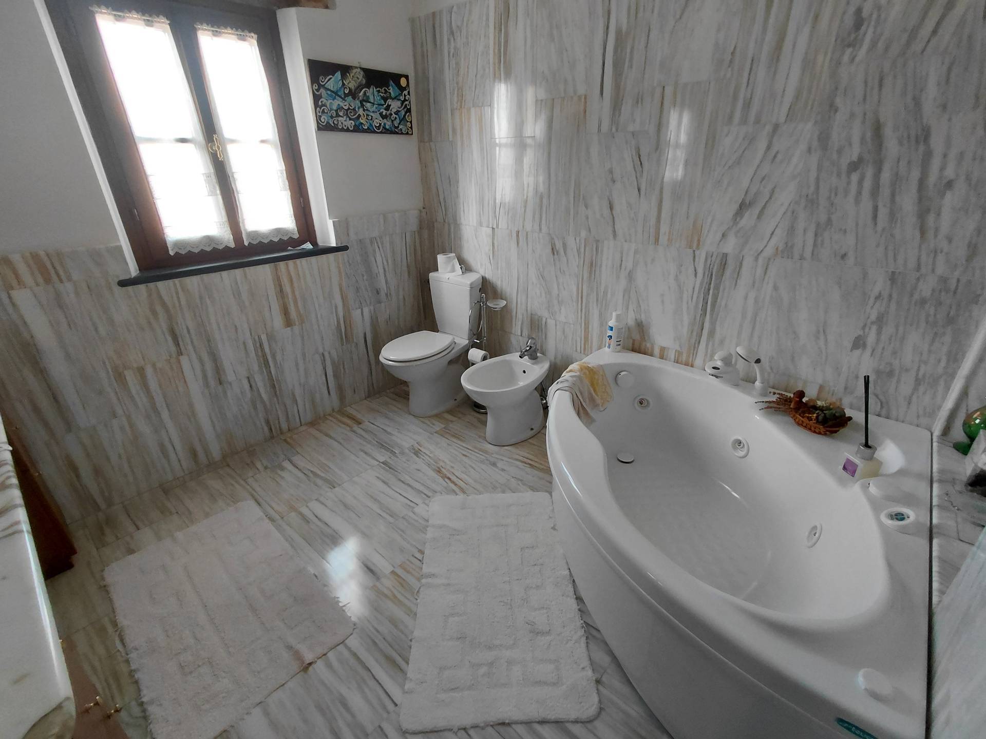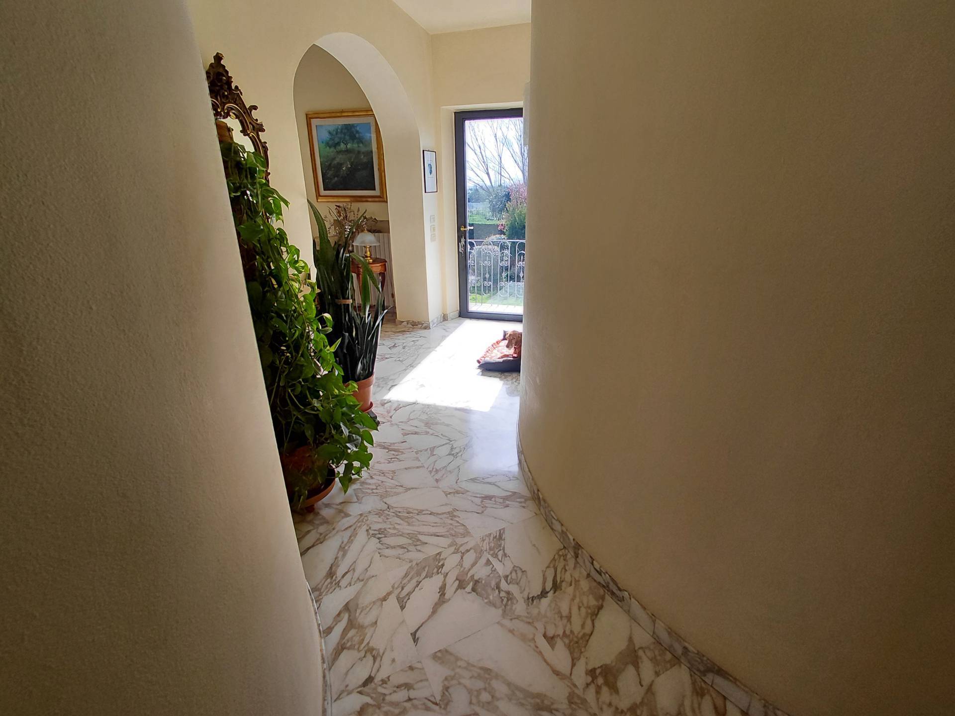 La casa si compone di ingresso in doppio salone, da cui si accede al tinello della cucina, quest'ultima anche abitabile. Nel salone è stato ricavato anche un soppalco molto comodo dove si può godere di più tranquillità, inoltre sempre nella zona giorno è presente un ripostiglio e uno studiolo con altro soppalco da cui si accede alla mansarda dove sono presenti due ampie cabine armadio con finestra ed un bagno di servizio. Tramite ampio disimpegno si accede alla zona notte dove sono presenti 4 camere di cui due con bagni privati e poi il bagno padronale, in due bagni è presente la vasca idromassaggio. Completa il tutto rifiniture di pregio con marmi pregiati, l'ampio giardino di circa 1500 mq, sei posti auto coperti, piscina 4x8 in muratura, deposito (casetta in legno) dove è presente la lavanderia, impianto fotovoltaico e pozzo privato da cui attingere acqua.