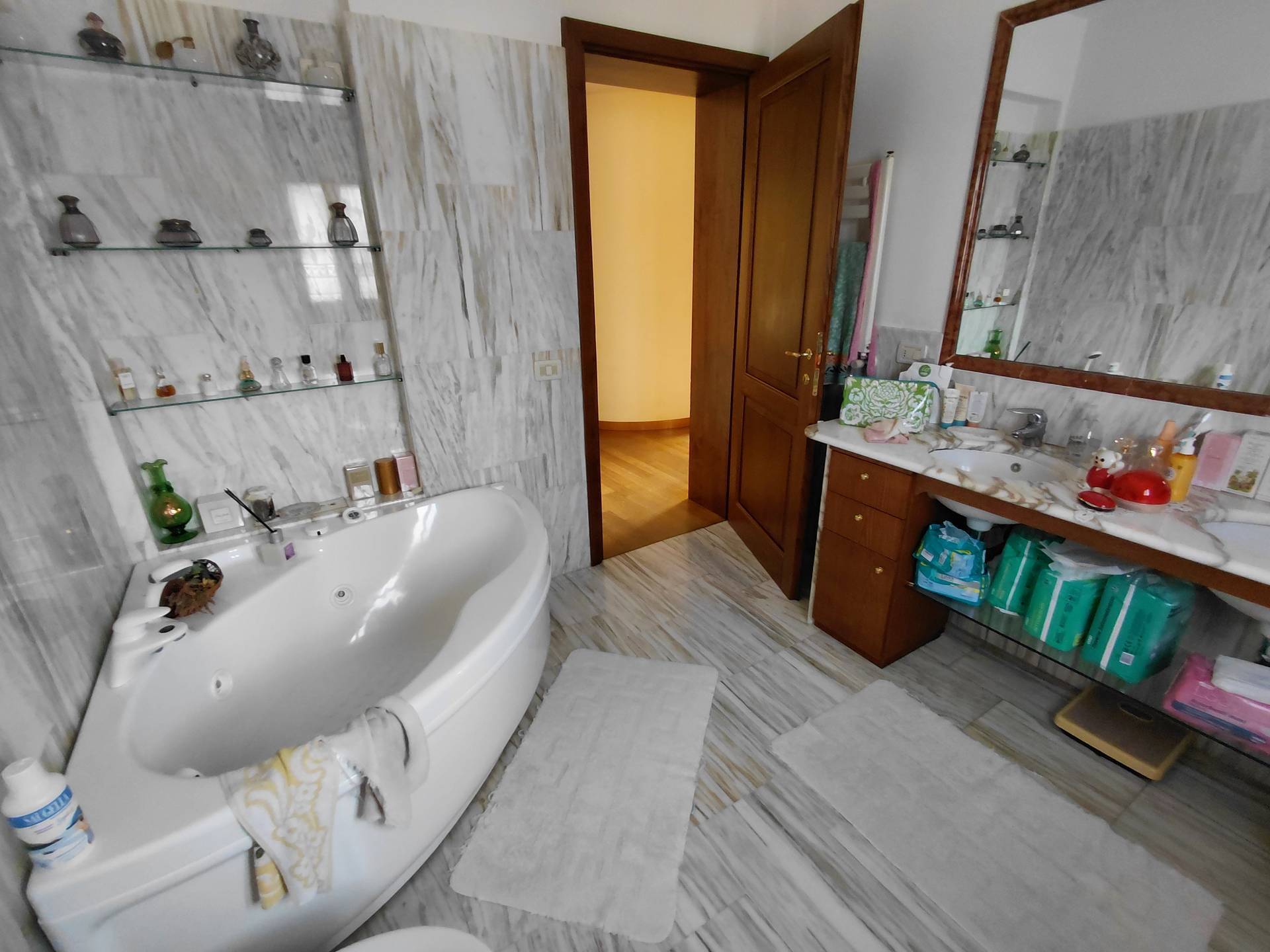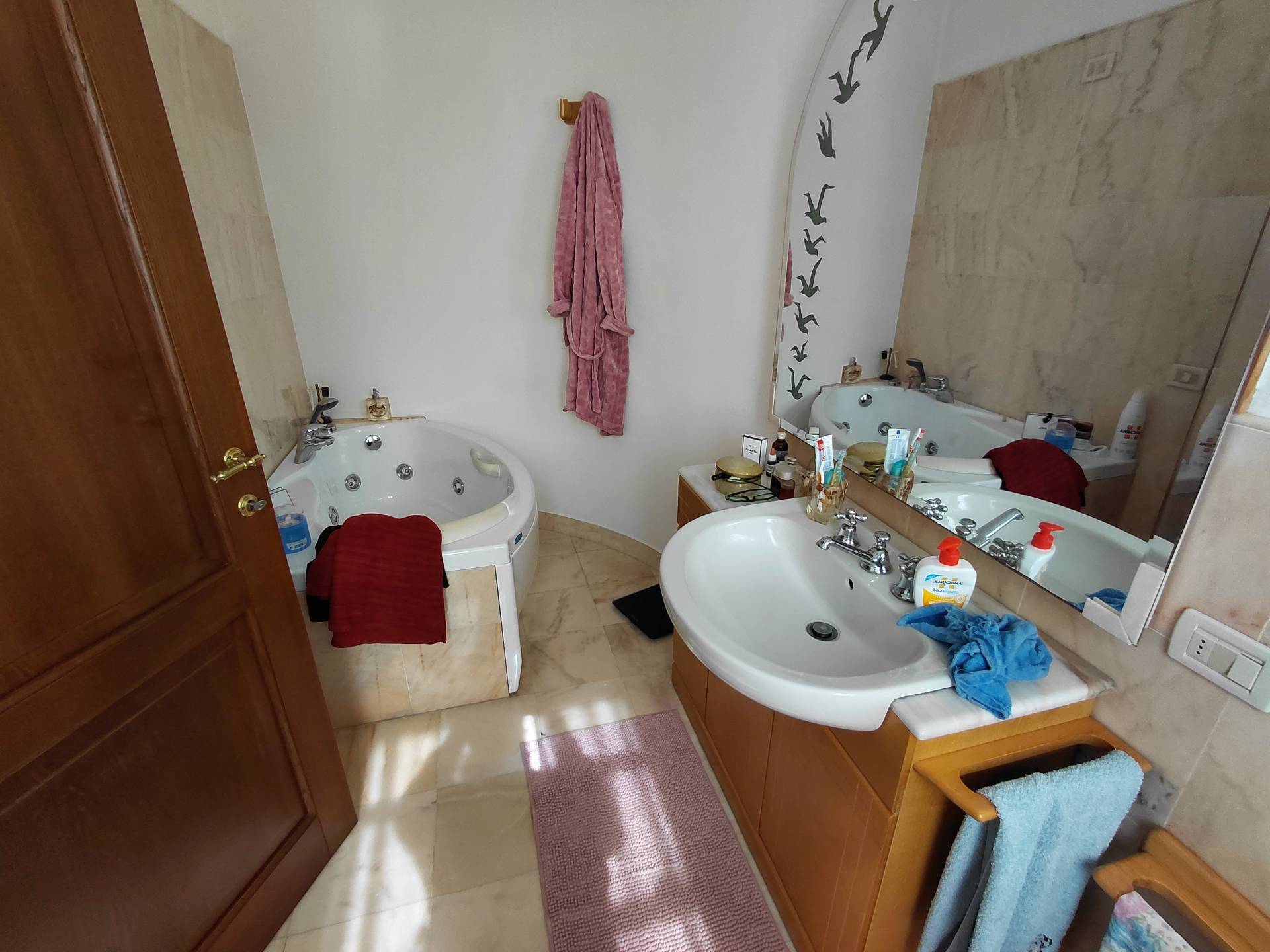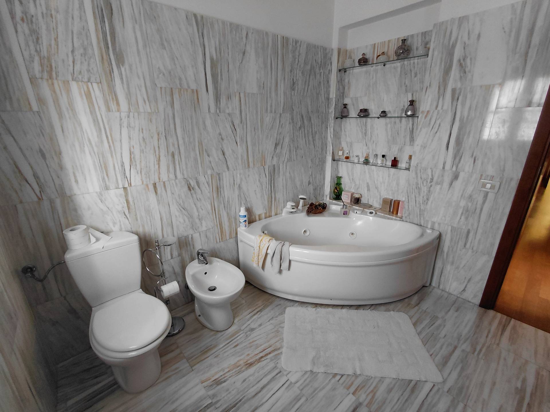La casa si compone di ingresso in doppio salone, da cui si accede al tinello della cucina, quest'ultima anche abitabile. Nel salone è stato ricavato anche un soppalco molto comodo dove si può godere di più tranquillità, inoltre sempre nella zona giorno è presente un ripostiglio e uno studiolo con altro soppalco da cui si accede alla mansarda dove sono presenti due ampie cabine armadio con finestra ed un bagno di servizio. Tramite ampio disimpegno si accede alla zona notte dove sono presenti 4 camere di cui due con bagni privati e poi il bagno padronale, in due bagni è presente la vasca idromassaggio. Completa il tutto rifiniture di pregio con marmi pregiati, l'ampio giardino di circa 1500 mq, sei posti auto coperti, piscina 4x8 in muratura, deposito (casetta in legno) dove è presente la lavanderia, impianto fotovoltaico e pozzo privato da cui attingere acqua.