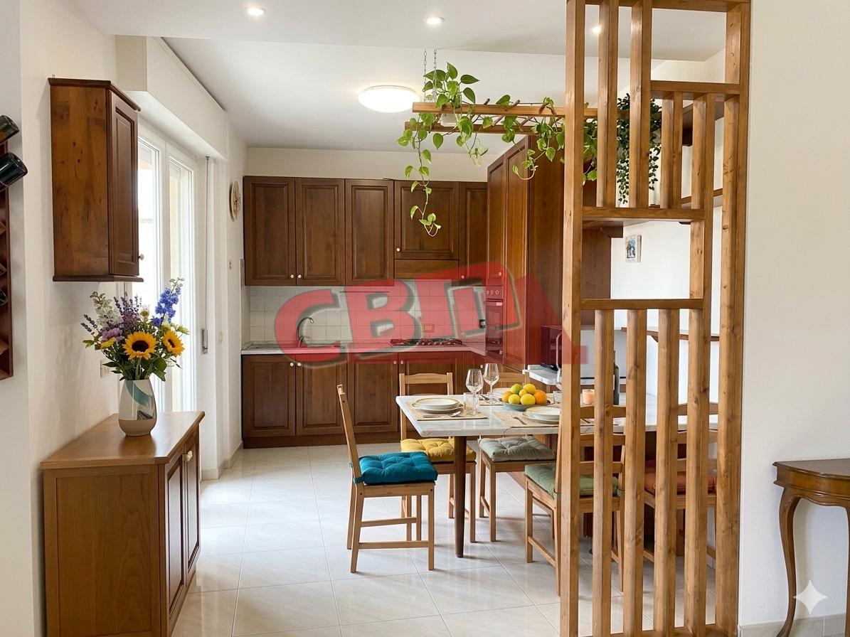 L'appartamento è in ottime condizioni,al secondo ed ultimo piano di un bel condominio signorile con curato giardino condominiale, composto da sala con cucina abitabile a vista, tre ampie camere, di cui una matrimoniale e due medie, doppi servizi, pratico ripostiglio; inoltre la soffitta al piano sovrastante( con accesso dalla terrazza condominiale vista mare) e un posto auto di proprietà sono inclusi nel prezzo .