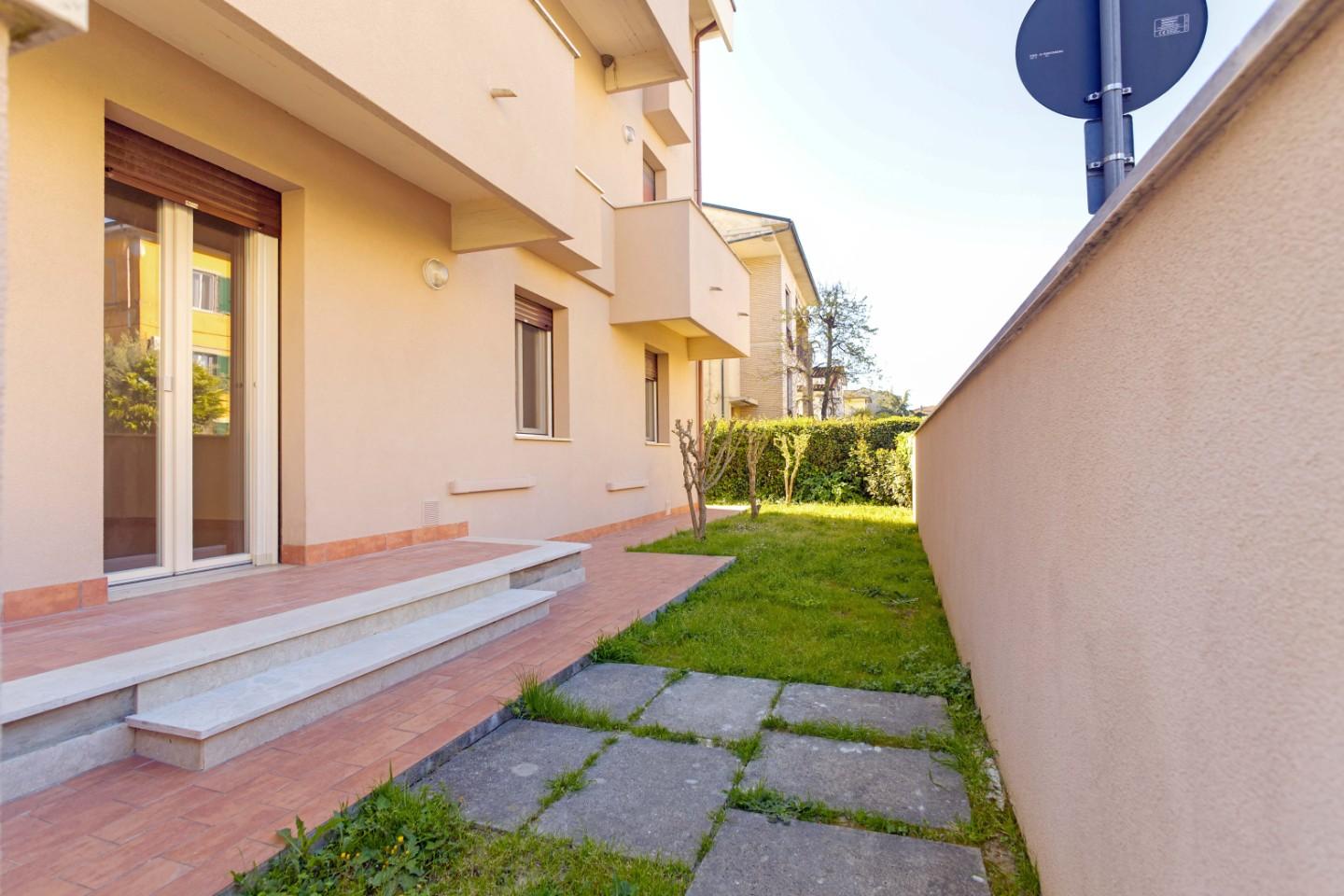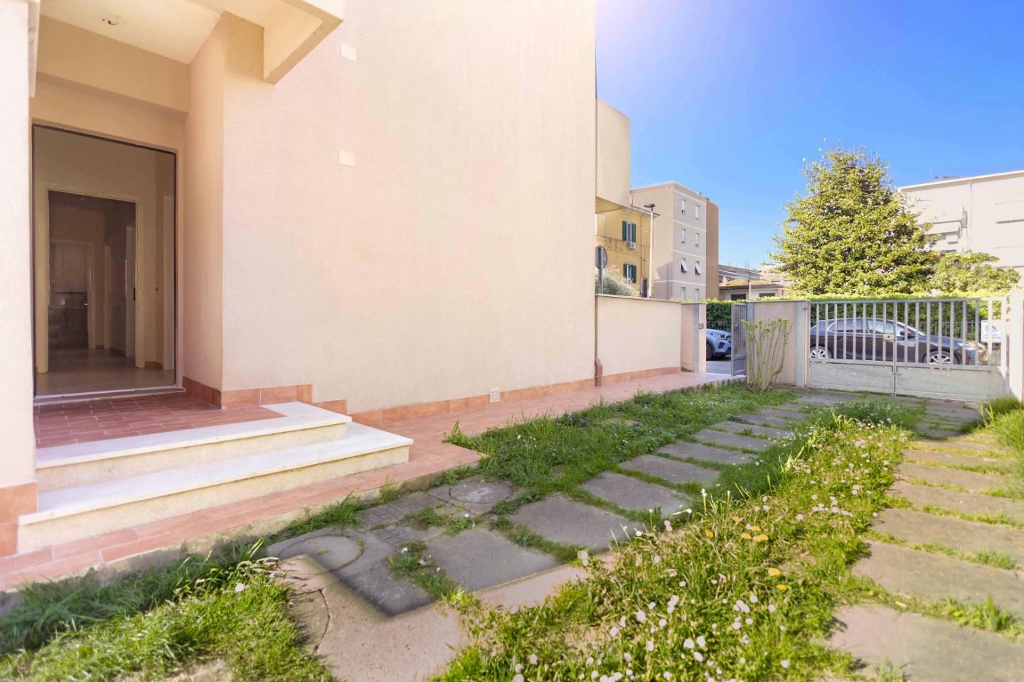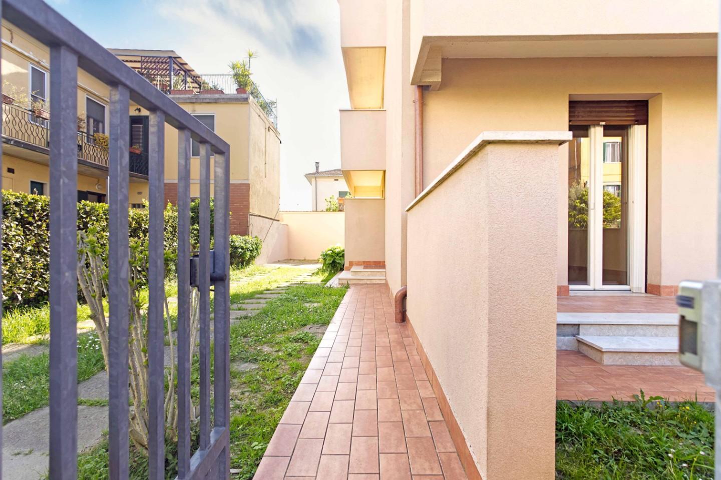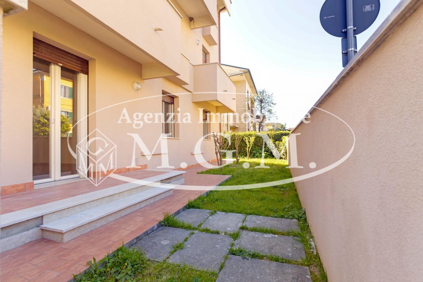 Proponiamo in vendita un luminoso appartamento, ottimamente rifinito ( paragonabile al nuovo ) a seguito di una recente ristrutturazione, sia interna che del fabbricato condominiale, avente entrata indipendente da ampio giardino esclusivo posto sui tre lati dell' appartamento