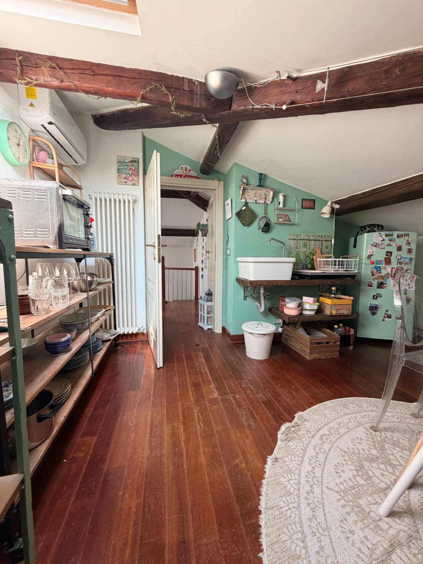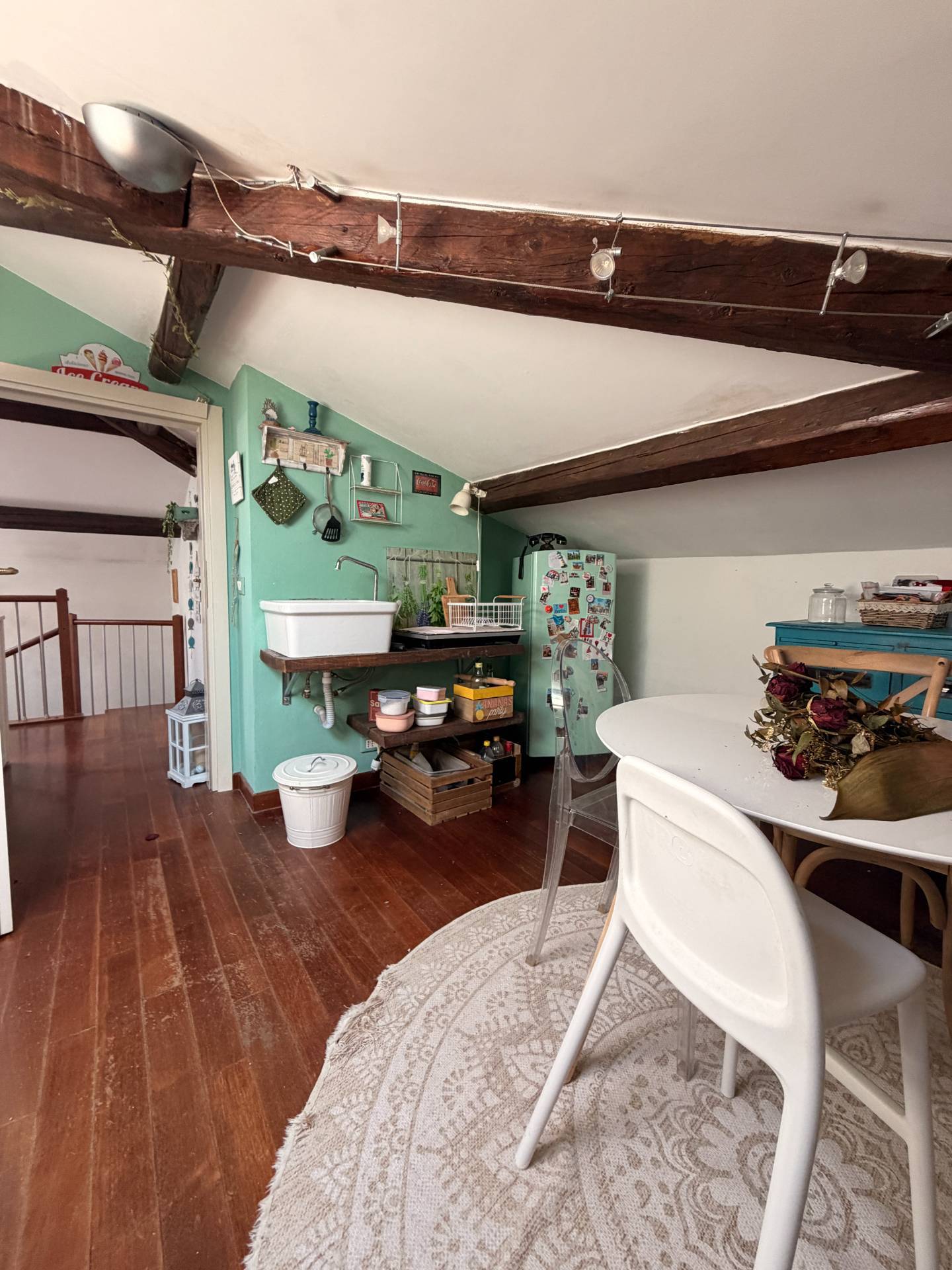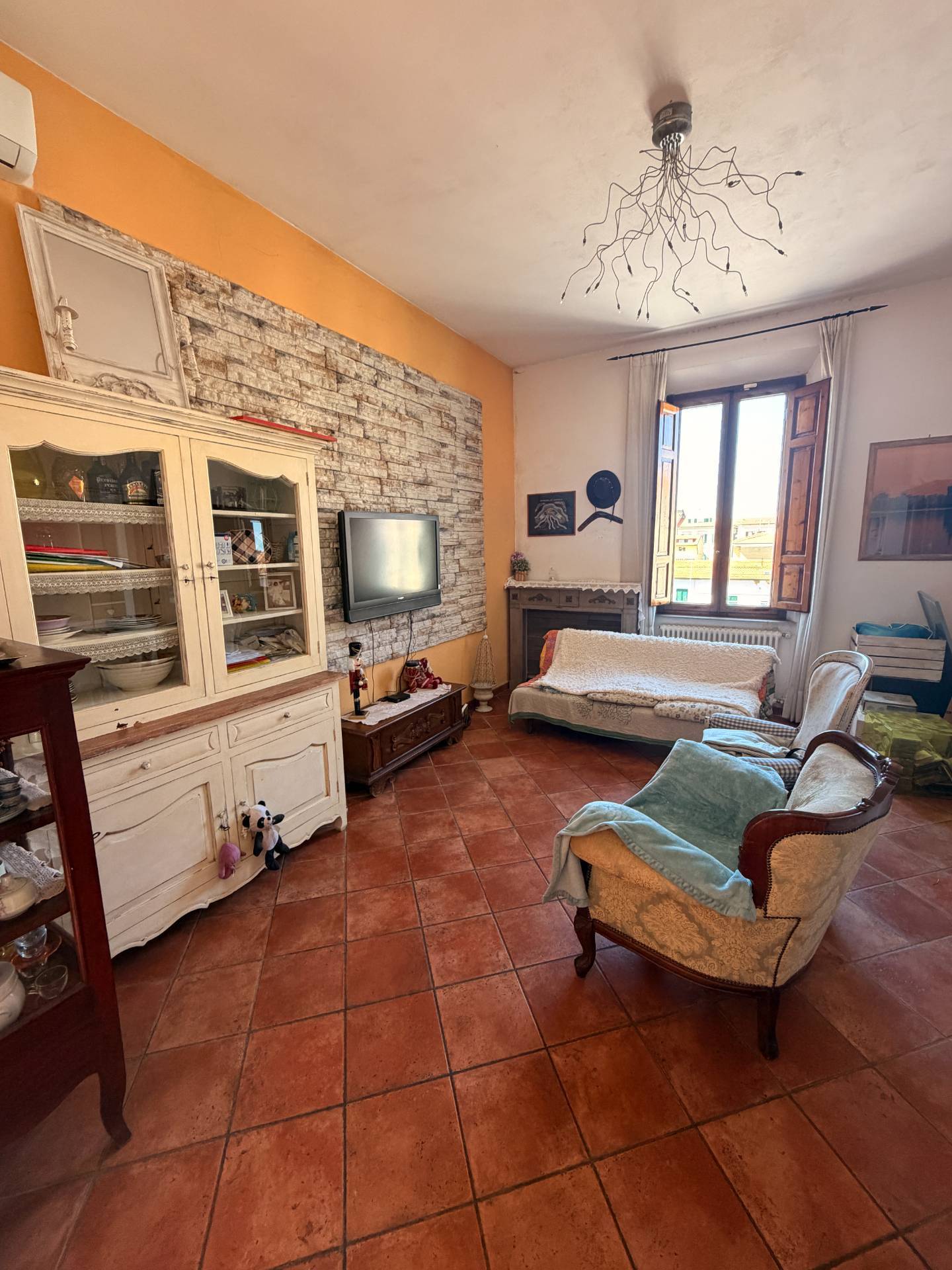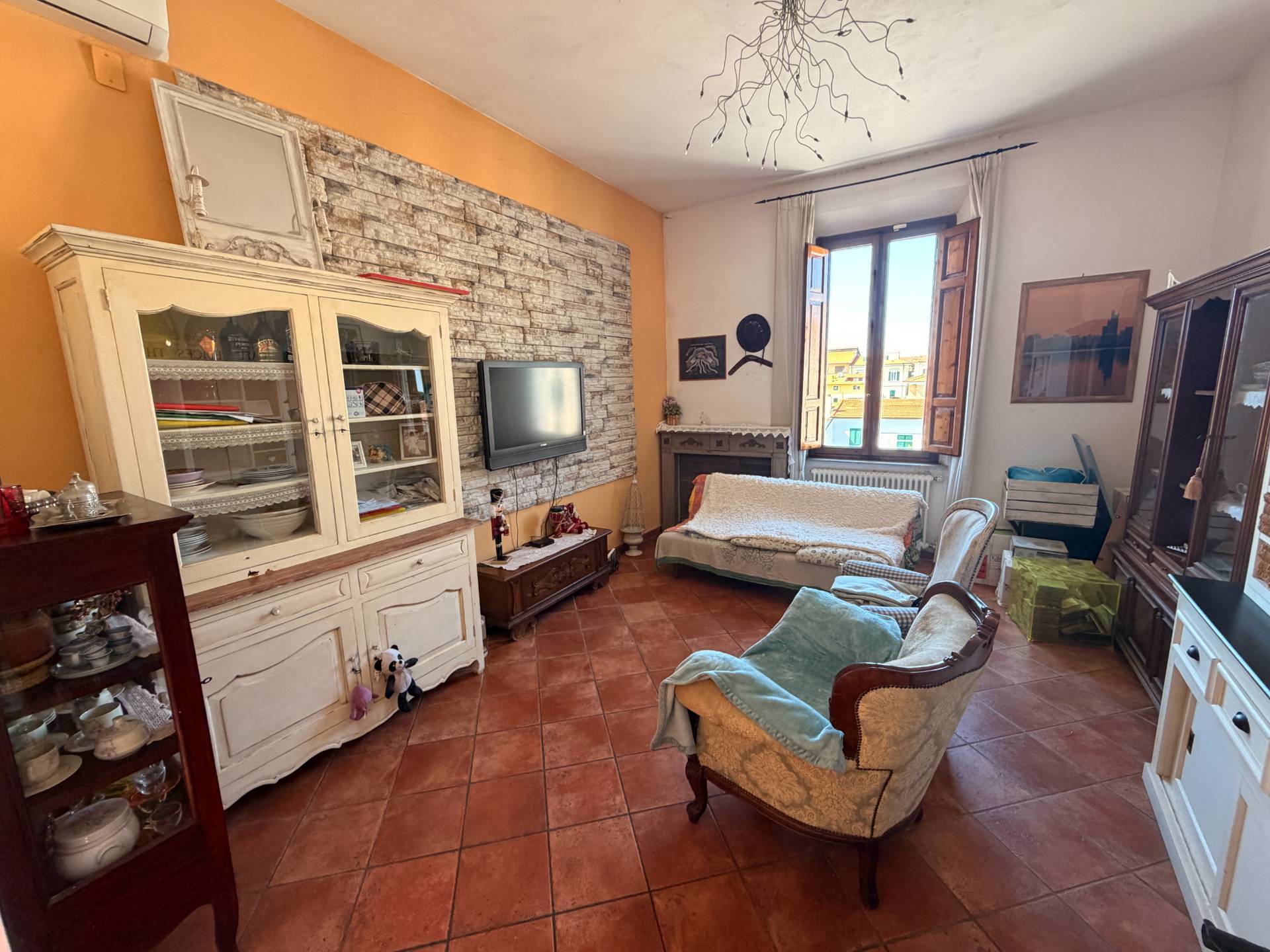 This is an apartment located in an Art Nouveau villa on the first floor, accessed via an external staircase leading to a habitable terrace. The apartment features an excellent entrance area that could allow for the possibility of dividing the apartment into two independent solutions: the first floor and the attic, which could be used as a habitable solution. The first floor comprises a large living room with balcony, eat-in kitchen, double bedroom, study, bathroom, and closet. The attic, connected to the first floor by an internal spiral staircase, boasts a solution of four heated and air-conditioned rooms. There is the possibility of creating a bathroom/WC and a kitchenette. The property is partially in need of renovation; the external shutters and facade have been redone. The setting is very pleasant and exclusive. For information and viewings, Andrea 3391878399. A real bargain!!!