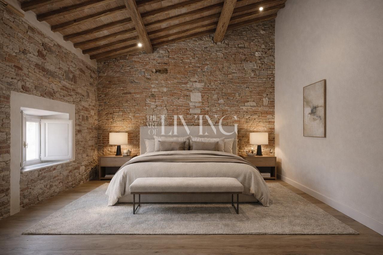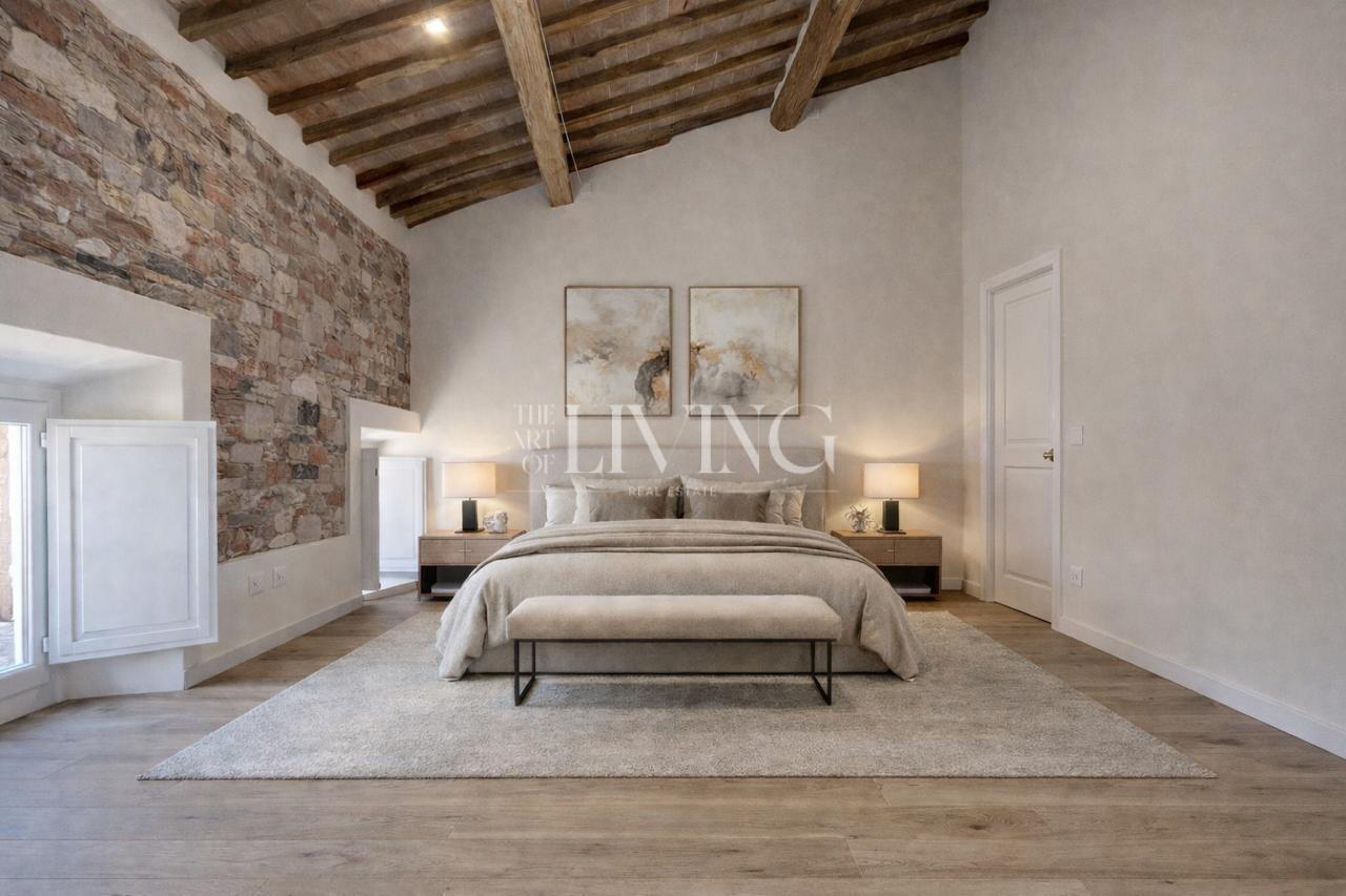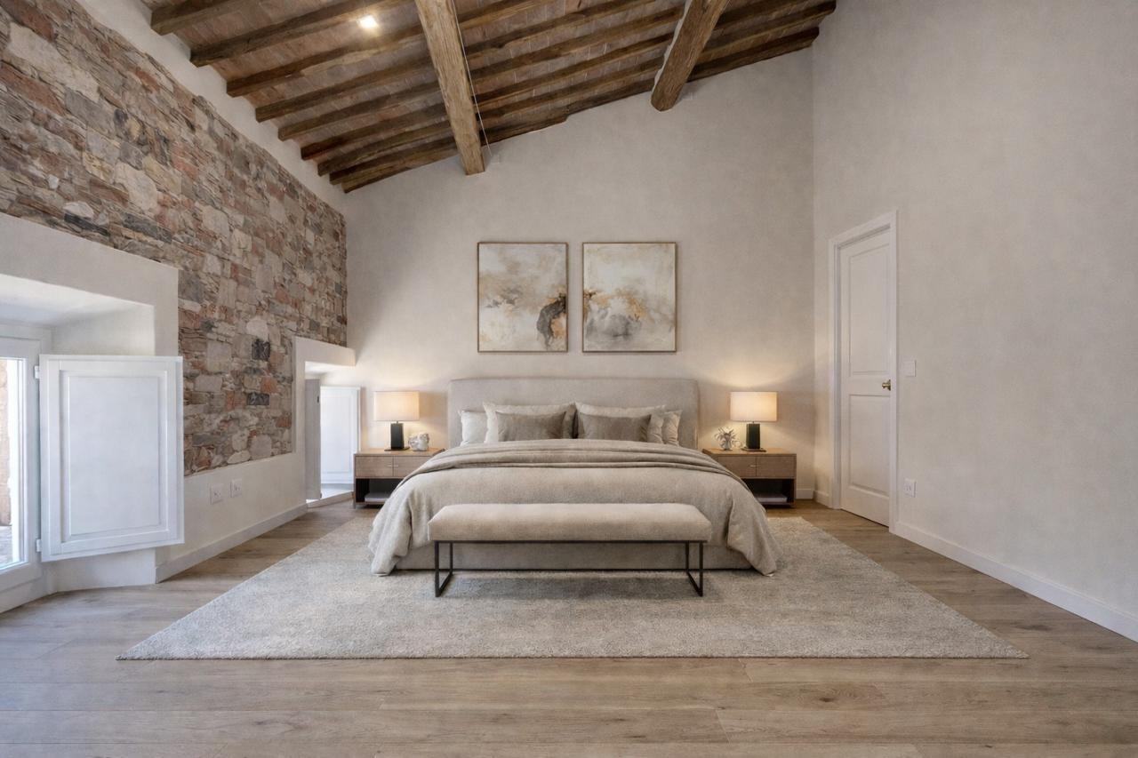 L’immobile offre una zona giorno ampia e funzionale con soggiorno, sala da pranzo e cucina separata. La zona notte è composta da camera padronale con guardaroba e bagno, seconda camera e ulteriore servizio. Gli ambienti, valorizzati da suggestive altezze mansardate, risultano luminosi e ricchi di carattere.