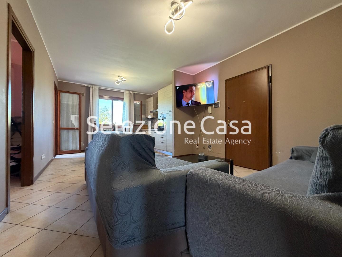 Al comodo primo piano con ascensore questo appartamento ti accoglie con una grande zona giorno, tanta luce e l'affaccio sul verde. Il soggiorno offre abbondante spazio relax con due ampi divani: perfetto per rilassarti, per far giocare i bambini in casa e ricevere ospiti.
