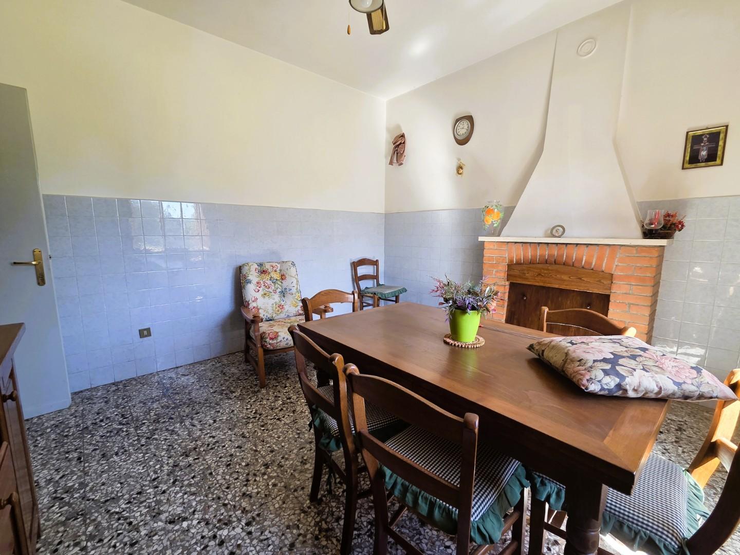 Varcando l’ingresso al piano terra, si viene accolti da spazi generosi e luminosi: un grande salotto perfetto per momenti di condivisione, una cucina abitabile con camino che invita a serate calde e conviviali, una sala da pranzo, una dispensa e un bagno con doccia. Al piano superiore, quattro ampie camere matrimoniali offrono quiete e intimità, accompagnate da un bagno. Salendo ancora, la soffitta sorprende con le sue altezze importanti e i suoi due ambienti suggestivi, pronti a trasformarsi in spazi da vivere: camere, angoli relax, luoghi dove dare forma ai propri sogni.