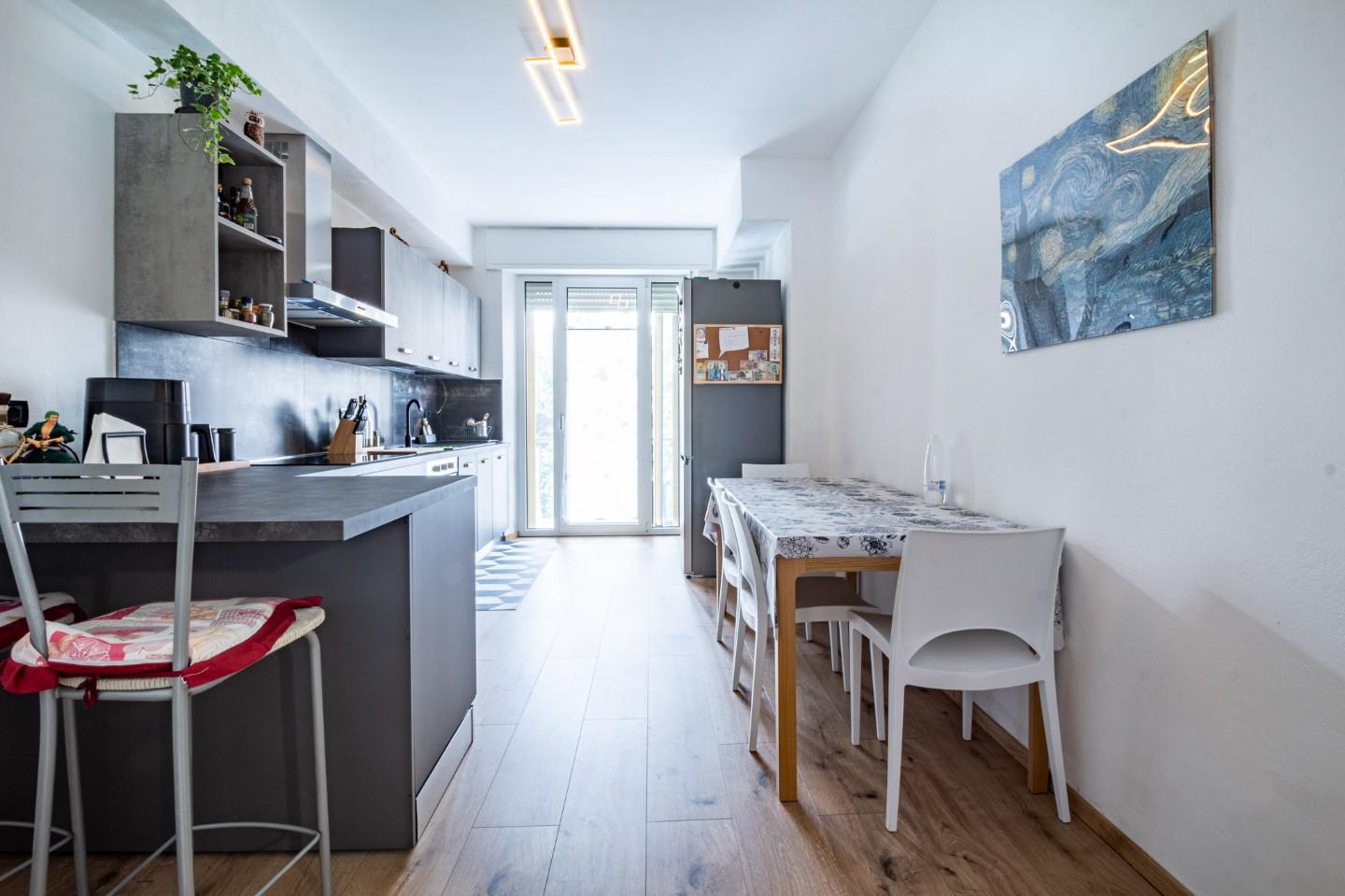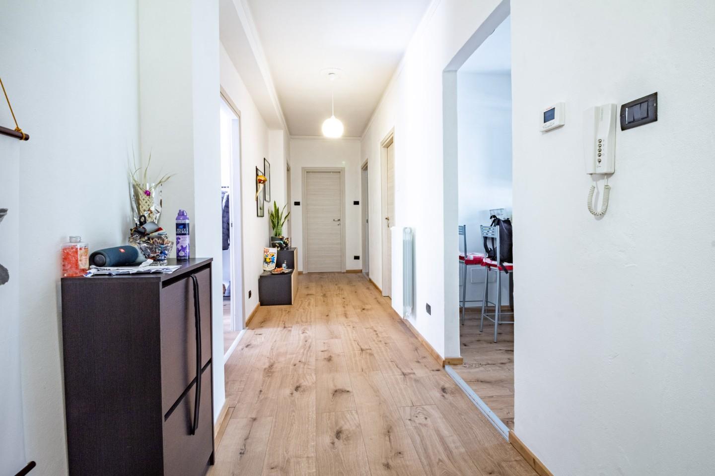 L'immobile è stato oggetto di una ristrutturazione recente ed è composto da un ingresso tradizionale a corridoio, la cucina abitabile servita da balcone è spaziosa e luminosa, la sala rimane ben separata e ha l'accesso da una porta finestra ad un ulteriore balcone. Le camere da letto in totale sono due e sono entrambe matrimoniali, una delle due ha il agno padronale con doccia e finestra.