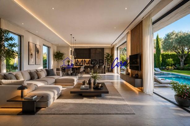 L’immobile in questione si sviluppa su una superficie di circa 120 mq distribuiti in ambienti ampi e luminosi. L’ingresso ci introduce alla zona giorno open space, caratterizzata da due ampie porte finestre che creano continuità tra interno ed esterno, con affaccio diretto sul patio e sul giardino con piscina privata.