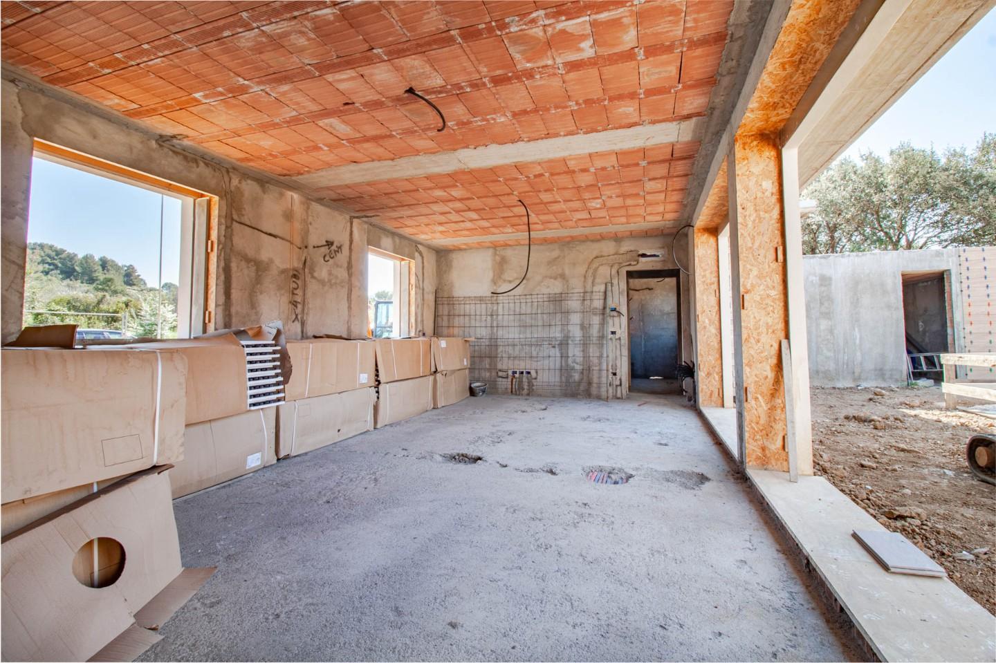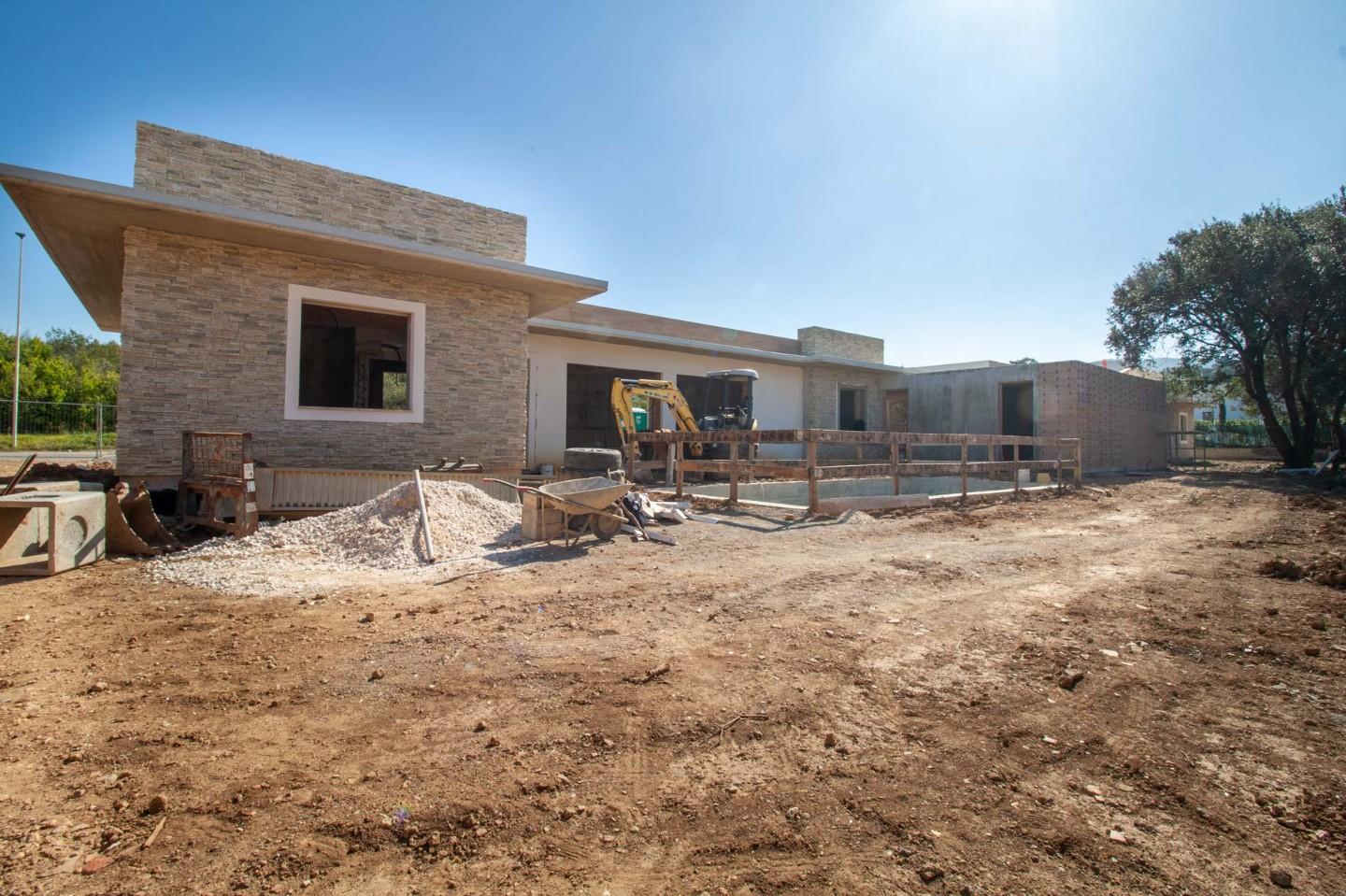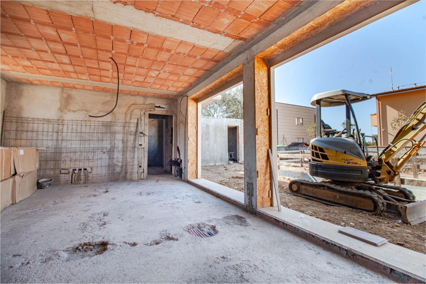 Le villette sono attualmente in fase di realizzazione (struttura in cemento armato completata e rivestimenti esterni in pietra in corso), con finiture di alta qualità e possibilità di personalizzazione dei materiali.
