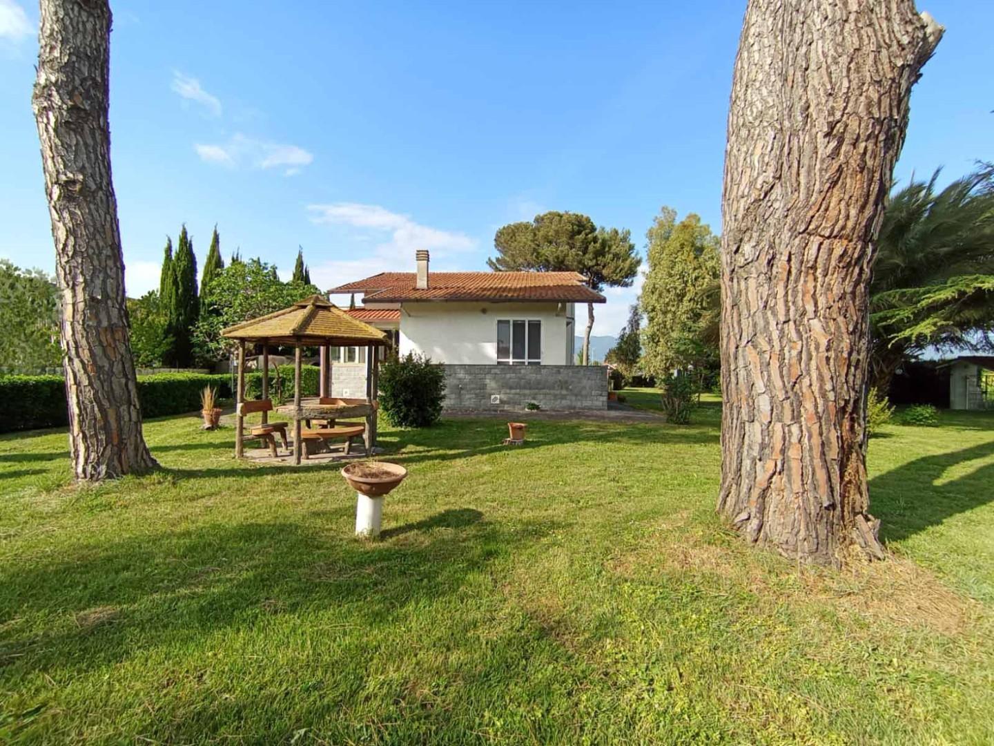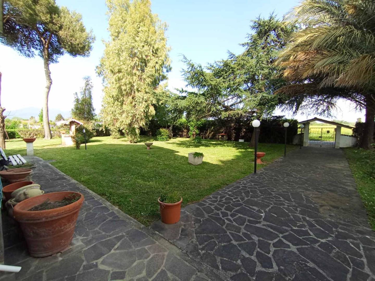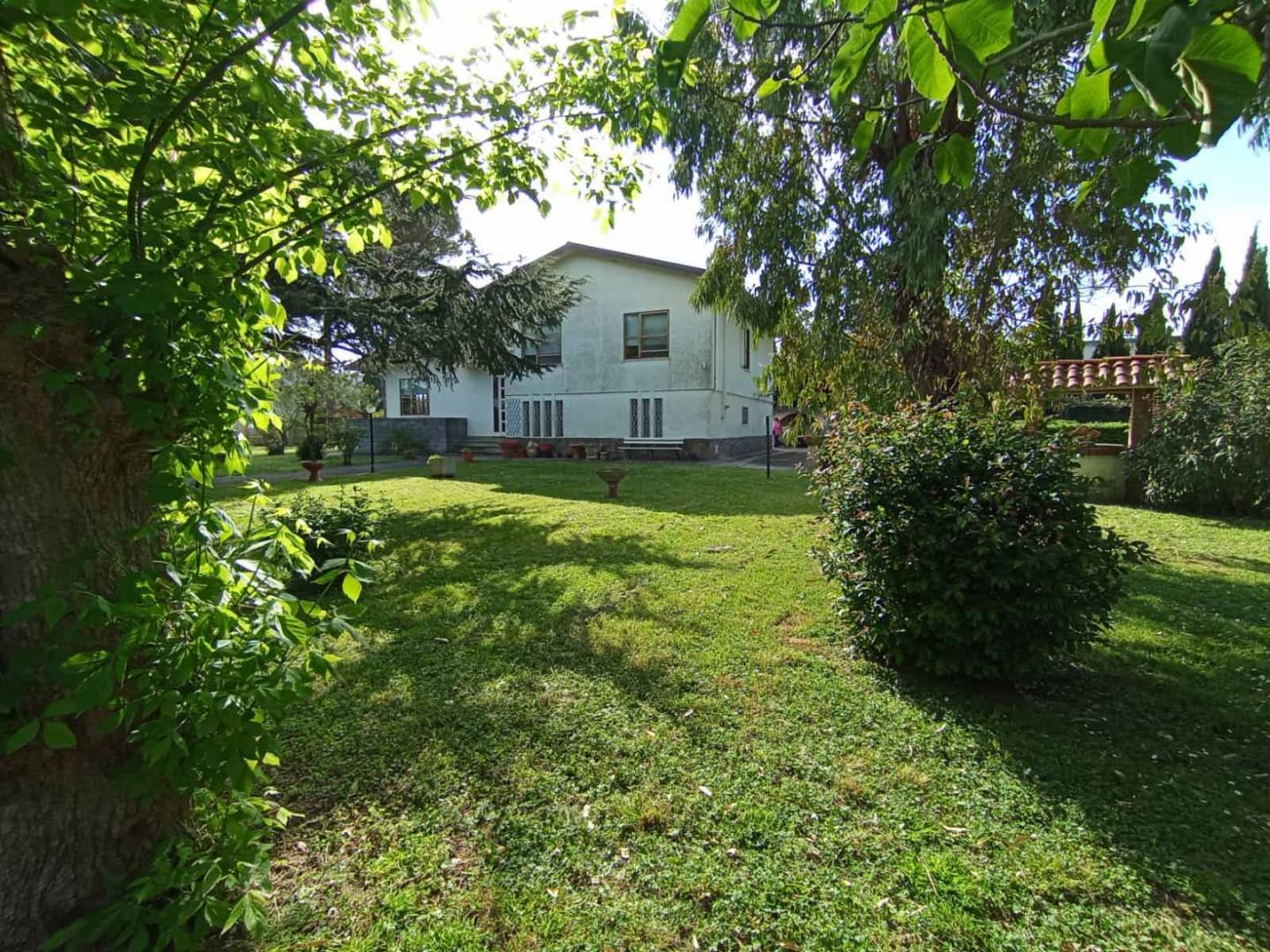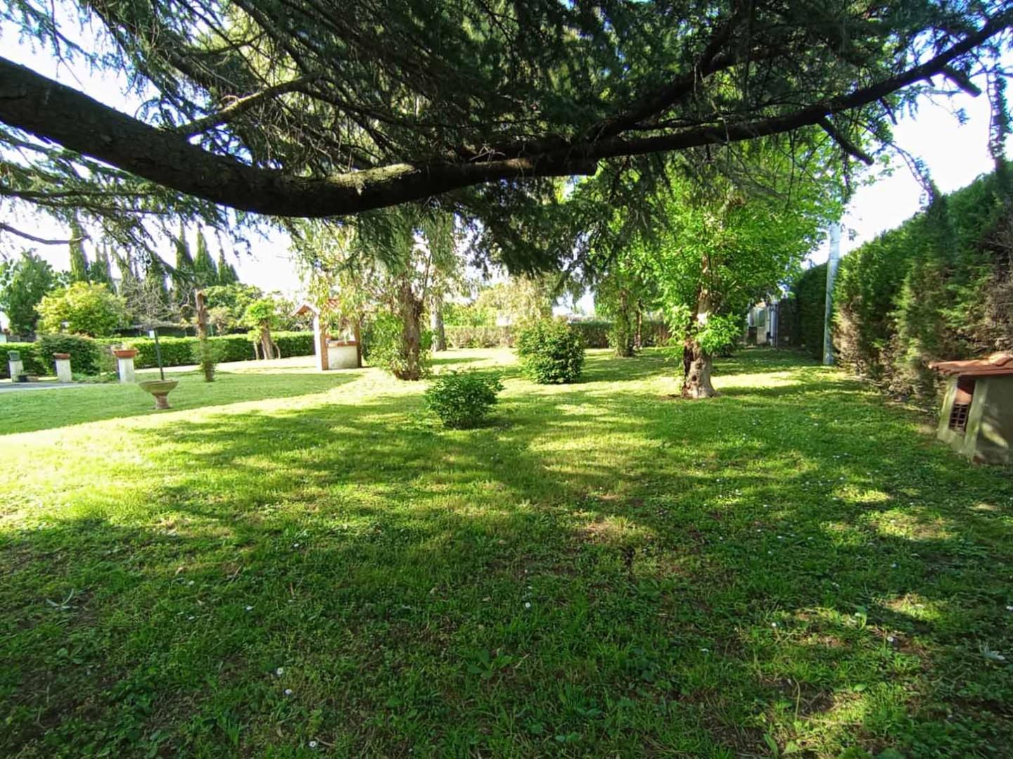 Il parco, vero punto di forza della villa, rappresenta un’oasi esclusiva perfetta per momenti di relax, attività all’aperto o per la realizzazione di una piscina. La presenza di alberature mature e ampie zone verdi crea un’atmosfera riservata e suggestiva.