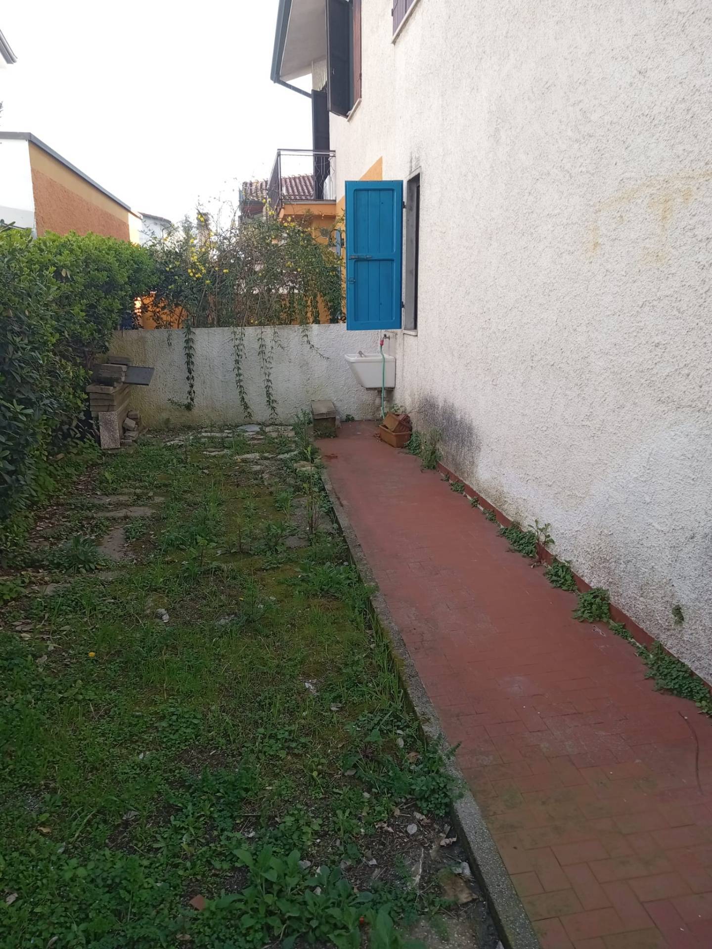 Non arredata, ma con una cucina abitabile, la proprietà comprende anche un giardino privato e un terreno adiacente.
