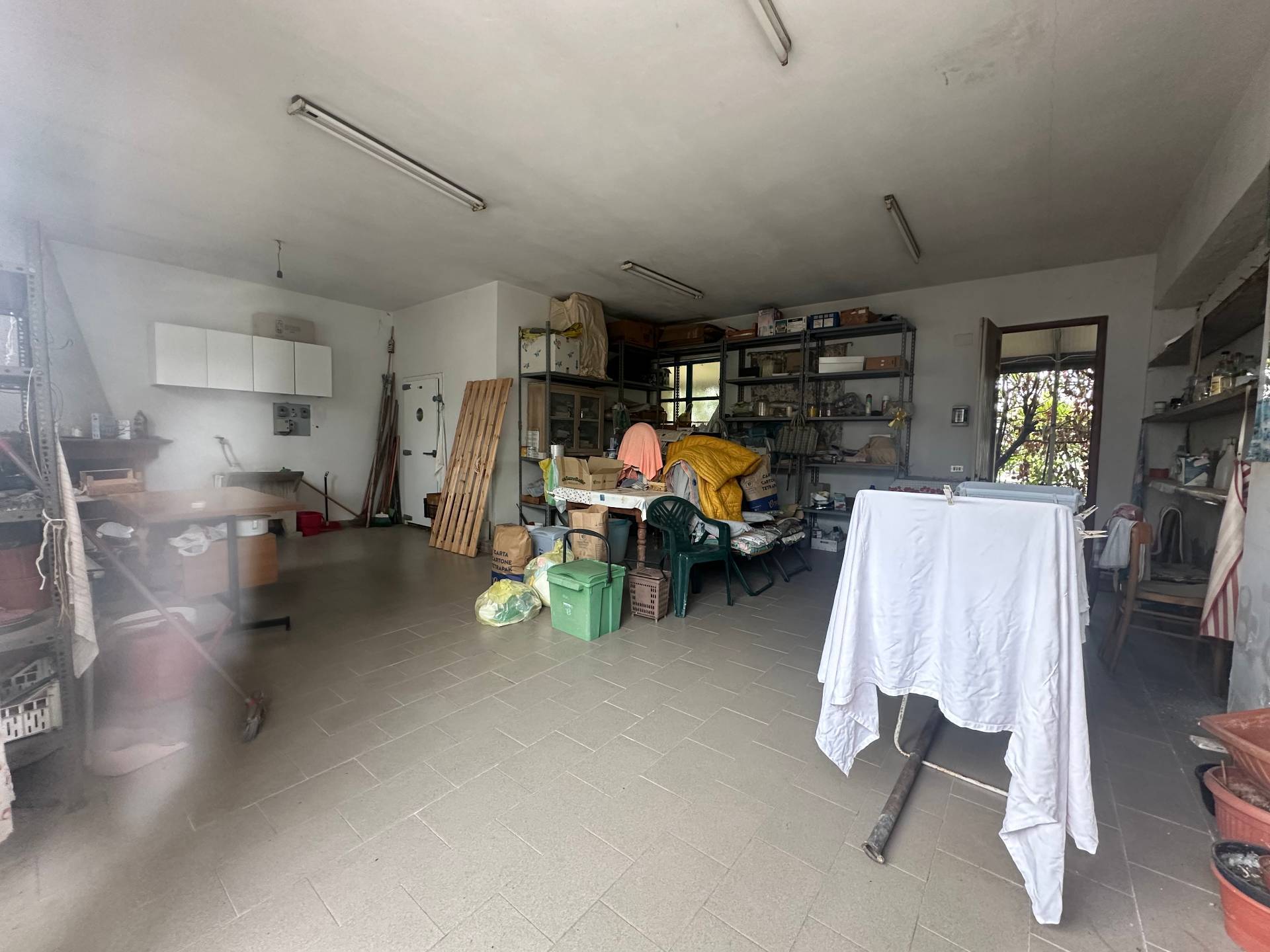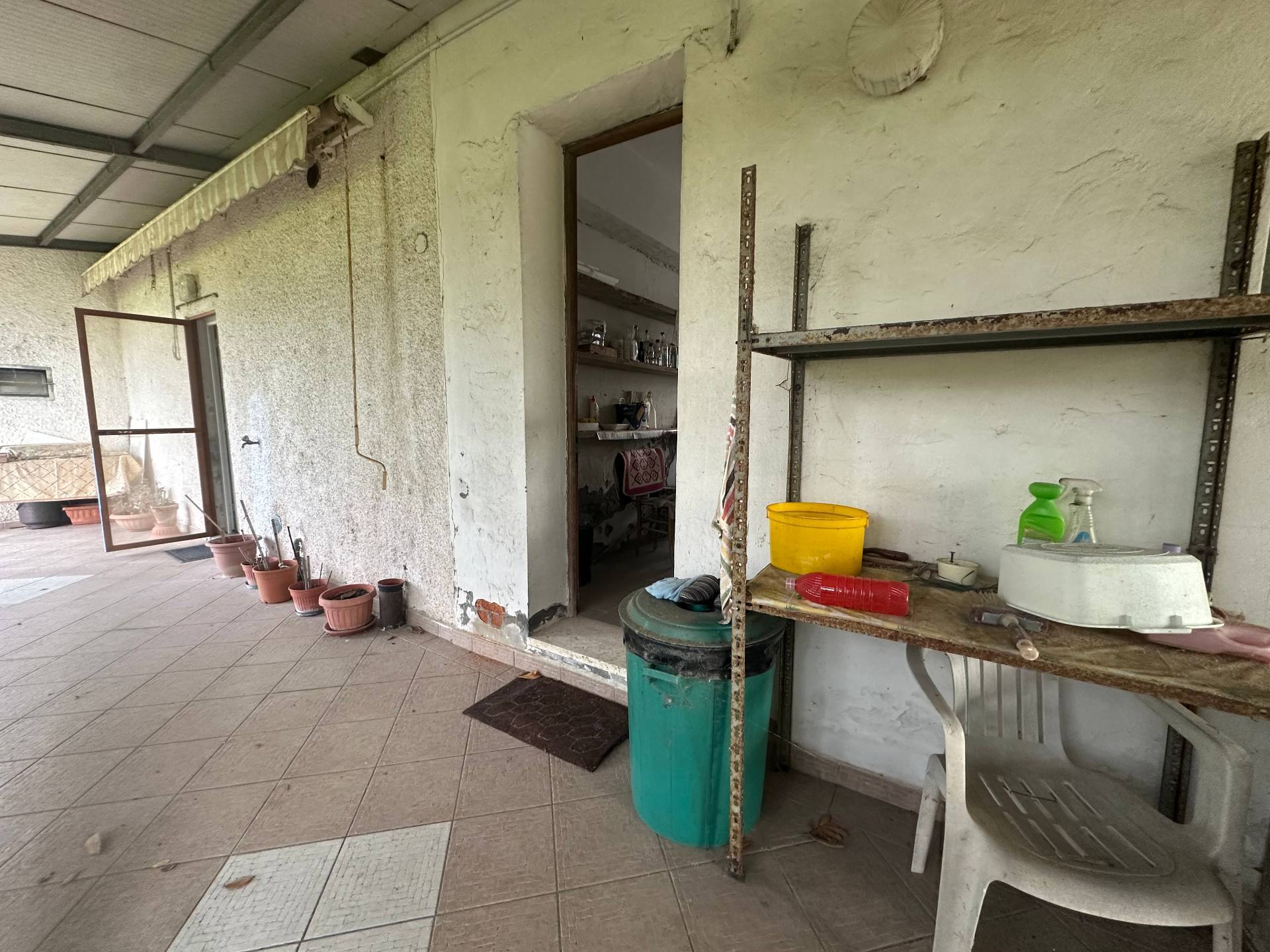Si accede all'abitazione, attraversando una ampia veranda,tramite un comodo ingresso, che conduce al piano terra dovo si trova la zona giorno composta da cucina abitabile e ampio e luminoso soggiorno, allo stesso piano si trovano un ampio bagno finestrato con doccia, e un grande locale attualmente utilizzato come magazzino, che potrebbe essere utilizzato come ampliamento della superficie abitabile della zona giorno.