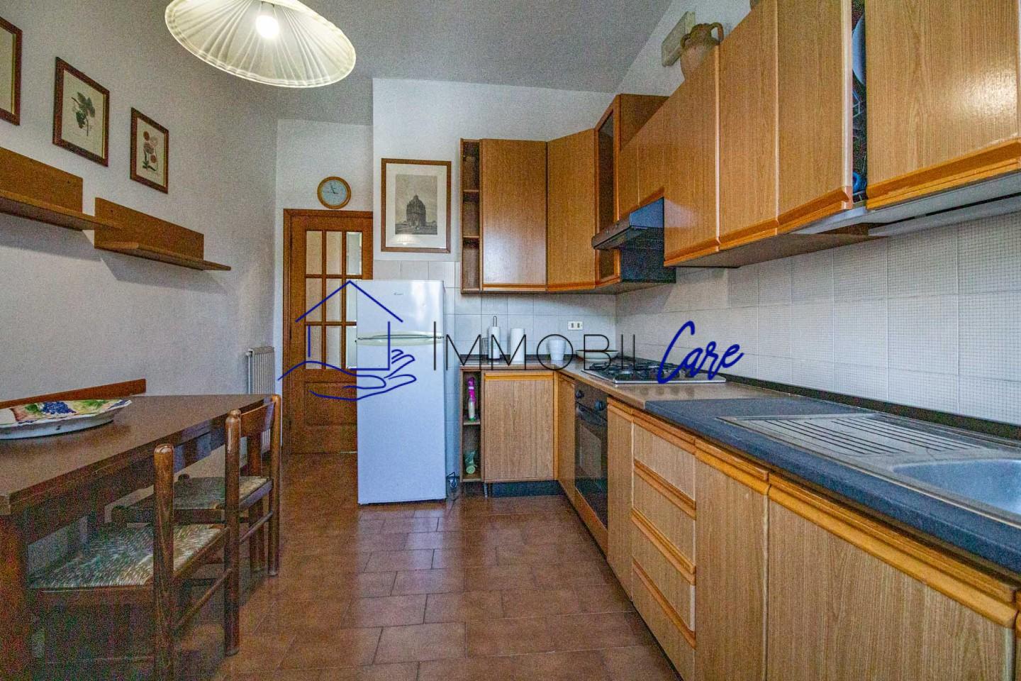 La cucina rimane separata e servita da un balcone verandato attualmente adibito a zona lavanderia.