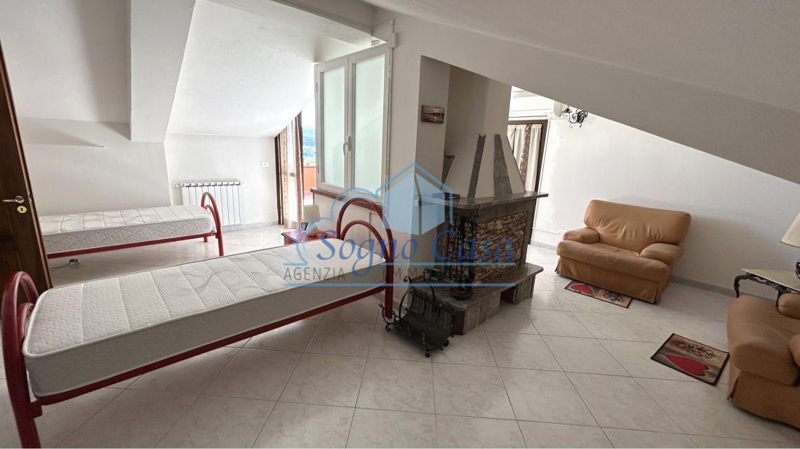 Le terrazze sono cinque, tutte abitabili, la più importante è quella della zona giorno dove si affaccia sia il soggiorno sia la cucina ed è verandata permettendo l'utilizzo praticamente durante tutte le stagioni. Le altre terrazze ognuna nelle camere e nella zona della mansarda del terzo piano. Il plus dell'abitazione è questa zona open space mansardata ma con ottime altezze con camino abitativo (non sottotetto), da poter adibire a più soluzioni: camera ospiti, zona relax, zona studio, palestra, etc. A questo piano troviamo un servizio completo e finestrato.