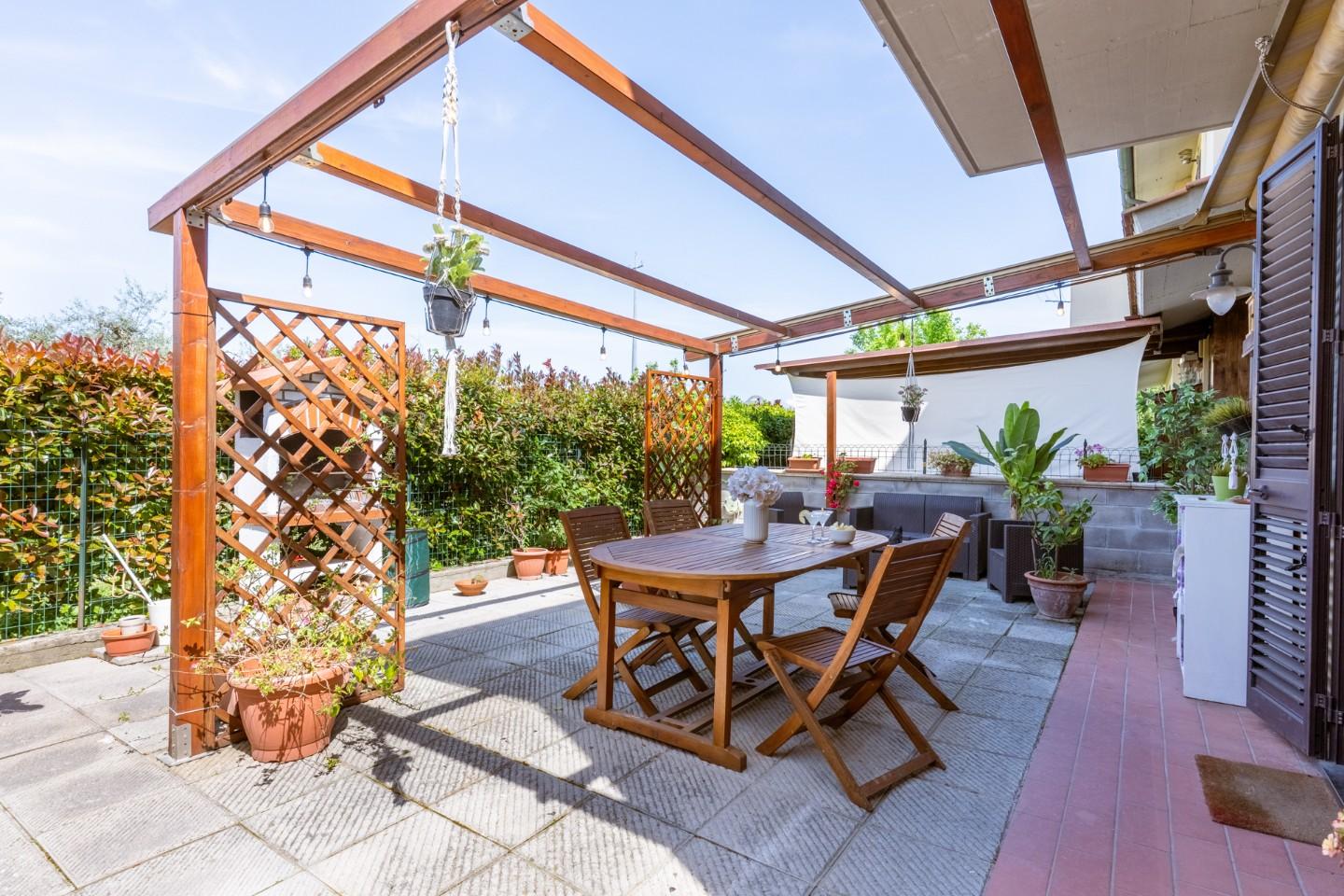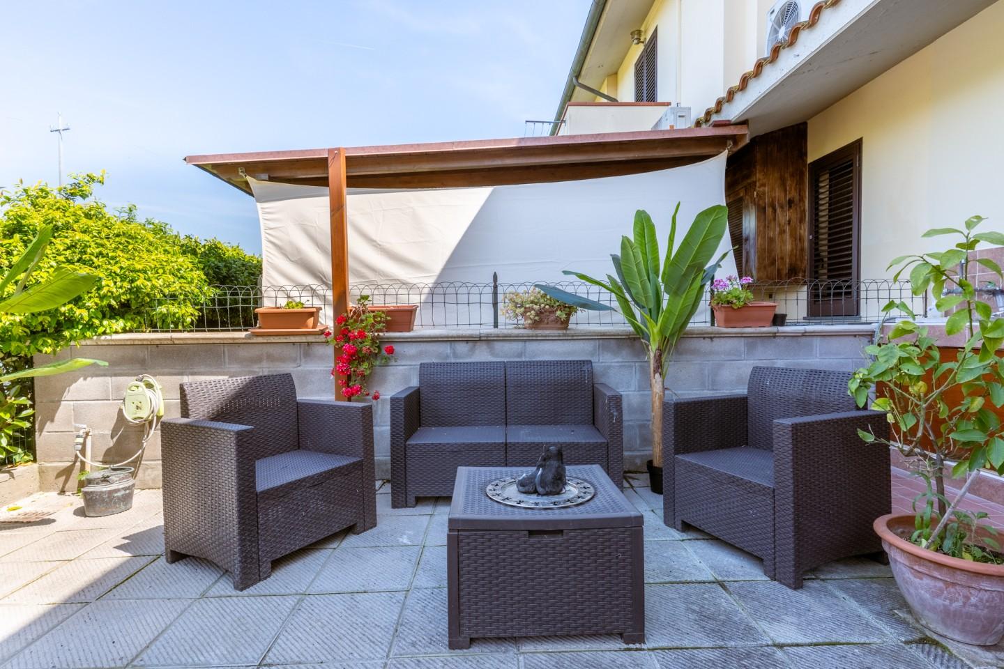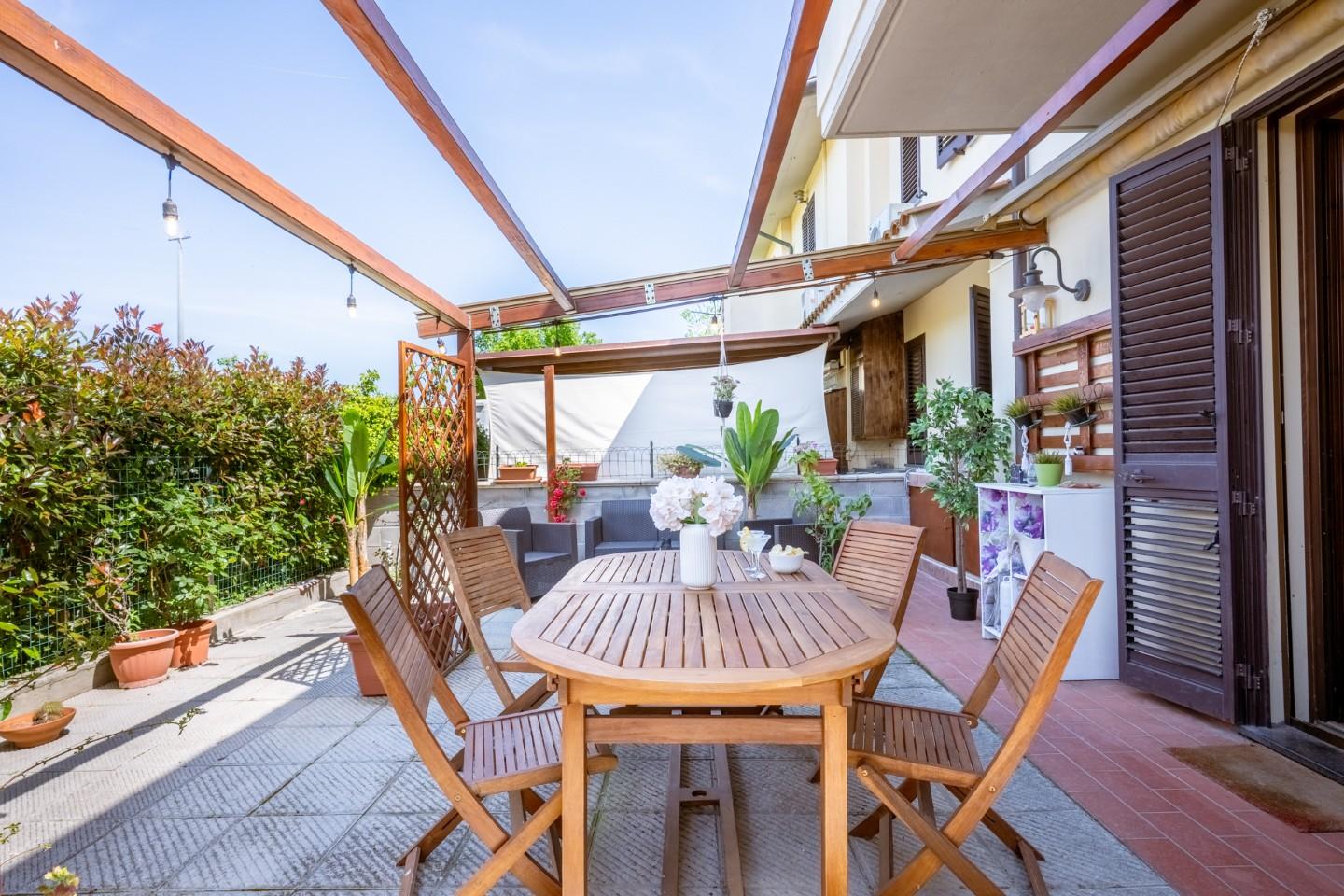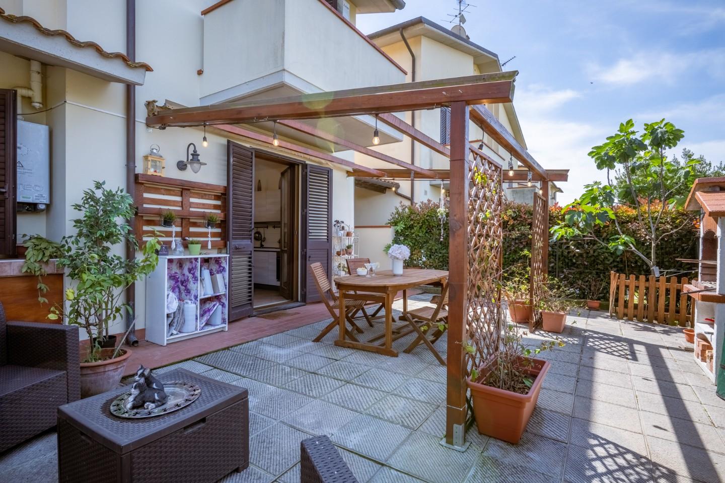 Cascina-Pardossi. Proponiamo in vendita villetta a schiera angolare, in ottime condizioni, ideale per chi desidera vivere in un contesto tranquillo senza rinunciare alla funzionalità degli ambienti.