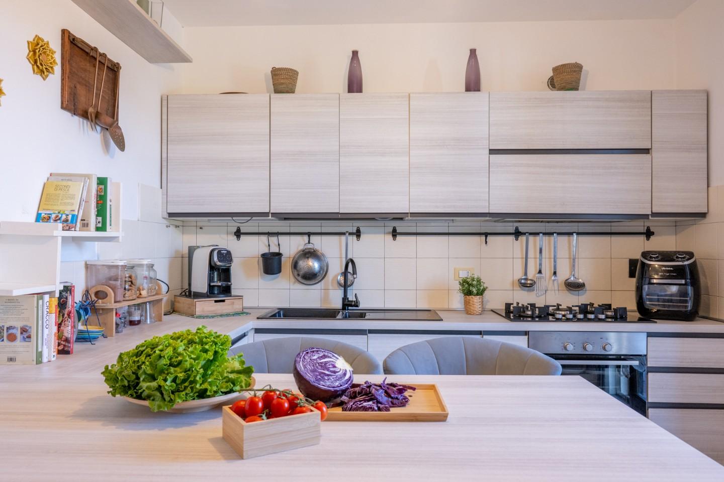 L’ingresso si apre su una ampia zona giorno, luminosa e accogliente, perfetta per la vita quotidiana e per ricevere amici e familiari. La cucina abitabile, separata, offre tutto lo spazio necessario per vivere ogni momento con praticità.