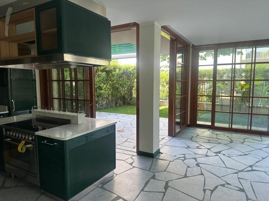 Composizione interna:Ingresso elegante.Ampio soggiorno con zona pranzo e living arricchito da un camino.Cucina abitabile.3 camere da letto matrimoniali, tutte con bagno privato.