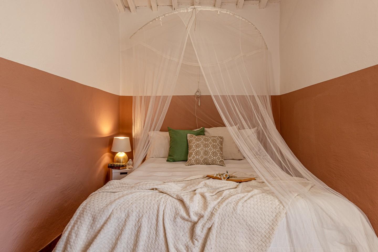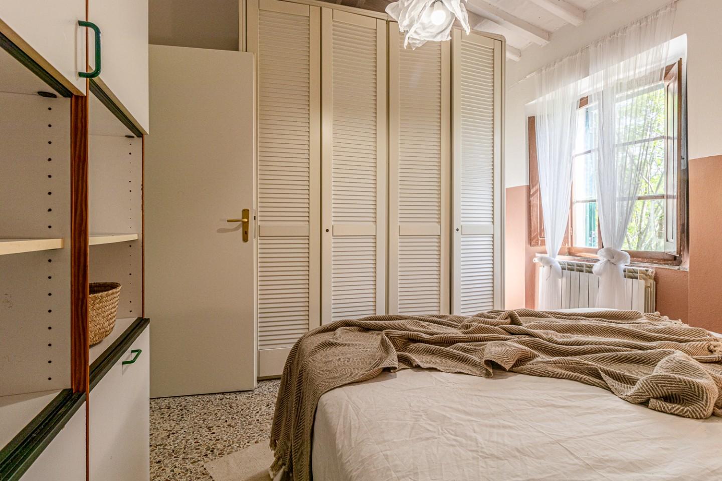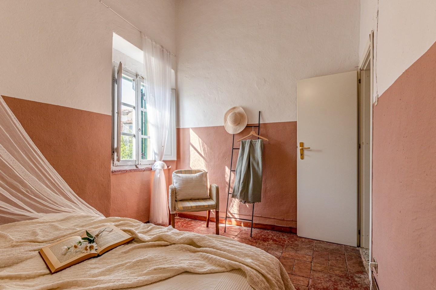 Lʼappartamento “Il Castelloˮ conserva i materiali di un tipico castello toscano che raccontano unʼidentità autentica: pavimenti in graniglia e cotto, soffitti con travi e travicelli tinteggiati di bianco, porte in legno color noce. Oggi richiede lavori di manutenzione o una