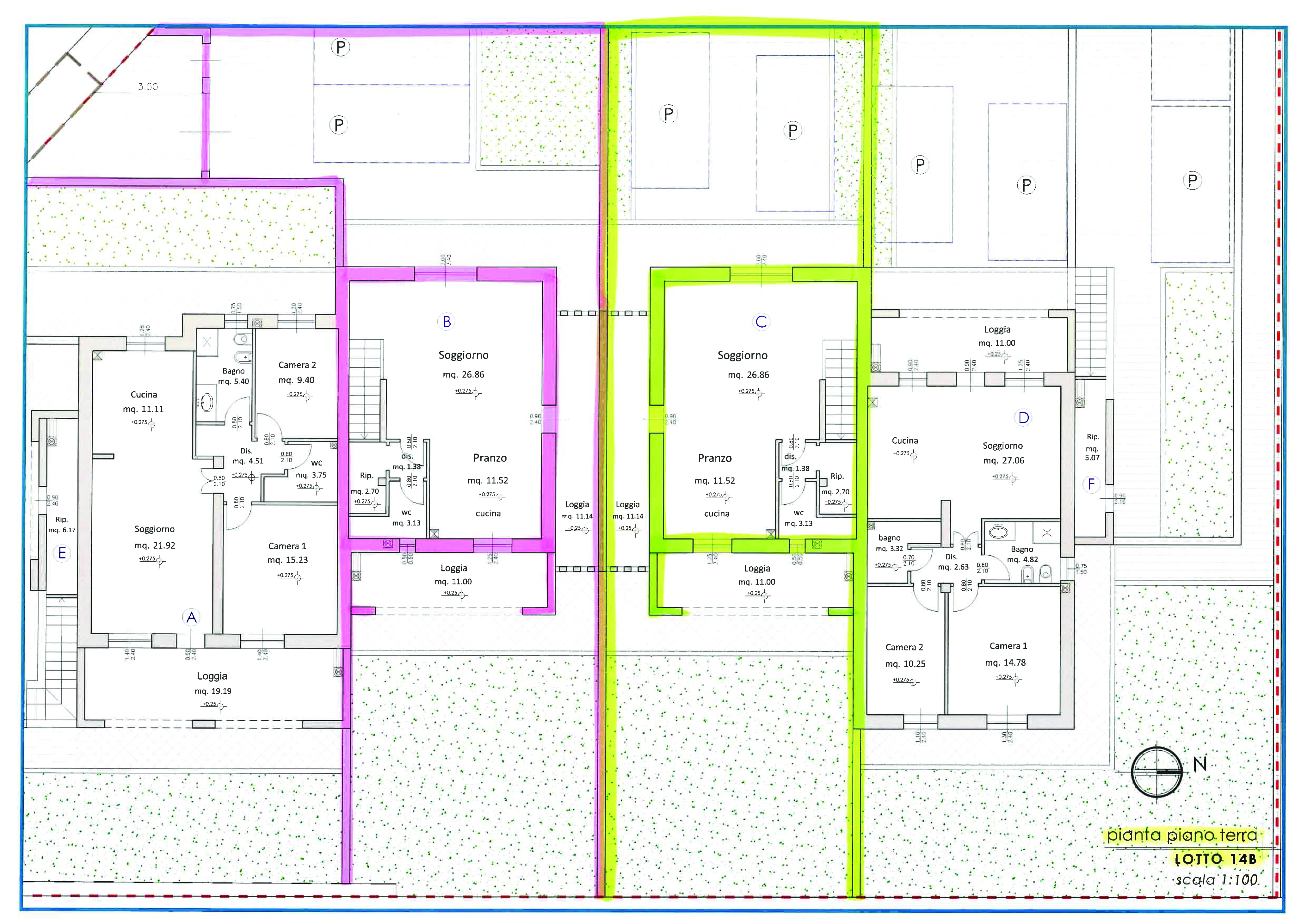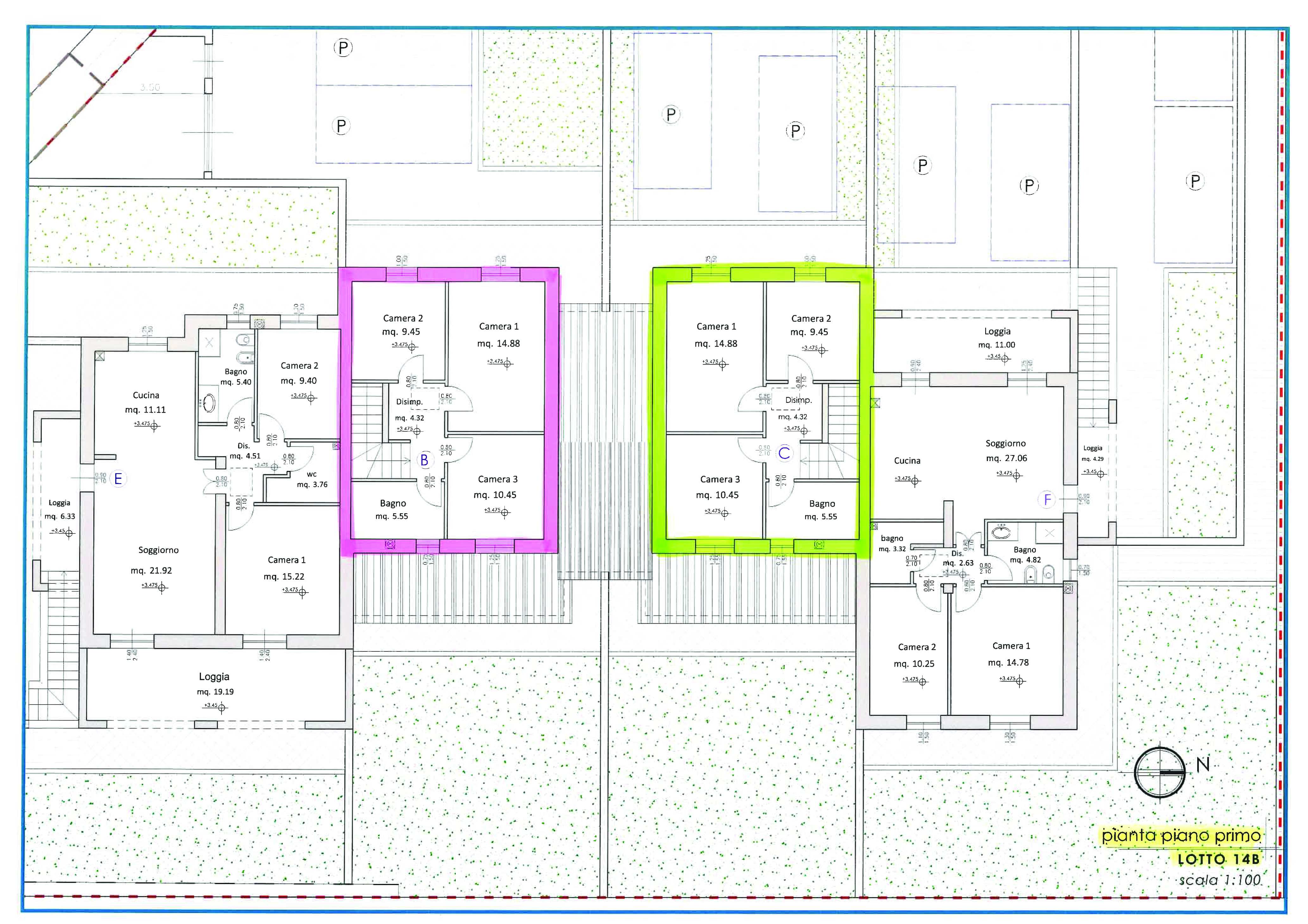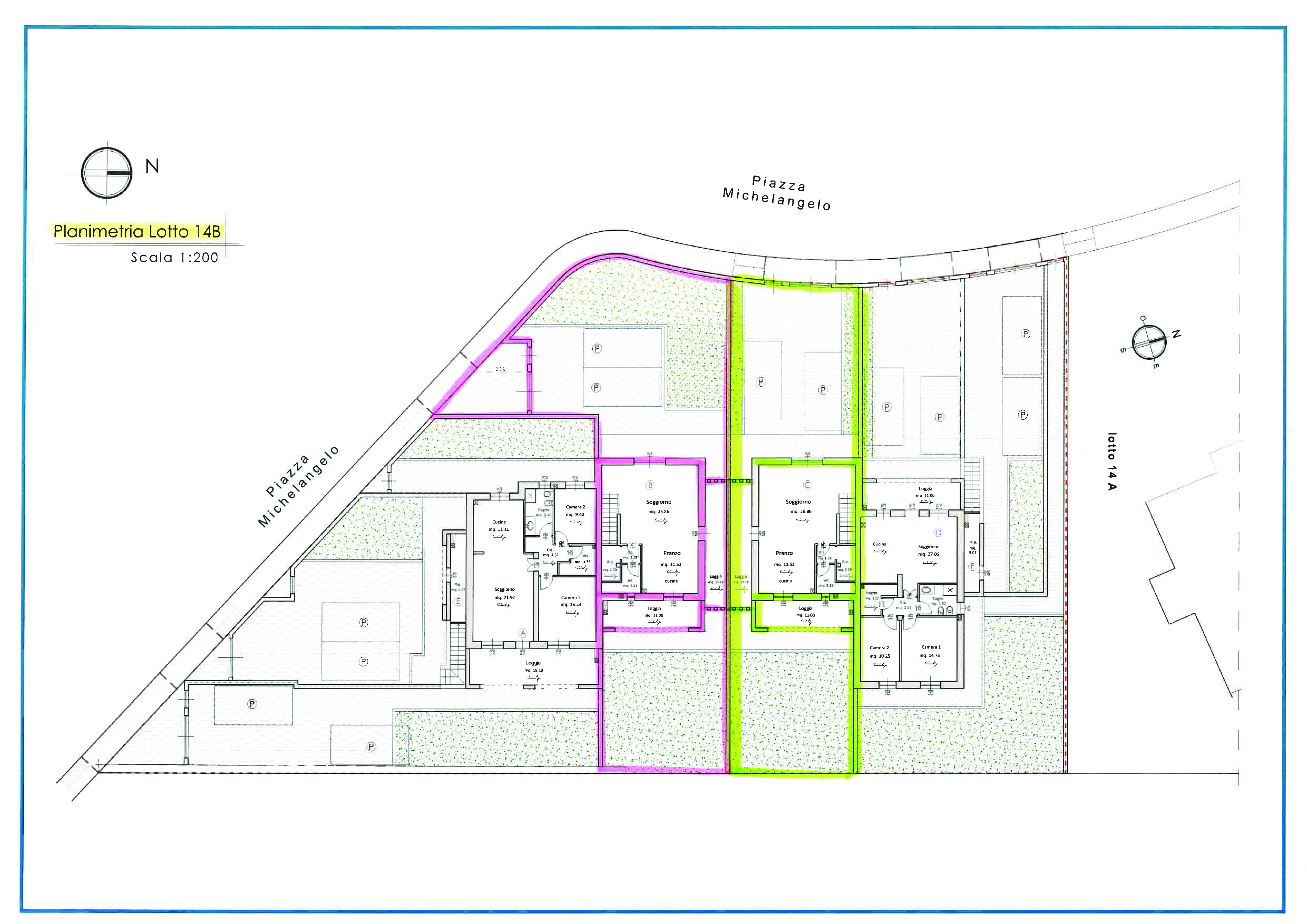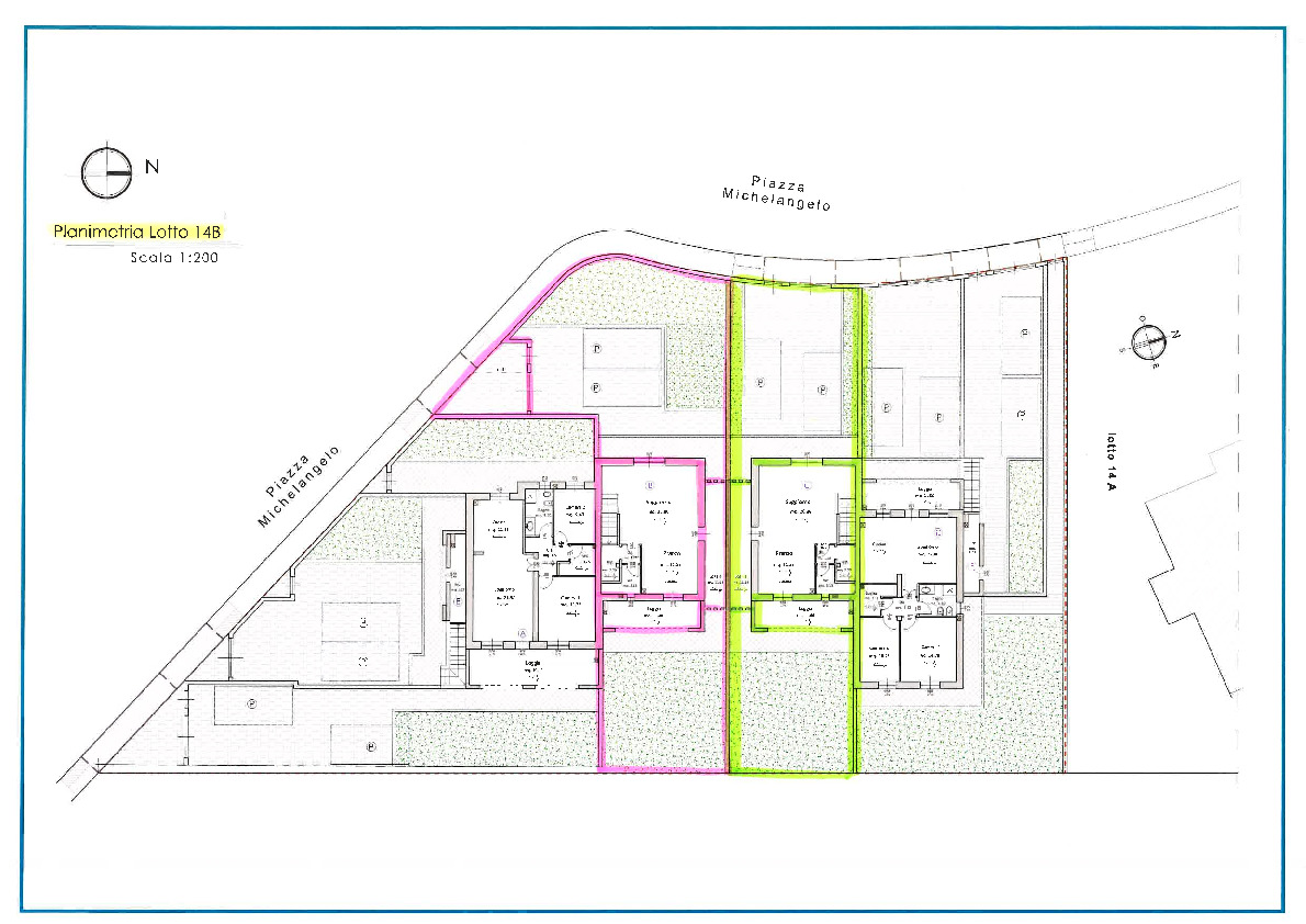 Il Grande GIARDINO ben sfruttabile ha una superficie di Mq. 230 ca., oltre alla zona esclusiva adibita a Posti Auto Privati esterna.