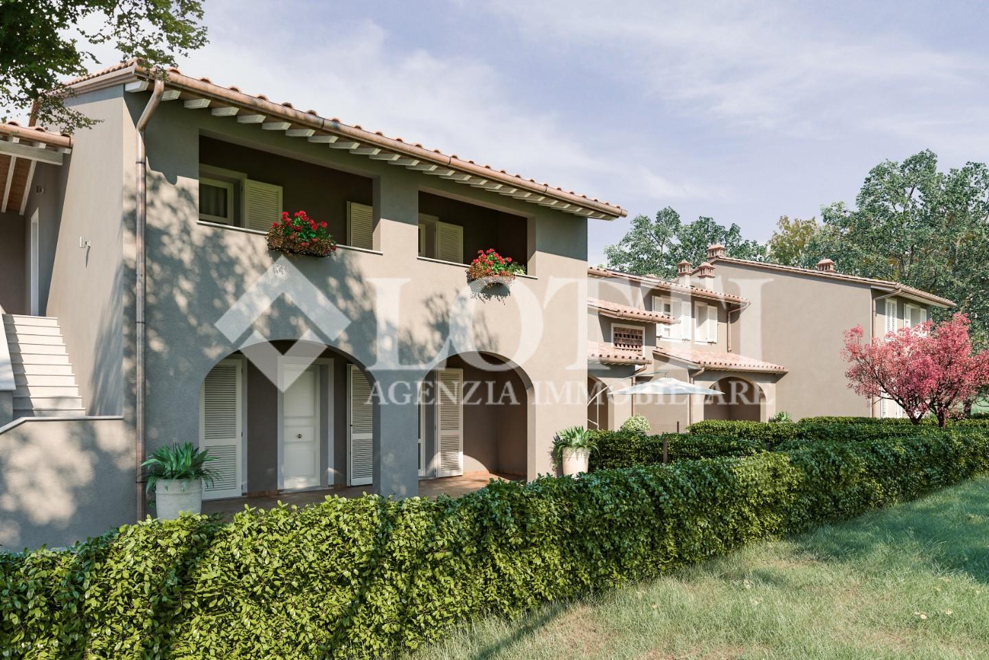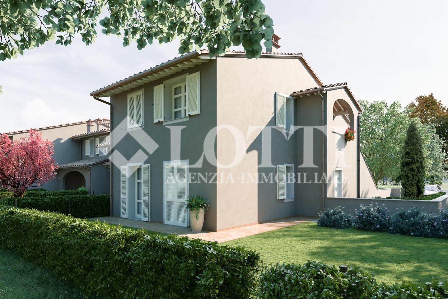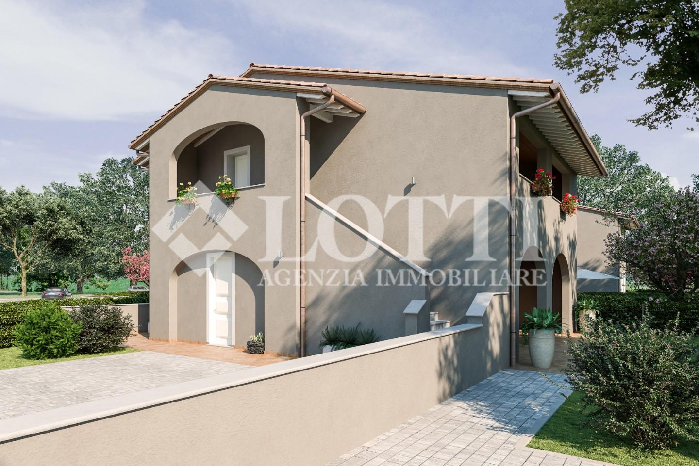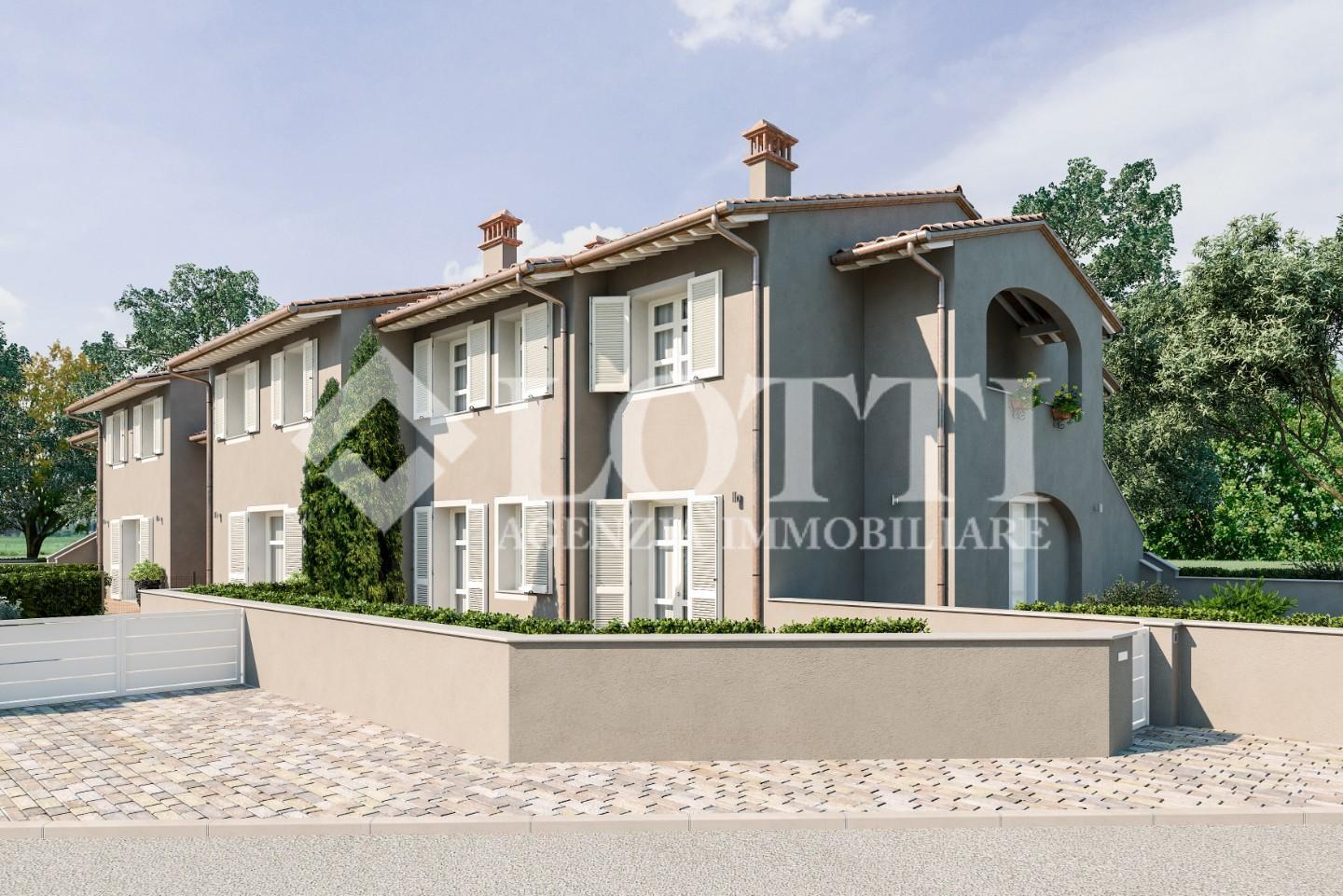 ESCLUSIVA VILLETTA di Nuova Costruzione di mq. 125 corredata da Loggiato oltre Grande Giardino di mq. 230 ca.. Alta qualità costruttiva in Classe A con rifiniture in stile tipico toscano e impianti di ultima generazione, in Vendita a PONTEDERA nella nuova zona residenziale di SANTA LUCIA.