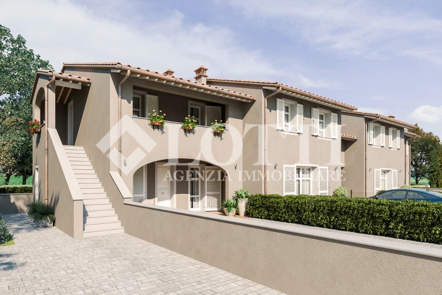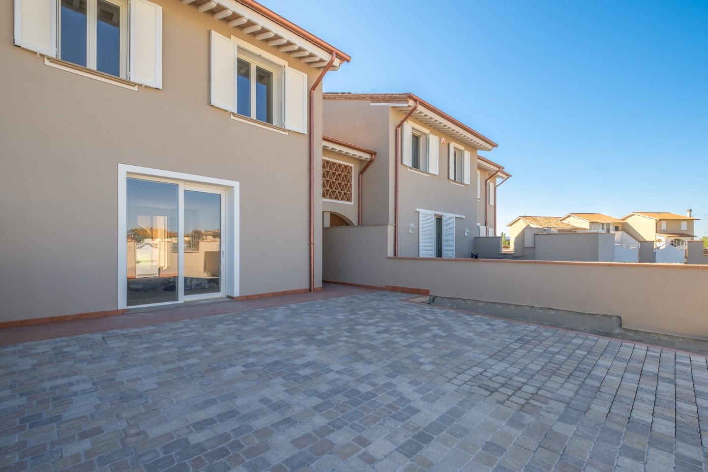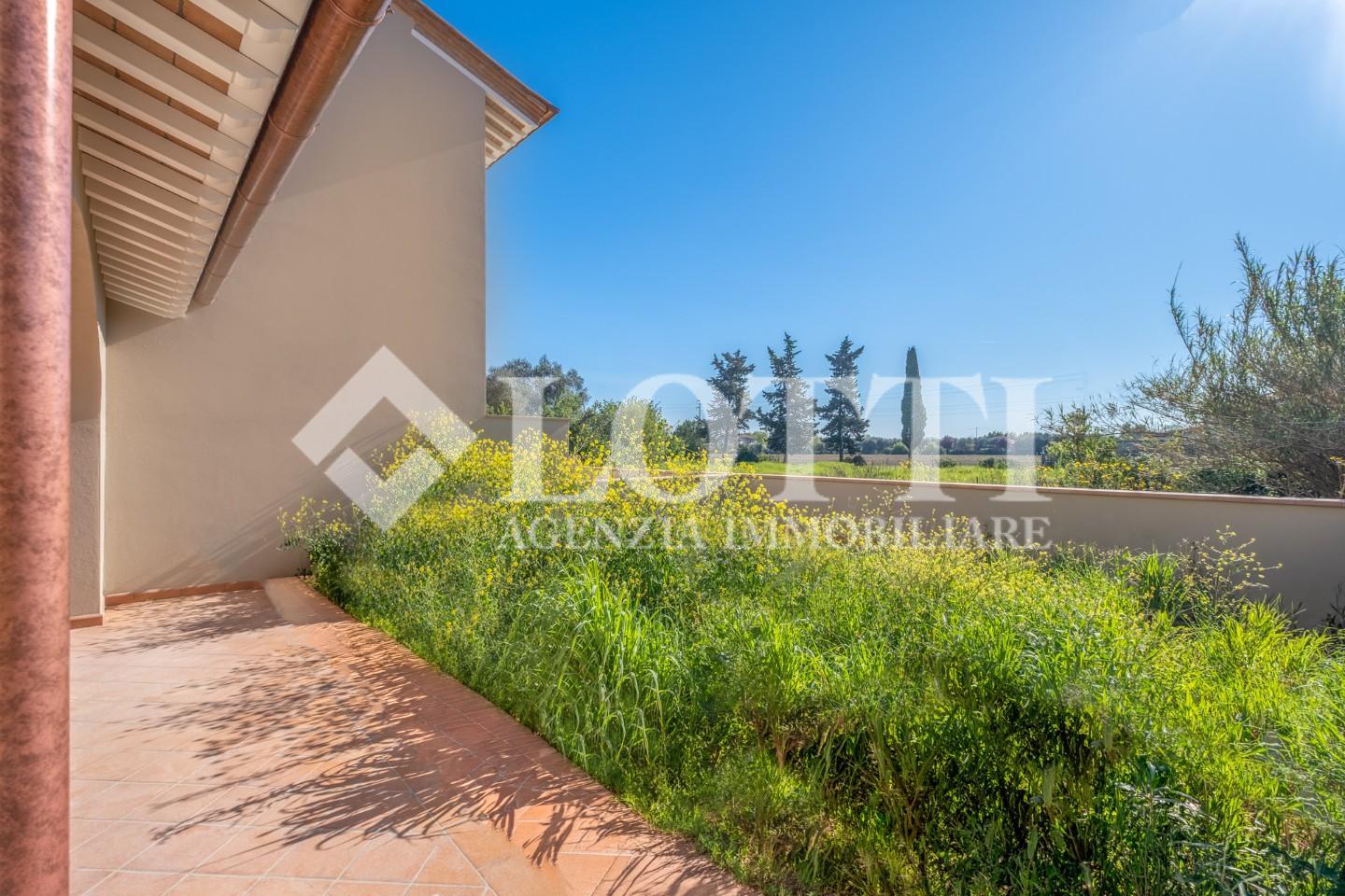 ESCLUSIVA VILLETTA di Nuova Costruzione di mq. 125 corredata da Loggiato oltre Grande Giardino di mq. 230 ca.. Alta qualità costruttiva in Classe A con rifiniture in stile tipico toscano e impianti di ultima generazione, in Vendita a PONTEDERA nella nuova zona residenziale di SANTA LUCIA.