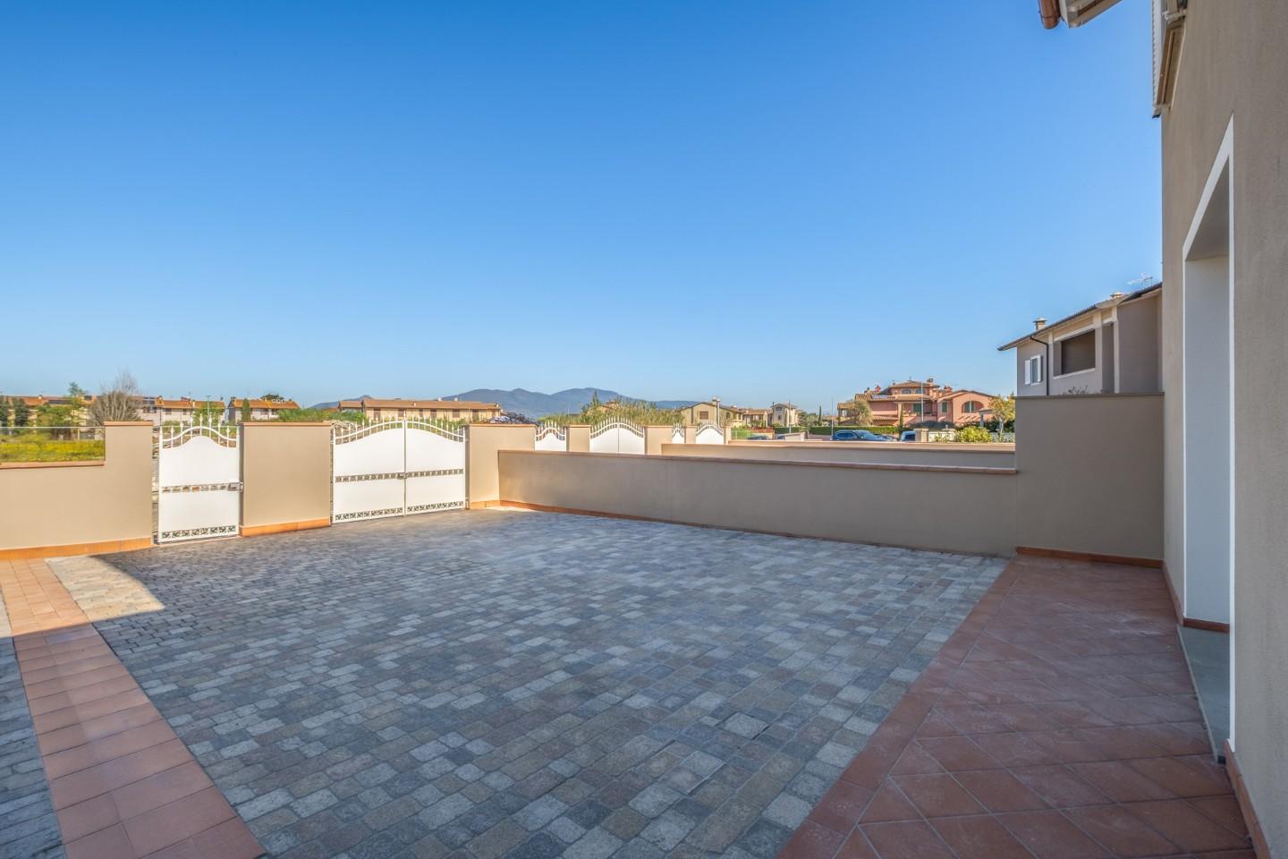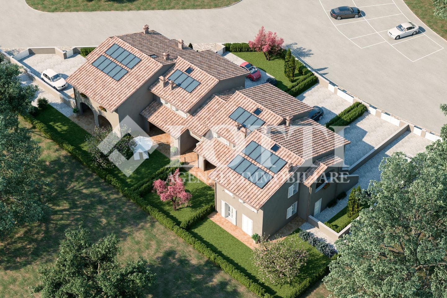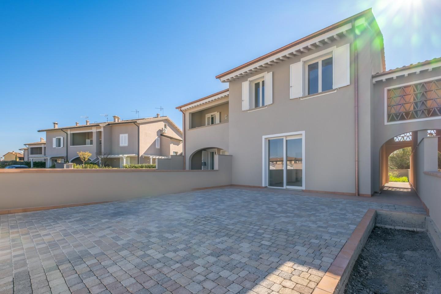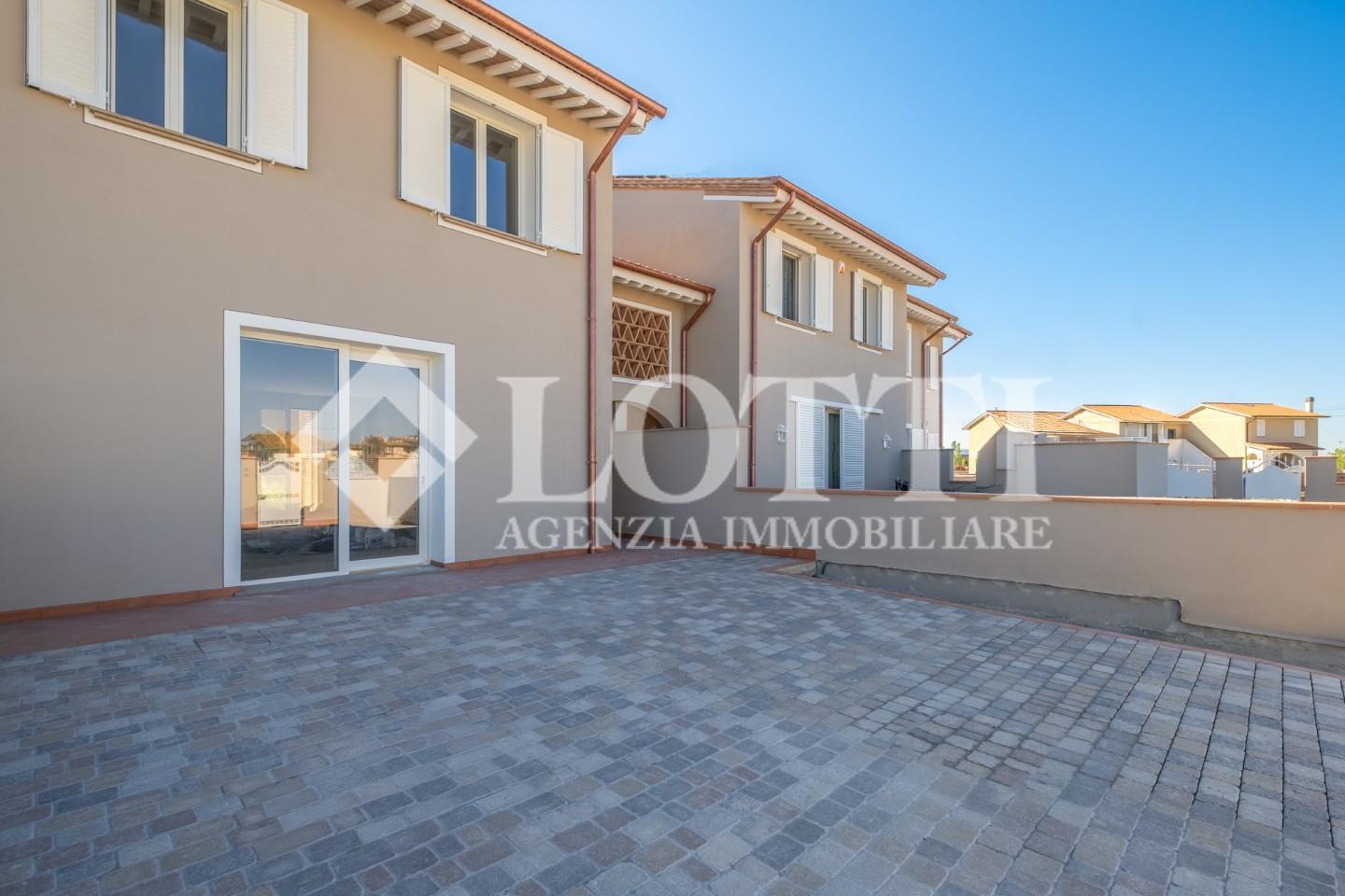 ESCLUSIVA VILLETTA di Nuova Costruzione di mq. 125 corredata da Loggiato oltre Grande Giardino di mq. 230 ca.. Alta qualità costruttiva in Classe A con rifiniture in stile tipico toscano e impianti di ultima generazione, in Vendita a PONTEDERA nella nuova zona residenziale di SANTA LUCIA.