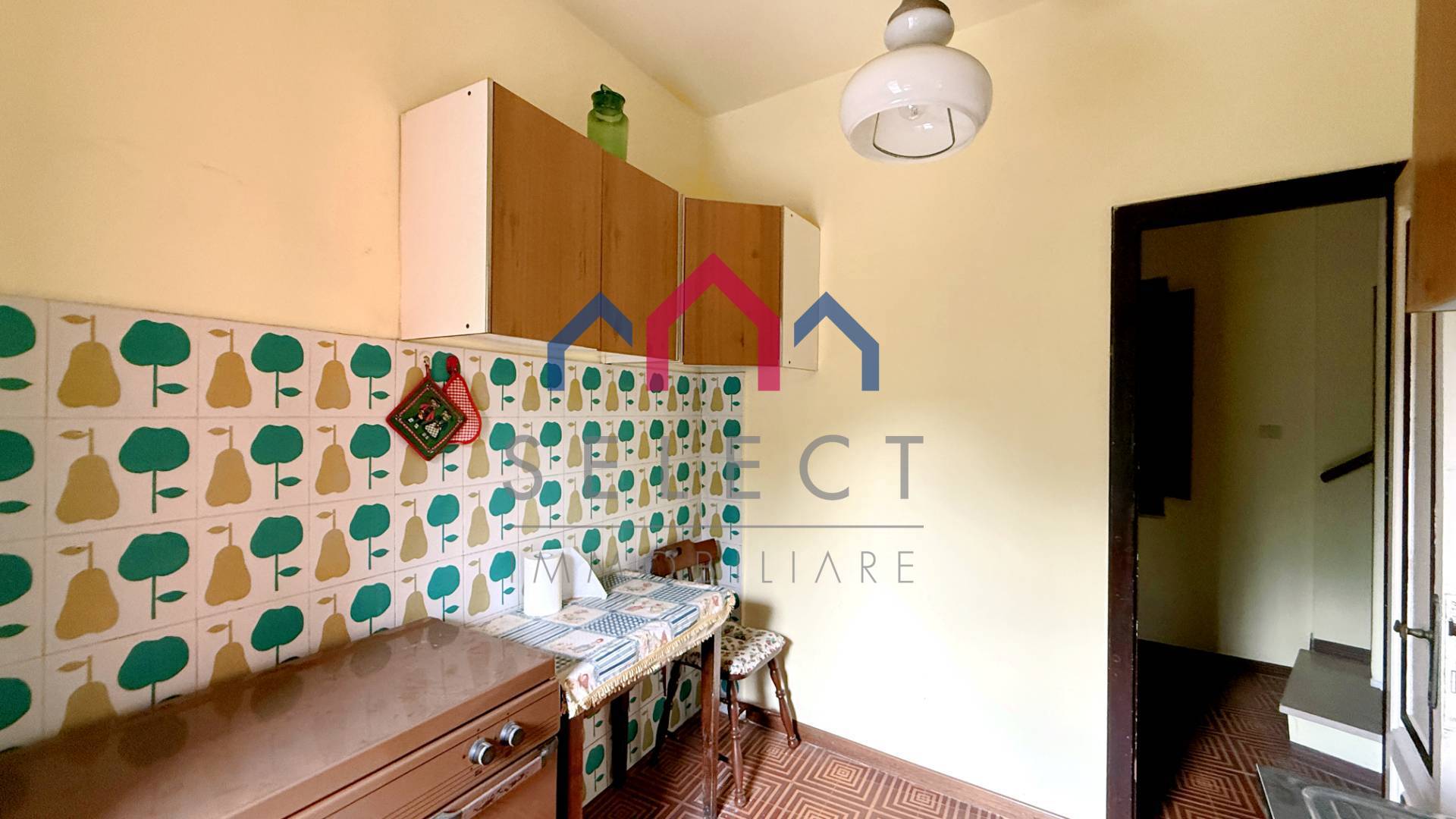 L'ingresso al piano primo si apre su un disimpegno, dal quale si accede a una cucina semi abitabile con terrazzino, ad un soggiorno con zona pranzo, un bagno e una camera matrimoniale molto spaziosa.