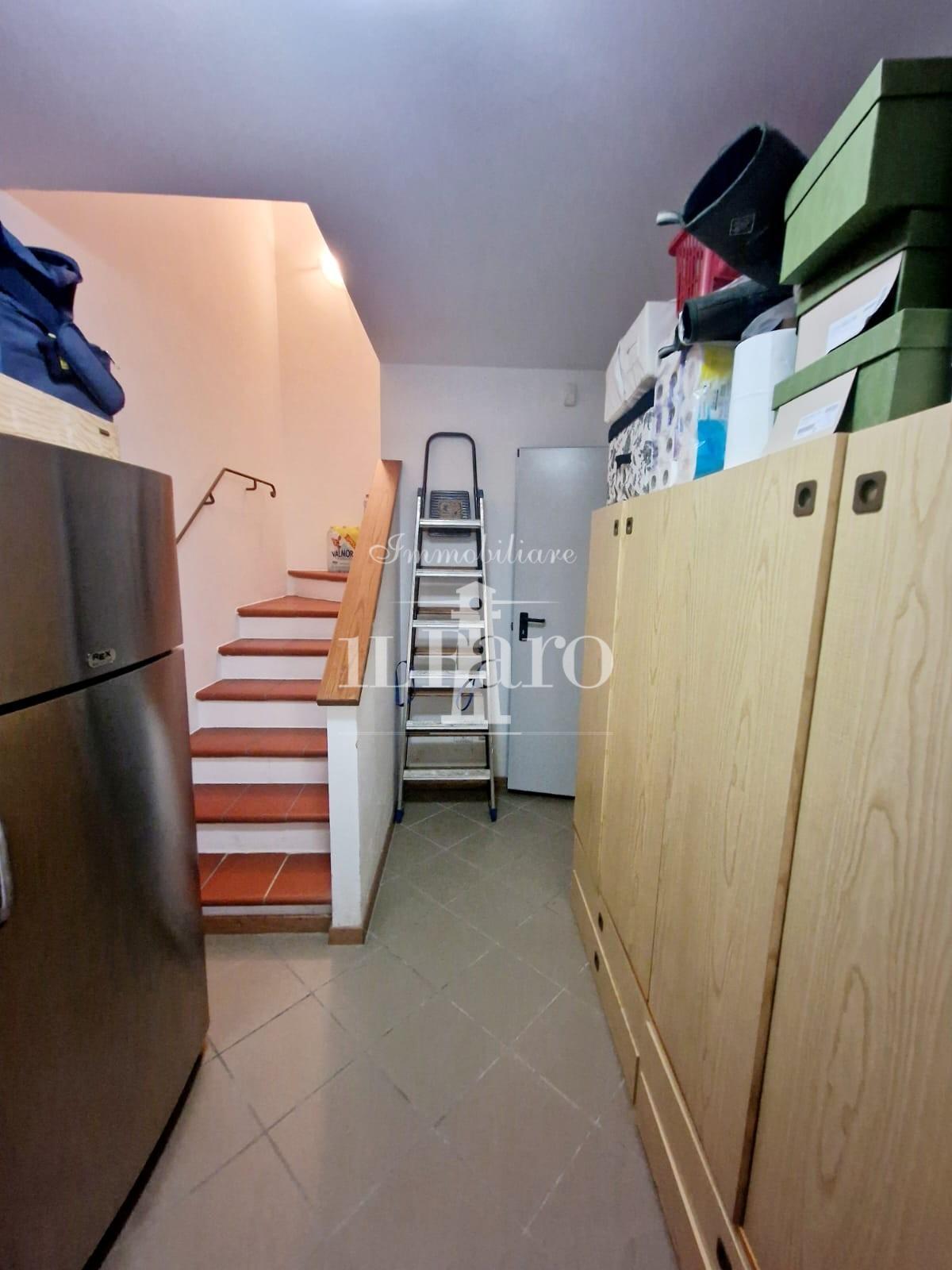 Dalla zona giorno tramite delle comode scale accediamo al GARAGE/TAVERNA con accesso anch'esso al giardino tergale e alla resede carrabile nella parte anteriore.