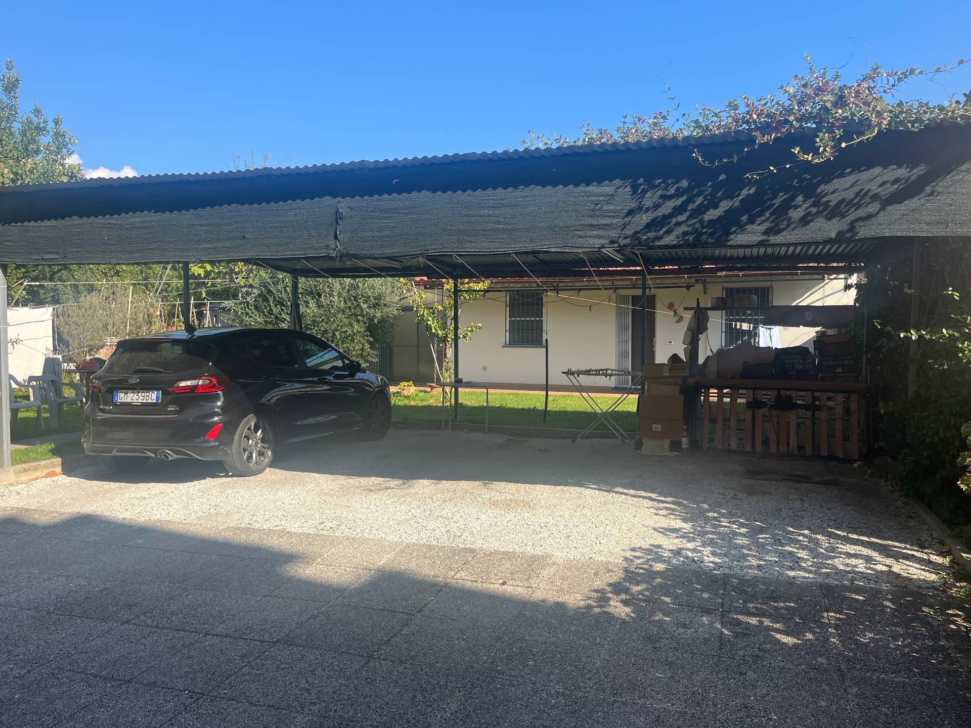 Le case sono contornate da un giardino di 750 mqcompletamente recintato nel quale c'è una zona coperta adibita a parcheggio con tre posti auto più due posti auto scoperti nel vialino.