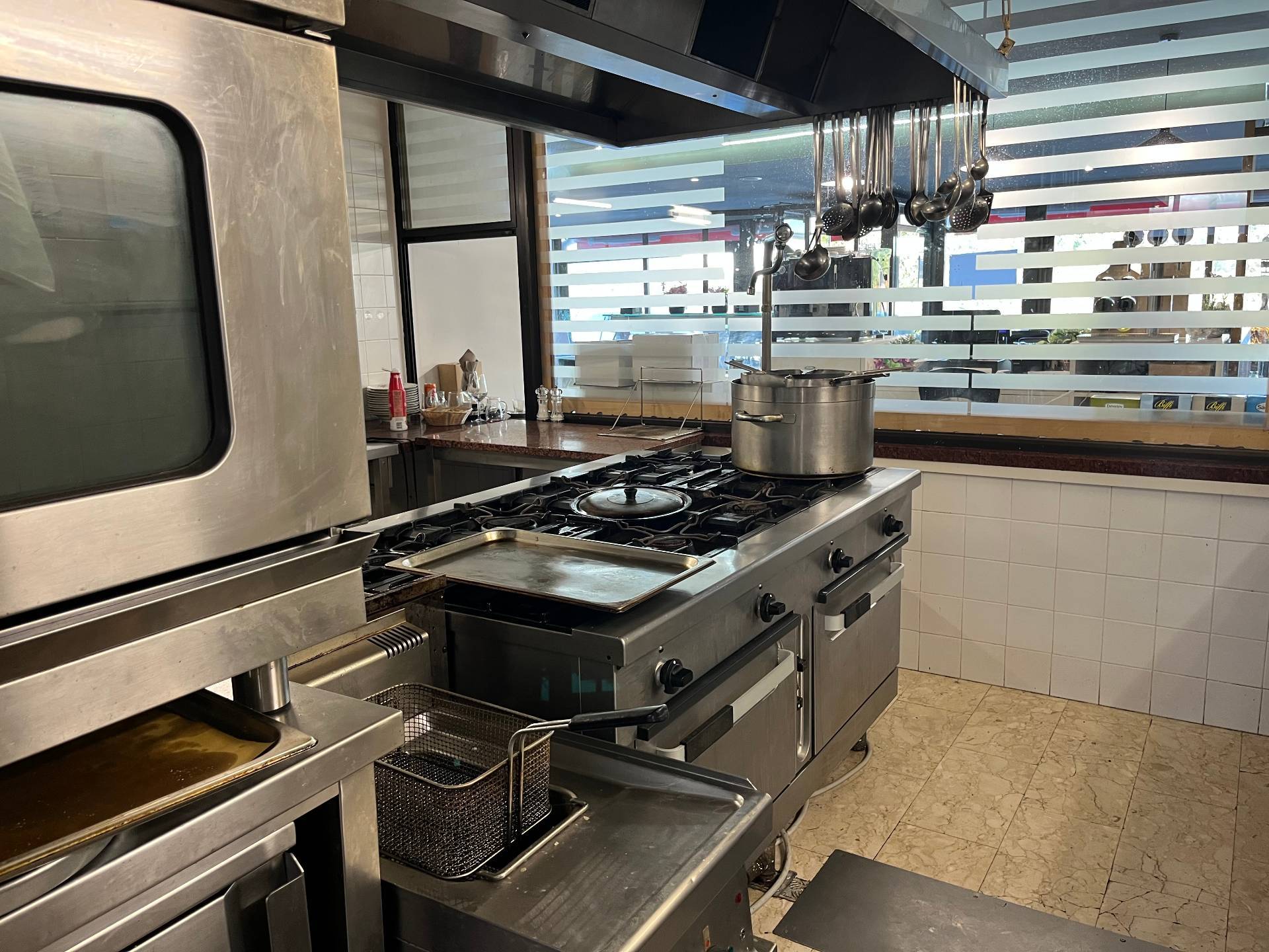 il ristorante ha circa 80 posti di cui 50 interni e 30 esterni, la cucina è a vista e è divisa fra cucina e lavaggio in altro ambiente, i bagni sono a norma e il locale ha anche n magazino per lo stoccaggio di merce