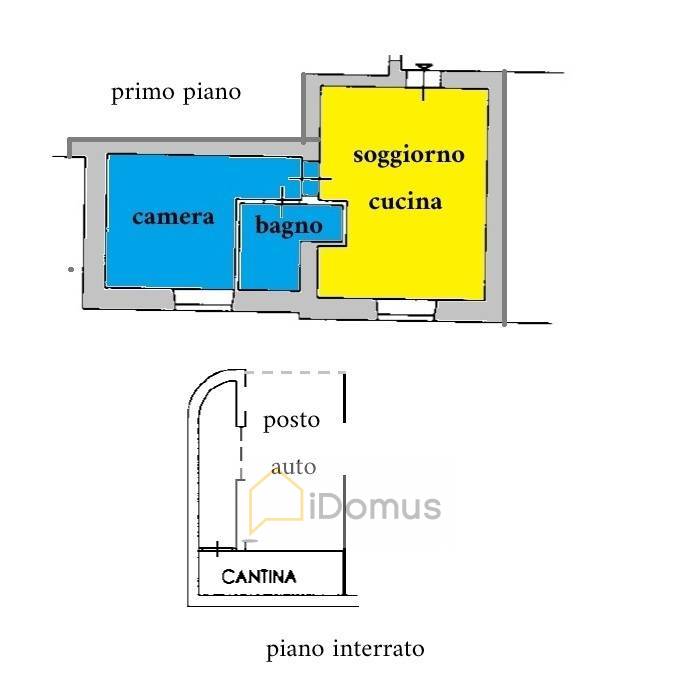 Soggiorno con angolo cottura, camera e bagno. Completa la proprietà un posto auto coperto ed un'ampia cantina.