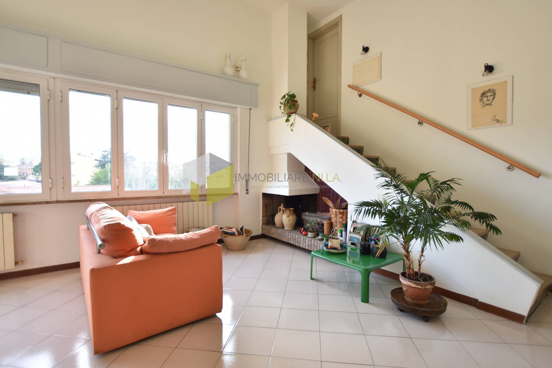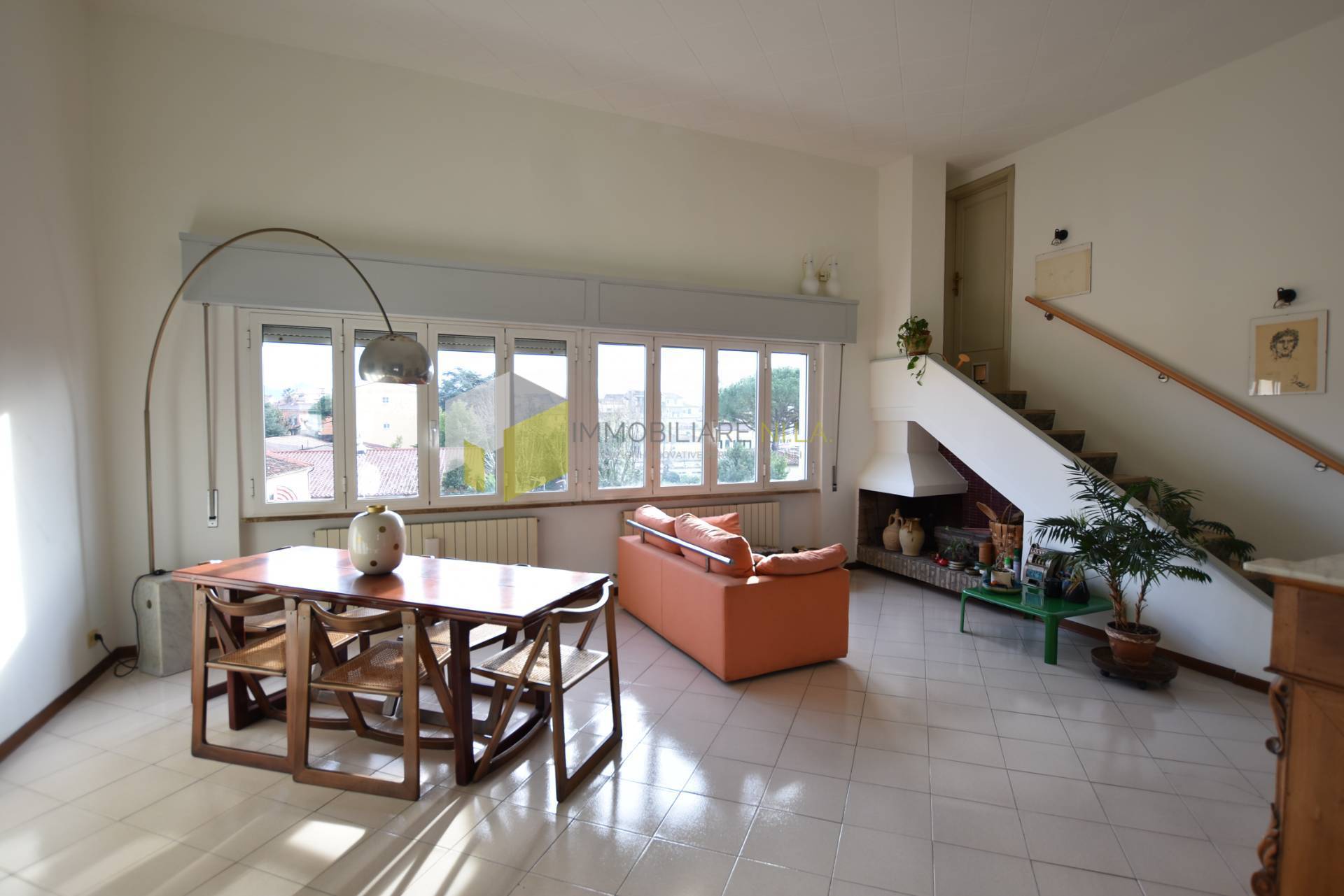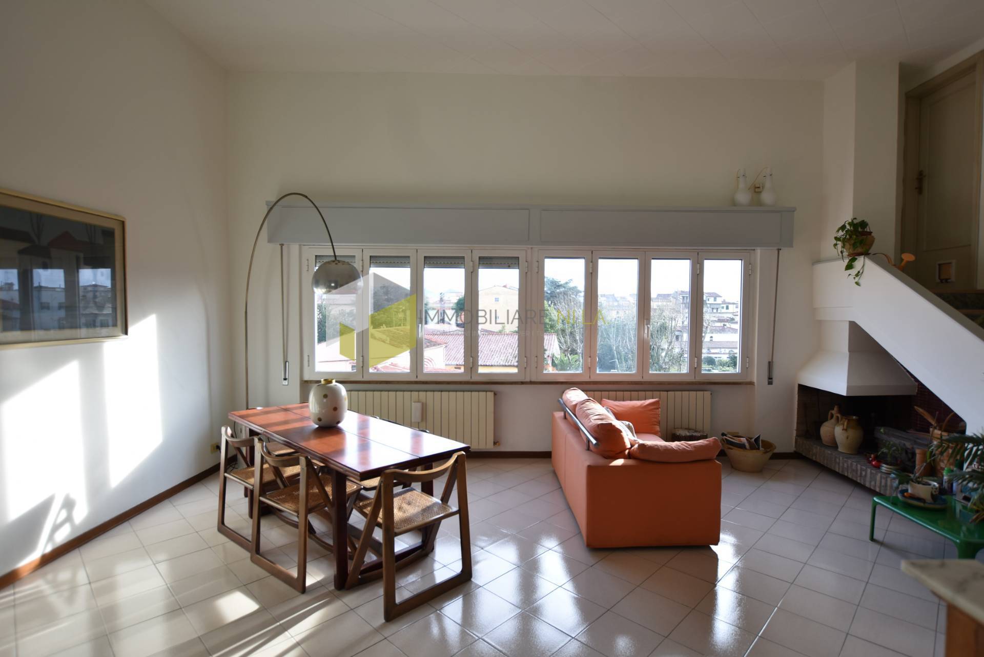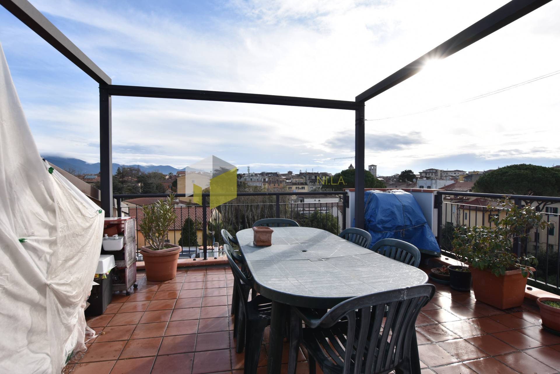 Attraverso le scale presenti nel soggiorno, si raggiunge una soffitta ad uso ripostiglio e la meravigliosa terrazza che dona alla vista uno sguardo libero sopra i tetti del centro storico e che spazia dal mare ai Monti Pisani e alle Alpi Apuane.