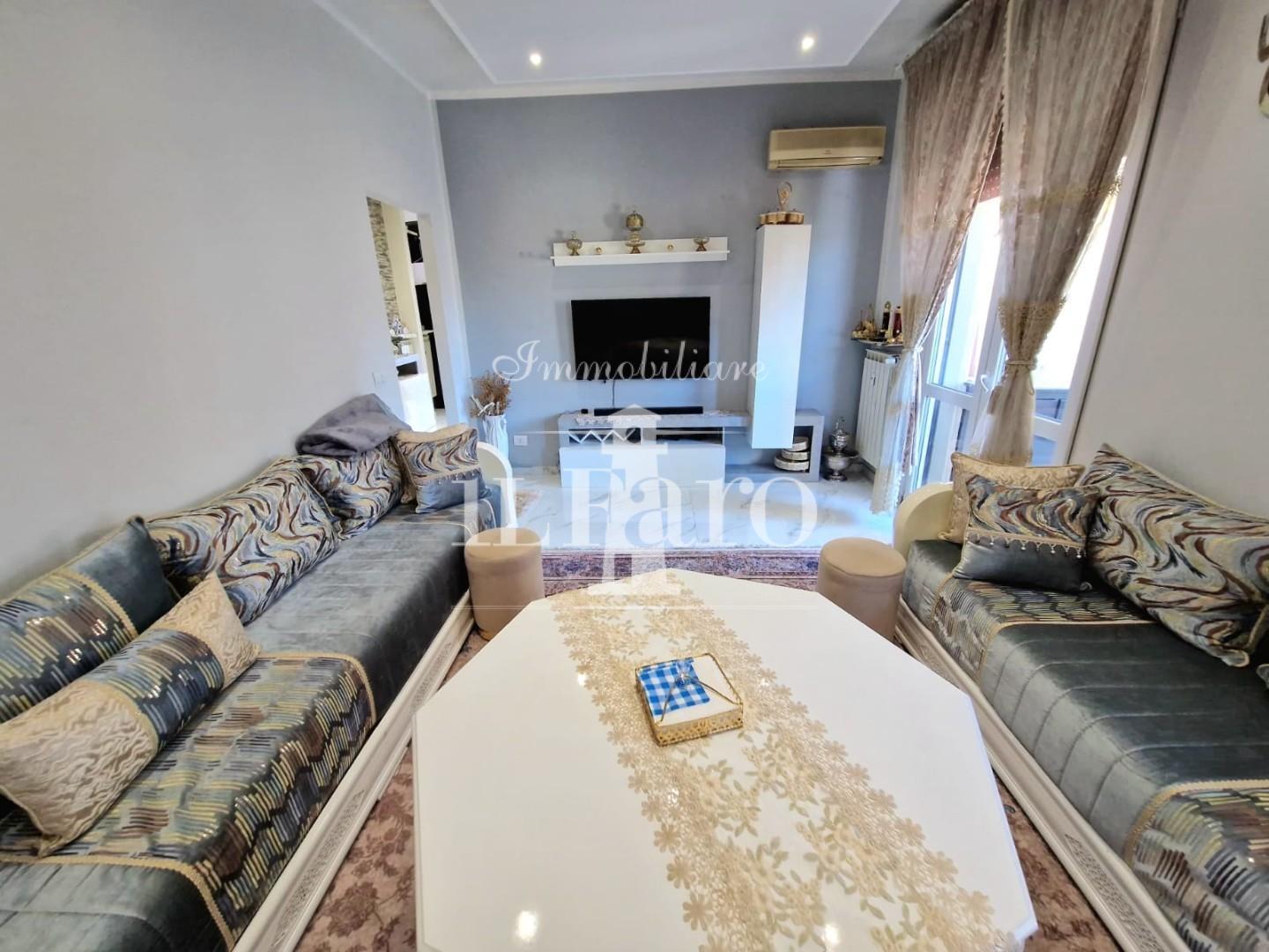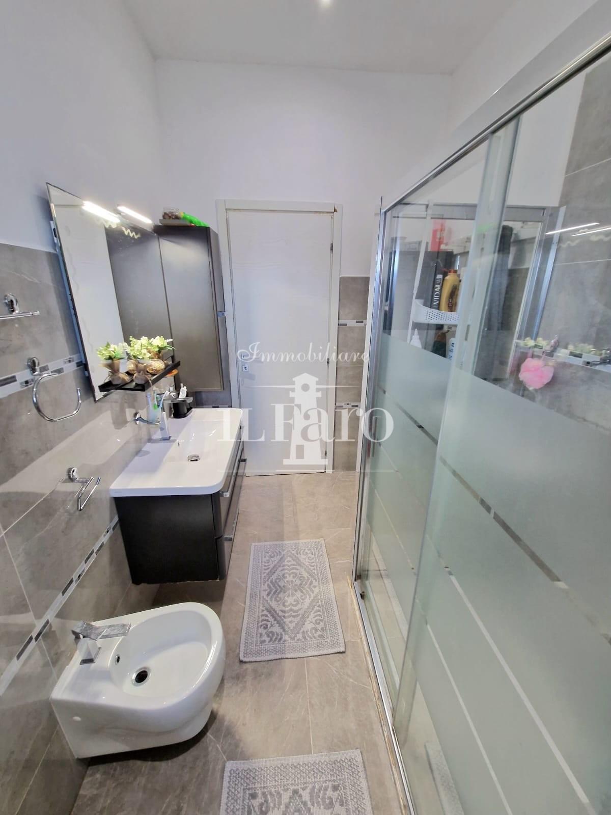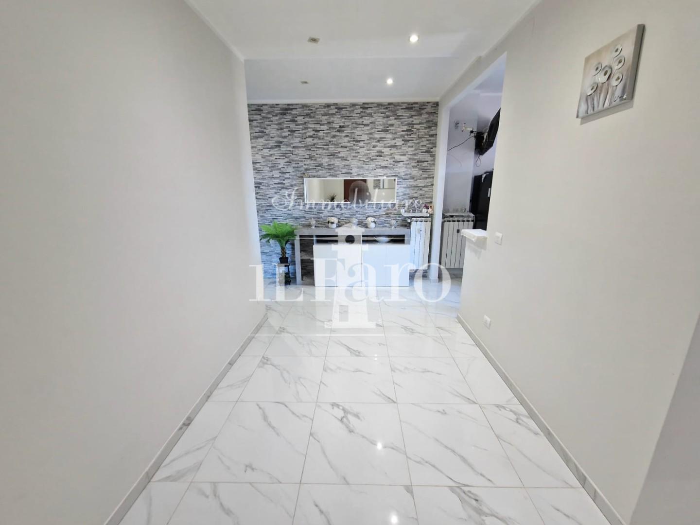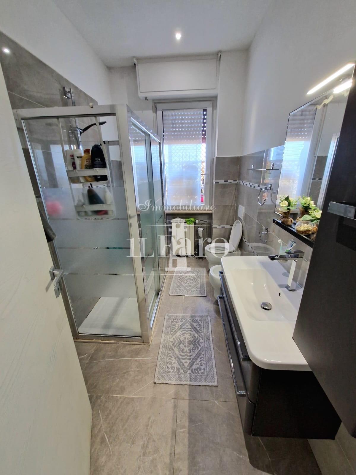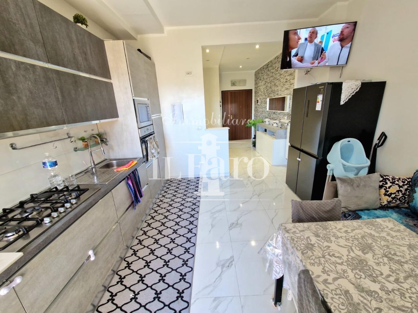 L'appartamento è così composto: entrando ci accoglie l'ingresso/disimpegno che conduce ai vari ambienti e nell'ordine troviamo uno splendido SALONE DOPPIO collegato a pratico balcone con attacchi idrici, proseguendo troviamo la cucina abitabile anch'essa collegata ad un terrazzo pranzabile; tramite un disimpegno notte molto ampio raggiungiamo le due camere di cui una matrimoniale e una doppia, e il bagno finestrato con doccia. L'appartamento si presenta in ottime condizioni in quanto è stato recentemente COMPLETAMENTE RISTRUTTURATO, con infissi in pvc, impianti nuovi, aria condizionata, e non necessita di nessun tipo di lavoro. Completa la proprietà un posto auto assegnato permanentemente all'abitazione in area condominiale recintata.