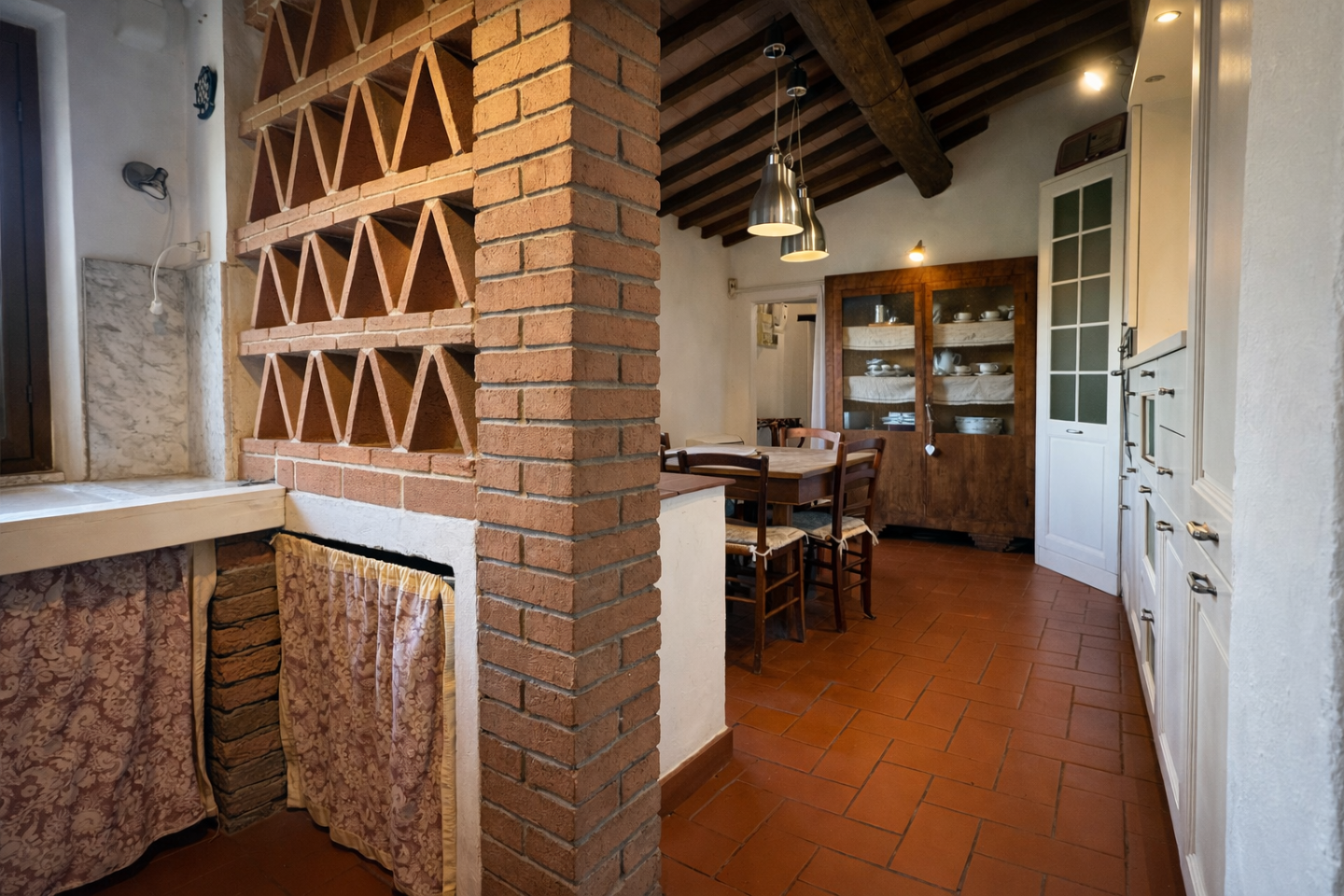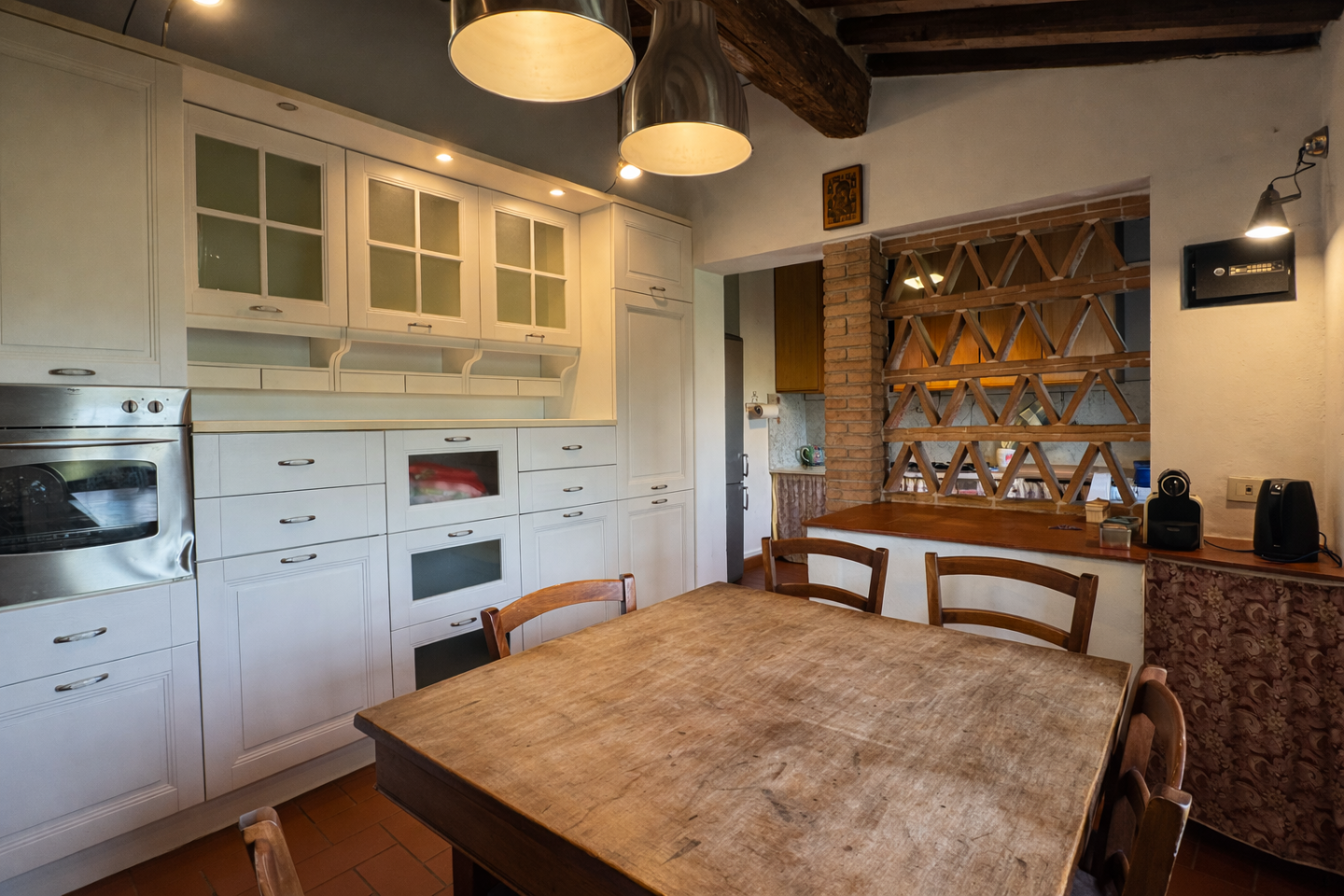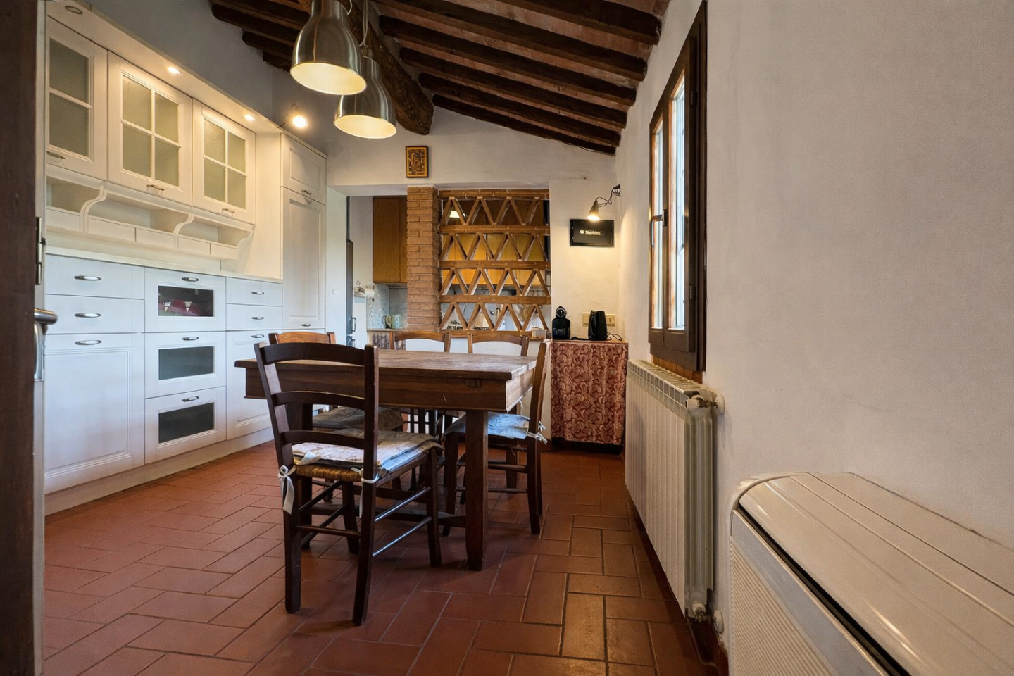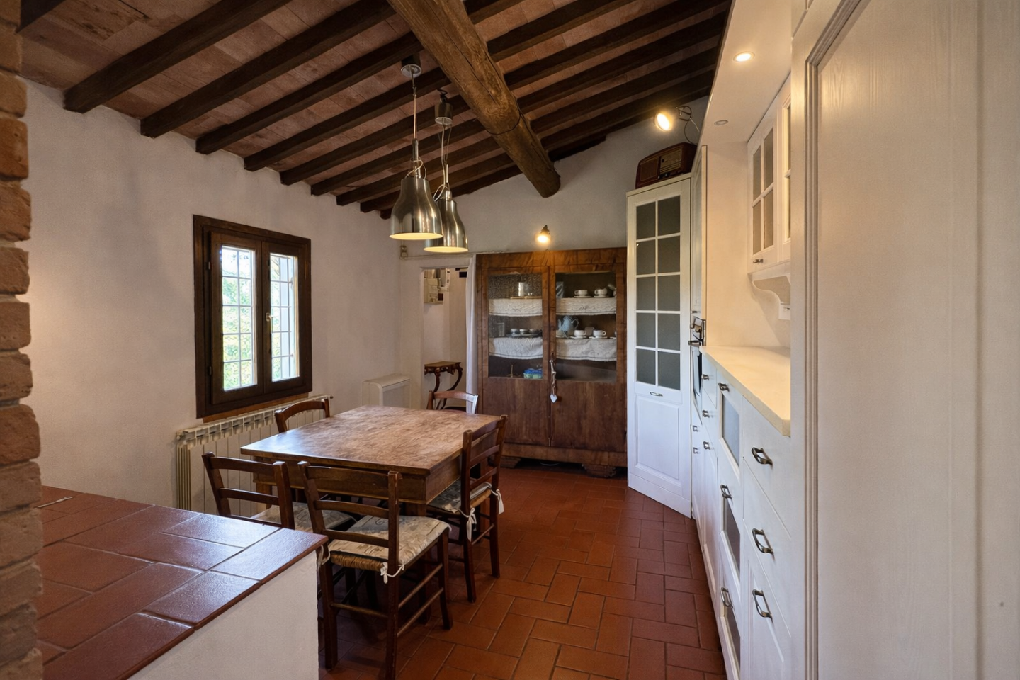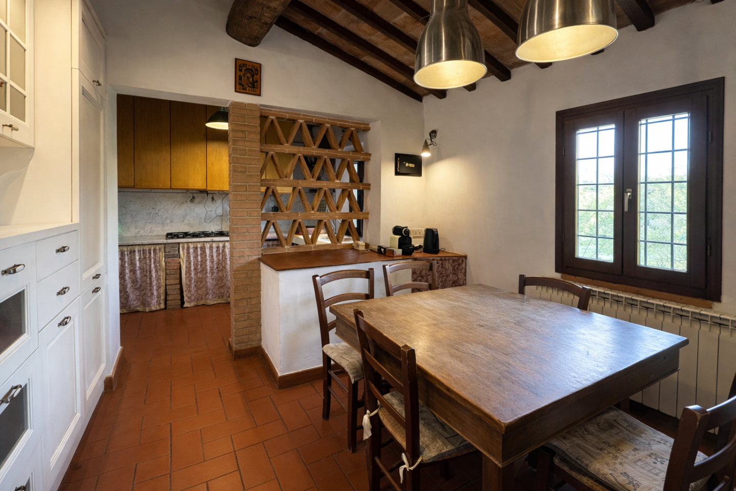 Pontedera - Montecastello - in splendida zona collinare riservata e immersa nel verde, al primo ed ultimo piano di un cascinale bifamiliare ben curato, stupenda abitazione dal fascino rustico tipico delle case di campagna. Dal bel giardino piantumato di proprietà esclusiva, mediante l'ingresso indipendente al piano terra, si sale all'abitazione che si sviluppa per tutta l'ampiezza del fabbricato e si viene accolti da un bel salone con camino oltre cucina abitabile con lato cottura separato e finestrato; l'ingresso nella zona notte disimpegna tre camere di cui una con caminetto e i doppi servizi entrambi con finestra. I soffitti a travi e mezzane, il pavimento in cotto, i dettagli in pietra e i mattoni a vista esaltano la tipicità dell'abitazione che gode anche di moderni infissi con doppi vetri e portoncino blindato, tutti protetti da ringhiere concepite con gusto. Possibilità di acquistare ulteriore un terreno in più di circa 3 ettari adiacente l' abitazione. Dimora perfetta per chi ama vivere grandi spazi conviviali anche all'aperto in serenità, senza rinunciare alla prossimità dei comodi servizi offerti dal centro e dall'ottima viabilità di Pontedera. Disponibilità immediata!!!!!!!!!!