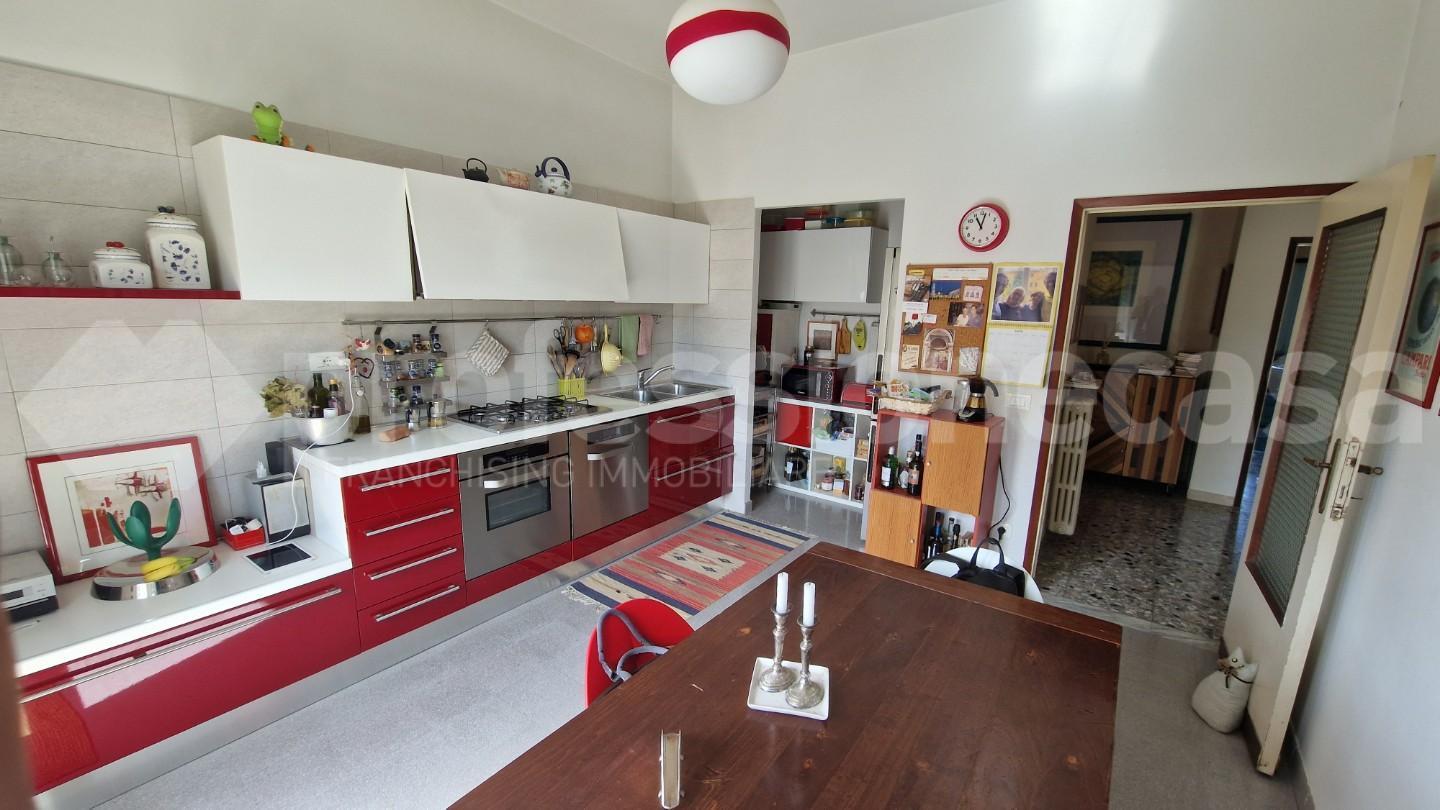 L’immobile accoglie con un ingresso tradizionale che conduce a una sala accogliente e a una spaziosa cucina abitabile, impreziosita da una cucina di design di un prestigioso brand italiano e dotata di una pratica dispensa.