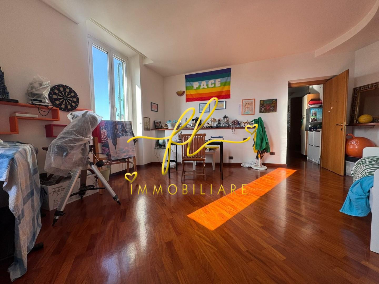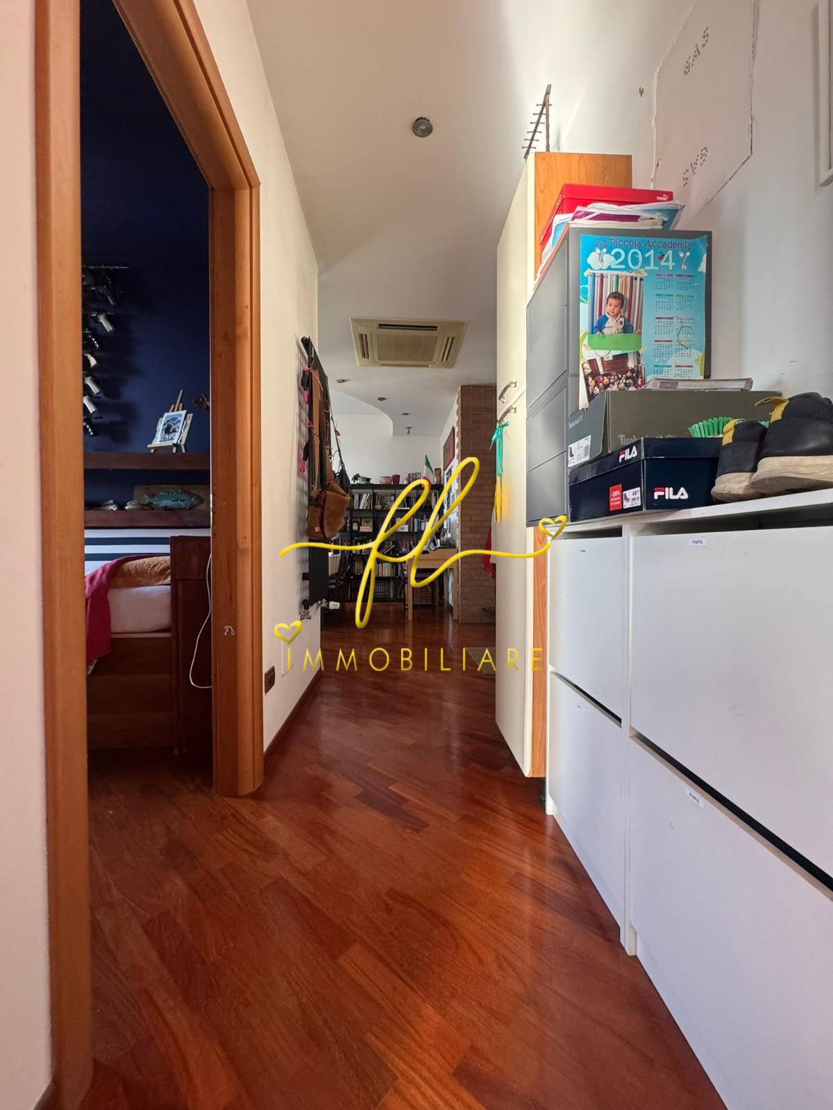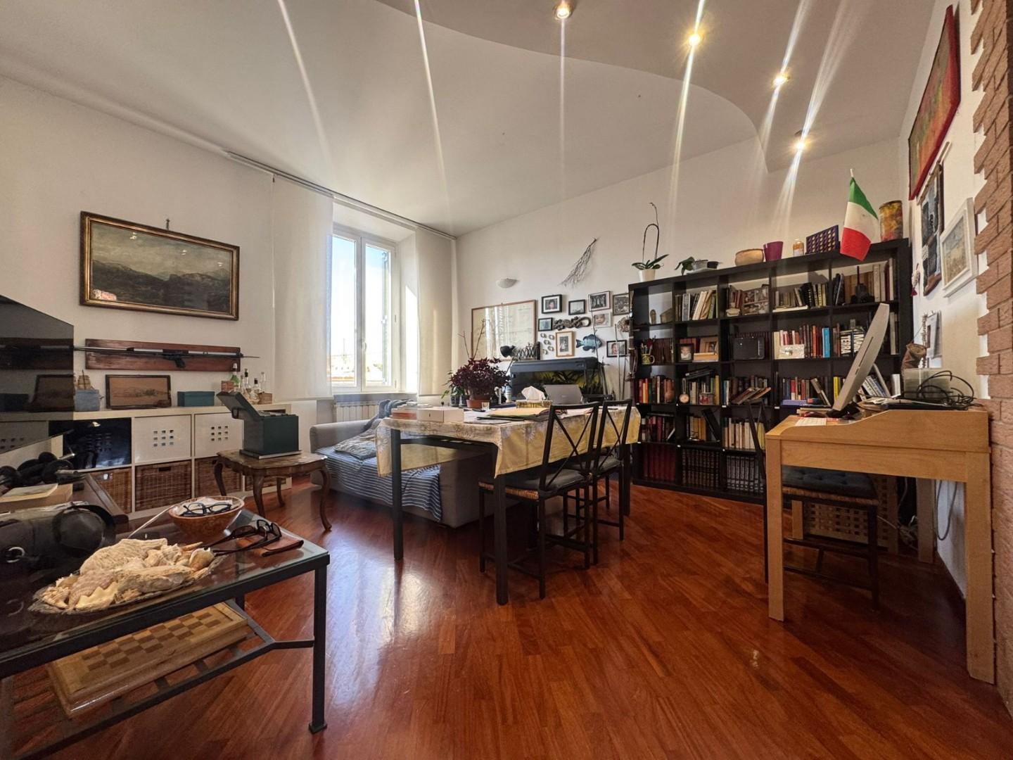 Posto all'ultimo piano di un decoroso contesto condominiale di sole dieci unità, l'immobile accoglie i visitatori in un'atmosfera calda e luminosa, dove il pregiato parquet corre uniformemente lungo tutta la superficie, donando un senso di continuità e comfort immediato.
