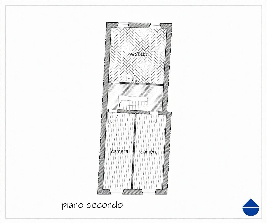 Si compone di ingresso – vano scale al piano terreno, disimpegno, cucina con caminetto, soggiorno, bagno finestrato e camera al piano primo, di disimpegno, due camere e ampio vano uso camera matrimoniale al piano secondo, da due ampi vani abitabili adibiti a soffitta al piano terzo.