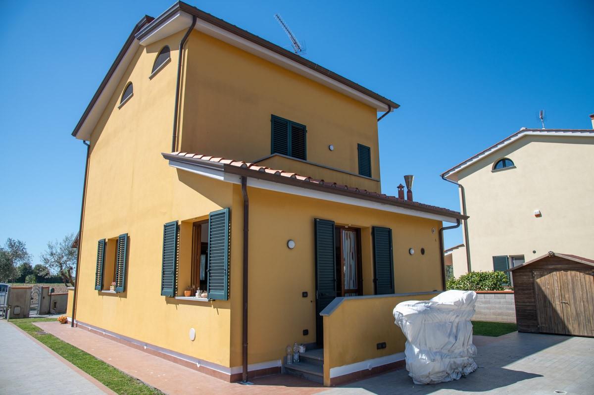 ESCLUSIVA: In un bel contesto signorile a due passi dallo stabilimento termale di San Giuliano Terme, immersa nel verde e nel silenzio della campagna pisana, proponiamo in vendita questa bella villa singola di recente costruzione in perfette condizioni di manutenzione; si distingue per la sua ampia zona living separata dalla spaziosa sala pranzo con cucina moderna molto carina. Sempre al piano terra troviamo un locale ad uso lavanderia/ ripostiglio oltre un bagno di servizio finestrato. Una scala in marmo pregiato ci accompagna nella zona notte al piano primo dove troviamo due ampie camere matrimoniali di cui una con terrazzo, oltre bagno principale moderno dalle ottime finiture. Una scala comoda in muratura ci porta in un locale mansardato dotato di finestre e adatto per uno studio o stanza ospiti. L'esposizione su tutti e quattro i lati garantisce tanta luce naturale e una bella vista panoramica su un ampio giardino ben tenuto dotato di pozzo per l'irrigazione. L'ingresso sia carrabile automatizzato che pedonale ci consente di parcheggiare all'interno comodamente 3/4 auto. La casa offre comfort e sicurezza visto che è dotata di impianto di allarme, climatizzazione e zanzariere che migliorano significativamente la qualità abitativa e il valore dell'immobile. Vieni a visitare questa abitazione non rimarrai deluso da questa nuova offerta immobiliare.