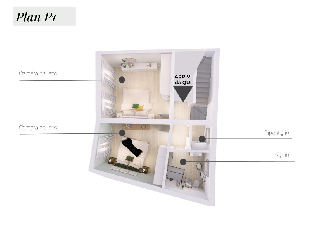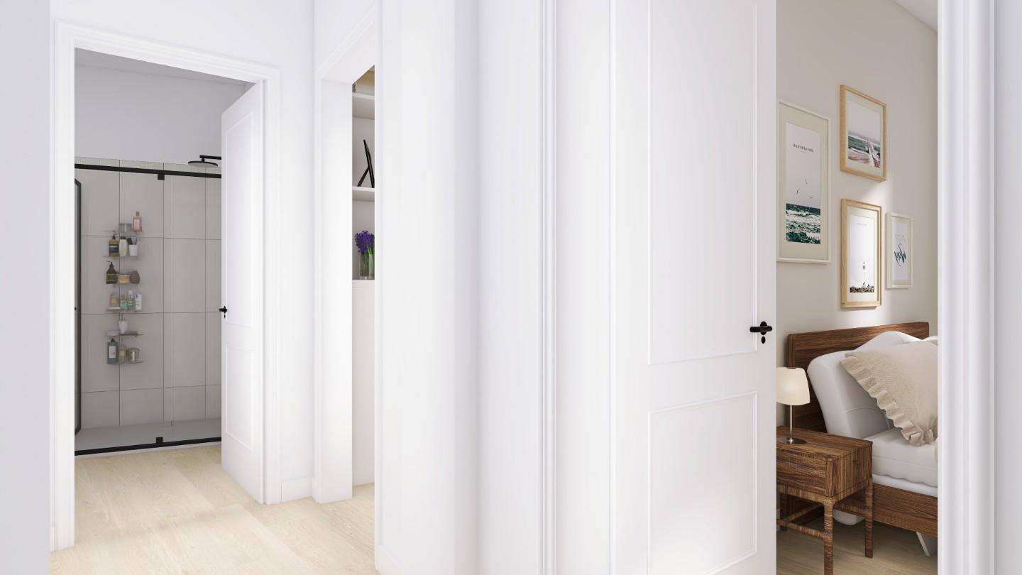 Sali al primo piano ed entri nella zona notte, con due camere matrimoniali, un ripostiglio e il secondo bagno. Gli ambienti sono pronti per accogliere la tua personalità.