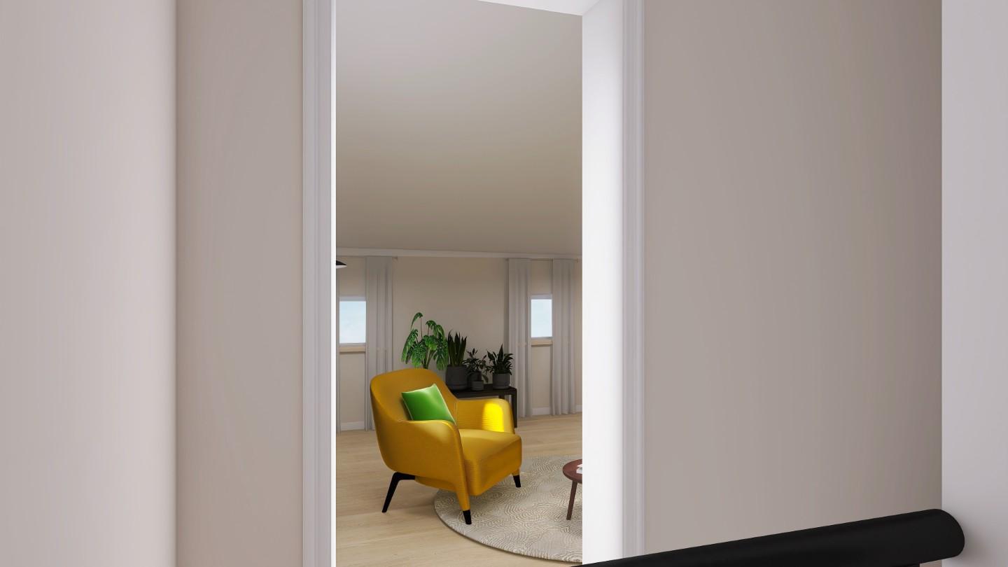 Allʼultimo piano scopri la mansarda, uno spazio riservato e silenzioso, perfetto come studio privato, stanza hobby o area lettura: un rifugio dove lasci scorrere le idee.