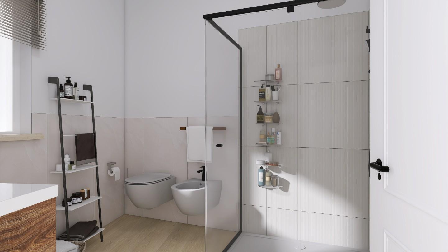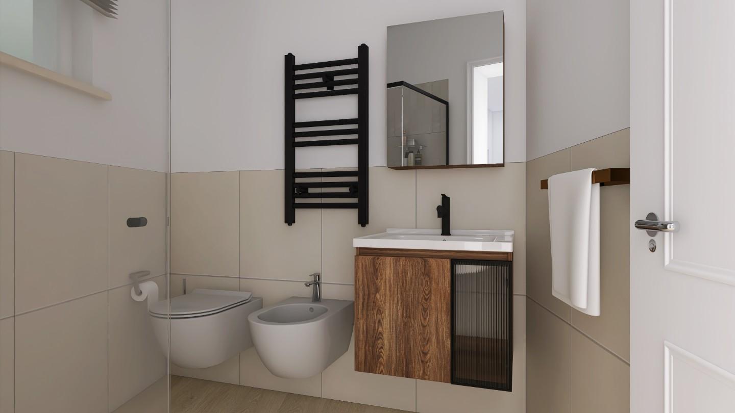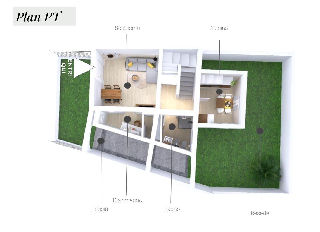 Al piano terra entri in una zona giorno luminosa, con soggiorno e angolo pranzo, una cucina separata e un ampio disimpegno. Qui realizzi anche il primo bagno, pratico e moderno.