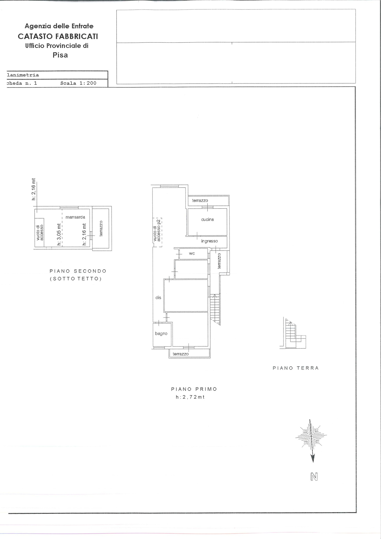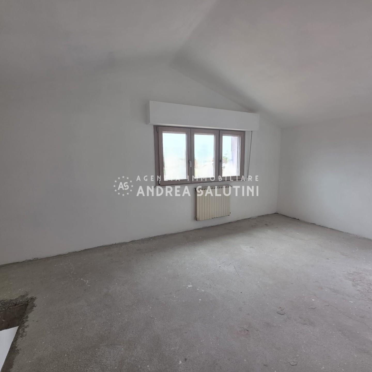 Al piano primo troviamo ingresso, disimpegno, sala/cucina, due bagni, tre camere e tre terrazzi, dal soggiorno si accede ALLA MANSARDA DOPO PUO' ESSERE REALIZZATA LA SECONDA CAMERA MATRIMONIALE con terrazza. L'immobile è corredato di resede esclusivo.
