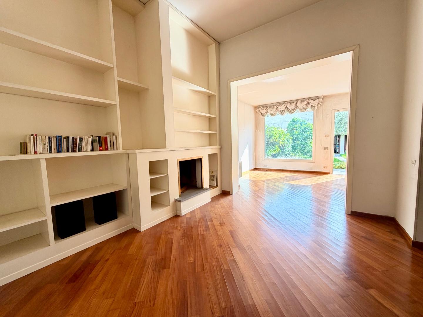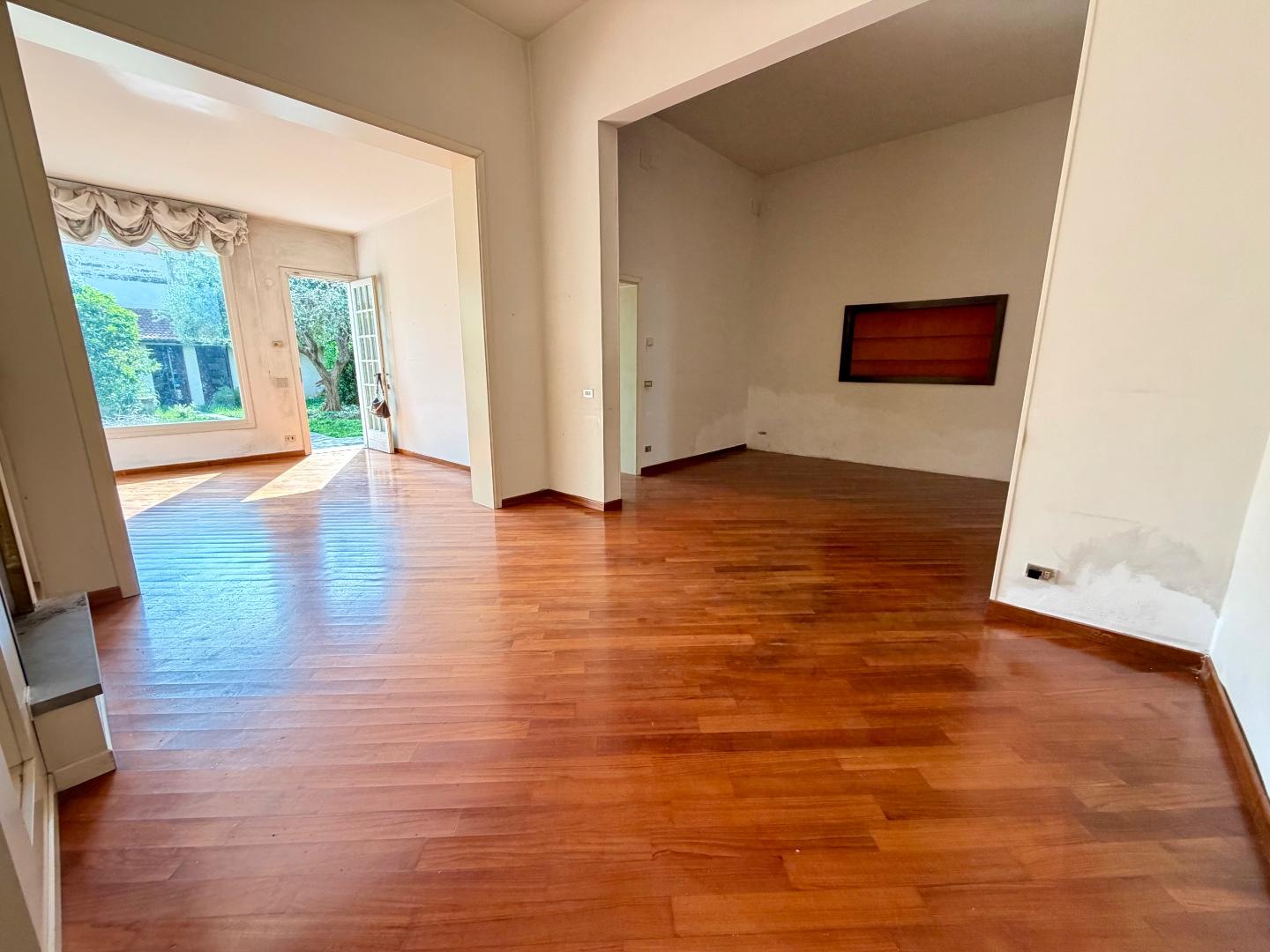 Al piano terra troviamo un’accogliente zona ingresso, un ampio e luminoso soggiorno con affacci sul giardino, una cucina abitabile con accesso diretto all’esterno e una spaziosa stanza polivalente, perfetta come salotto, studio o facilmente trasformabile in garage. Completa il piano un comodo bagno di servizio.